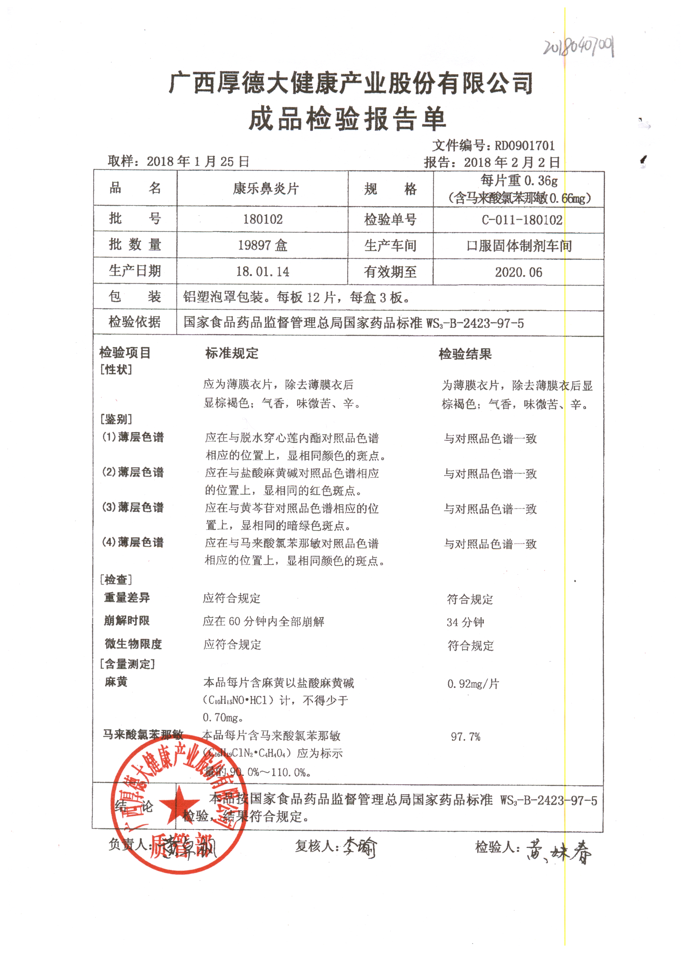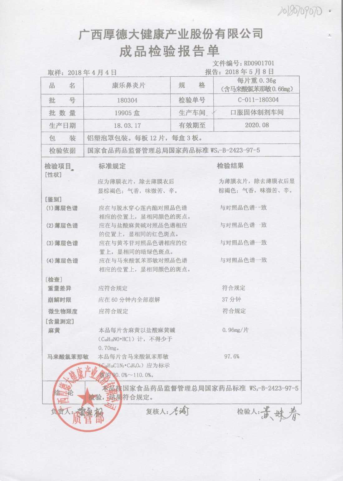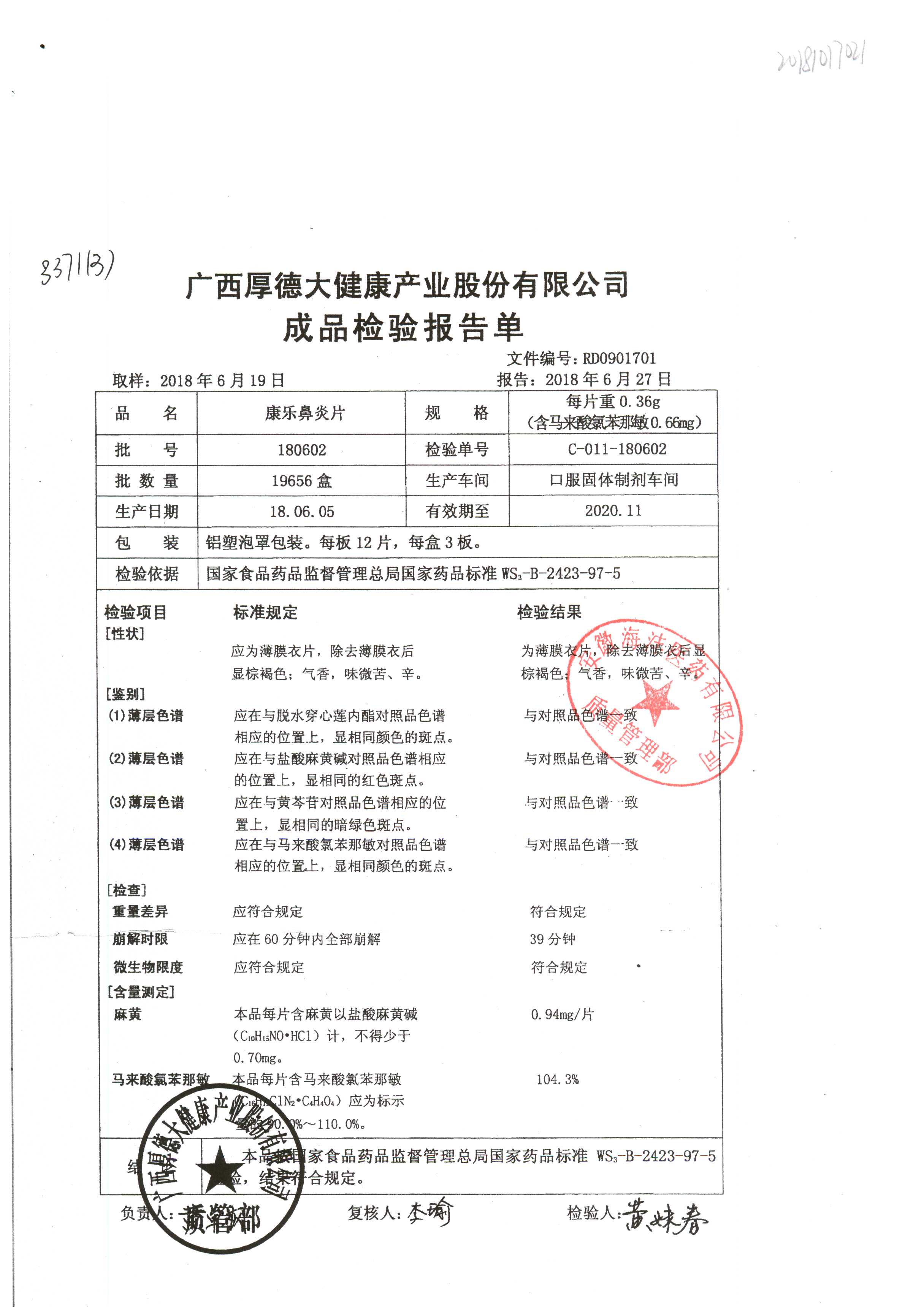 | 康樂鼻炎片 | 0.36g*36粒 | 190201 | 查看詳情 |