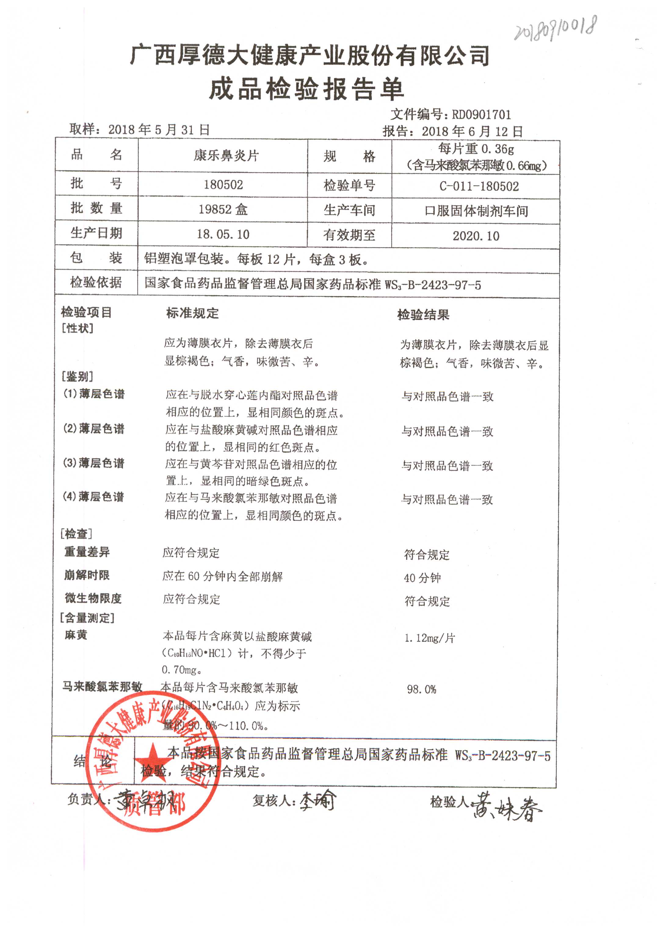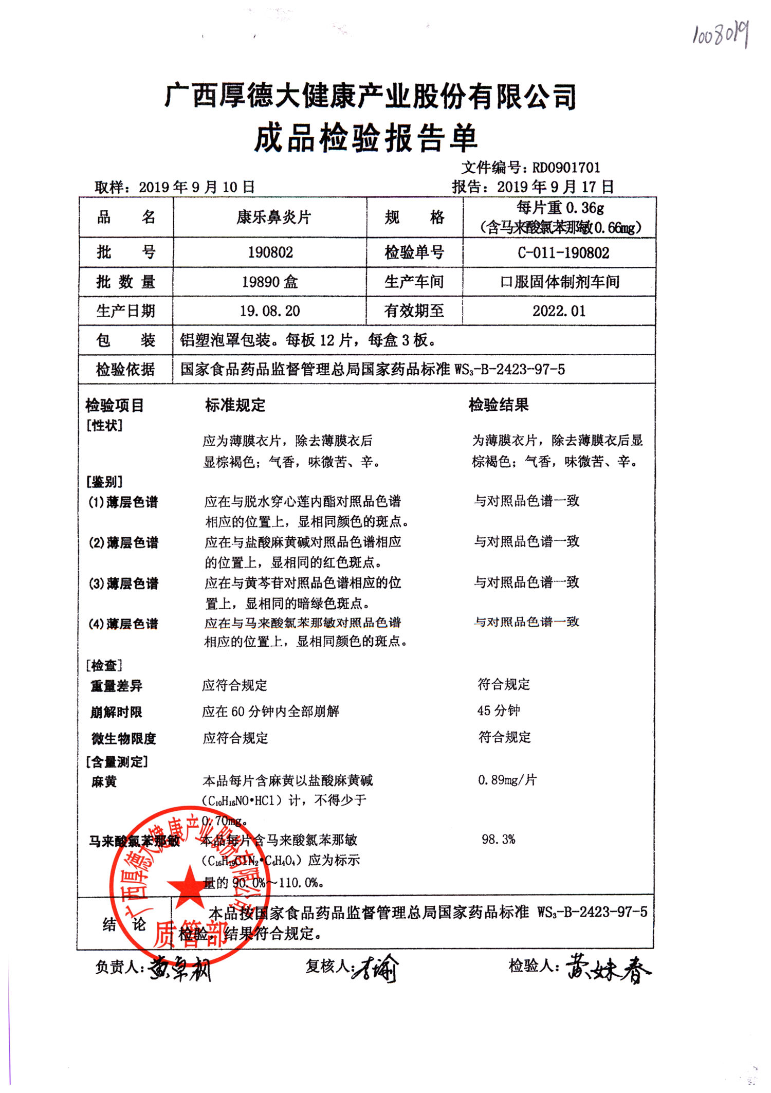 | 康樂鼻炎片 | 0.36g*36粒 | 190901 | 查看詳情 |