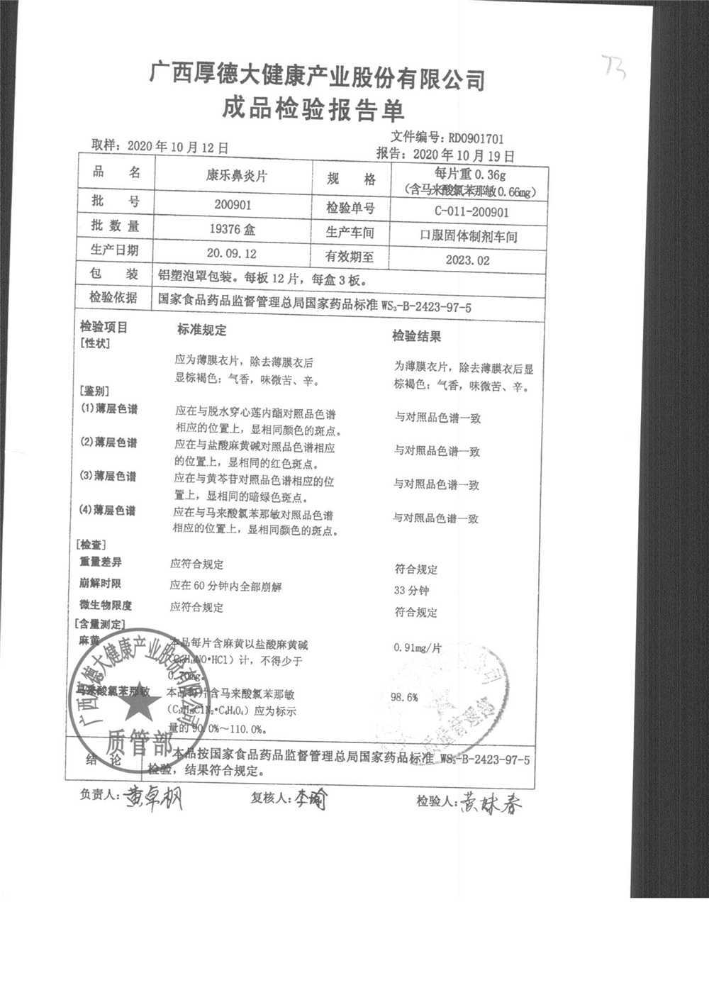 | 康樂鼻炎片 | 0.36g*36粒 | 200901 | 查看詳情 |