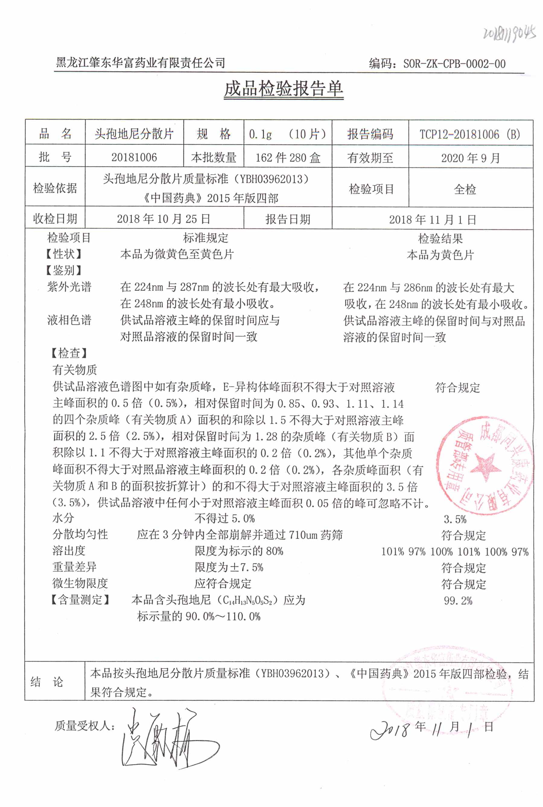 頭孢地尼分散片 0.1g*10s 20181006 查看詳情
