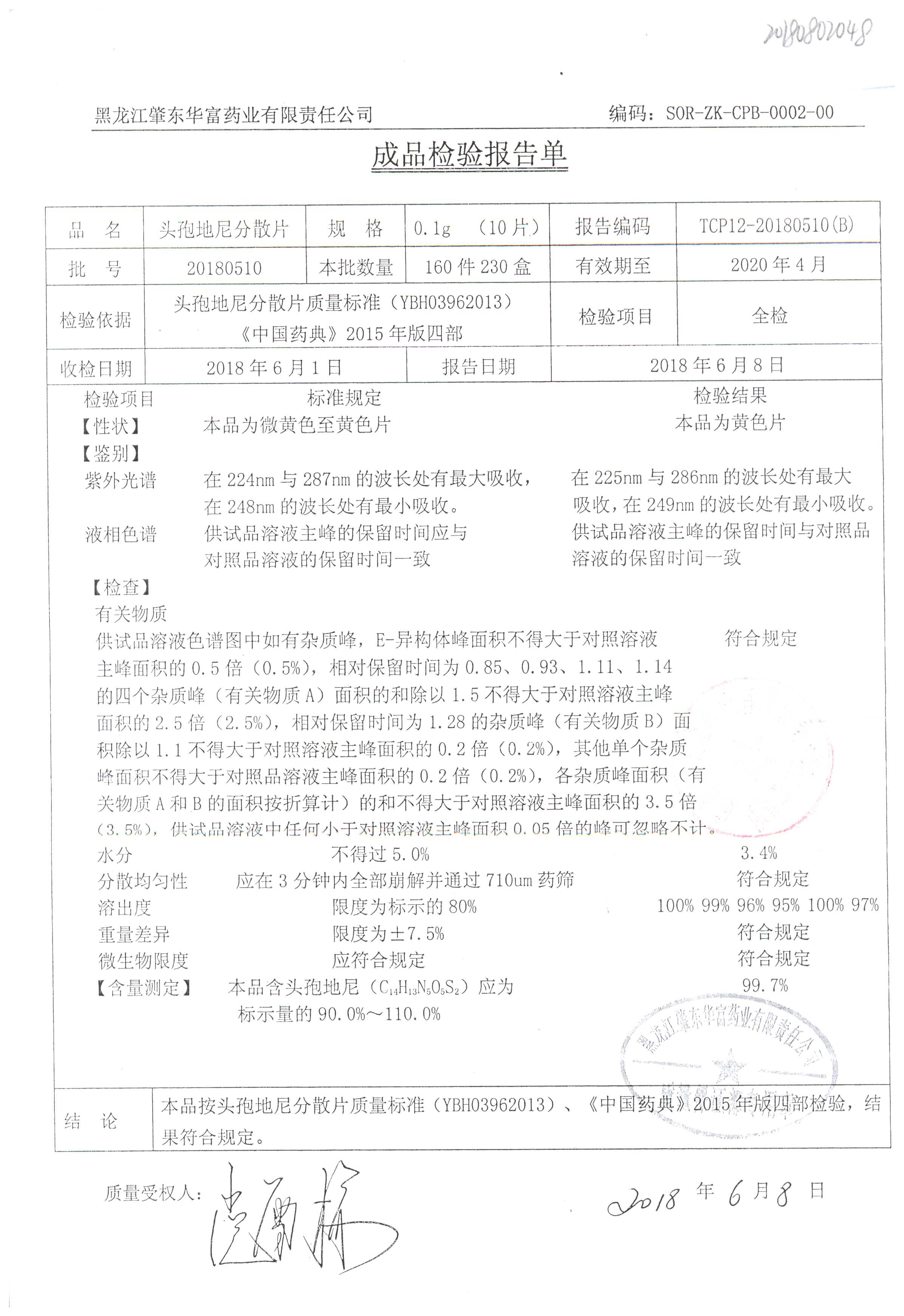 頭孢地尼分散片 0.1g*10s 20180510 查看詳情