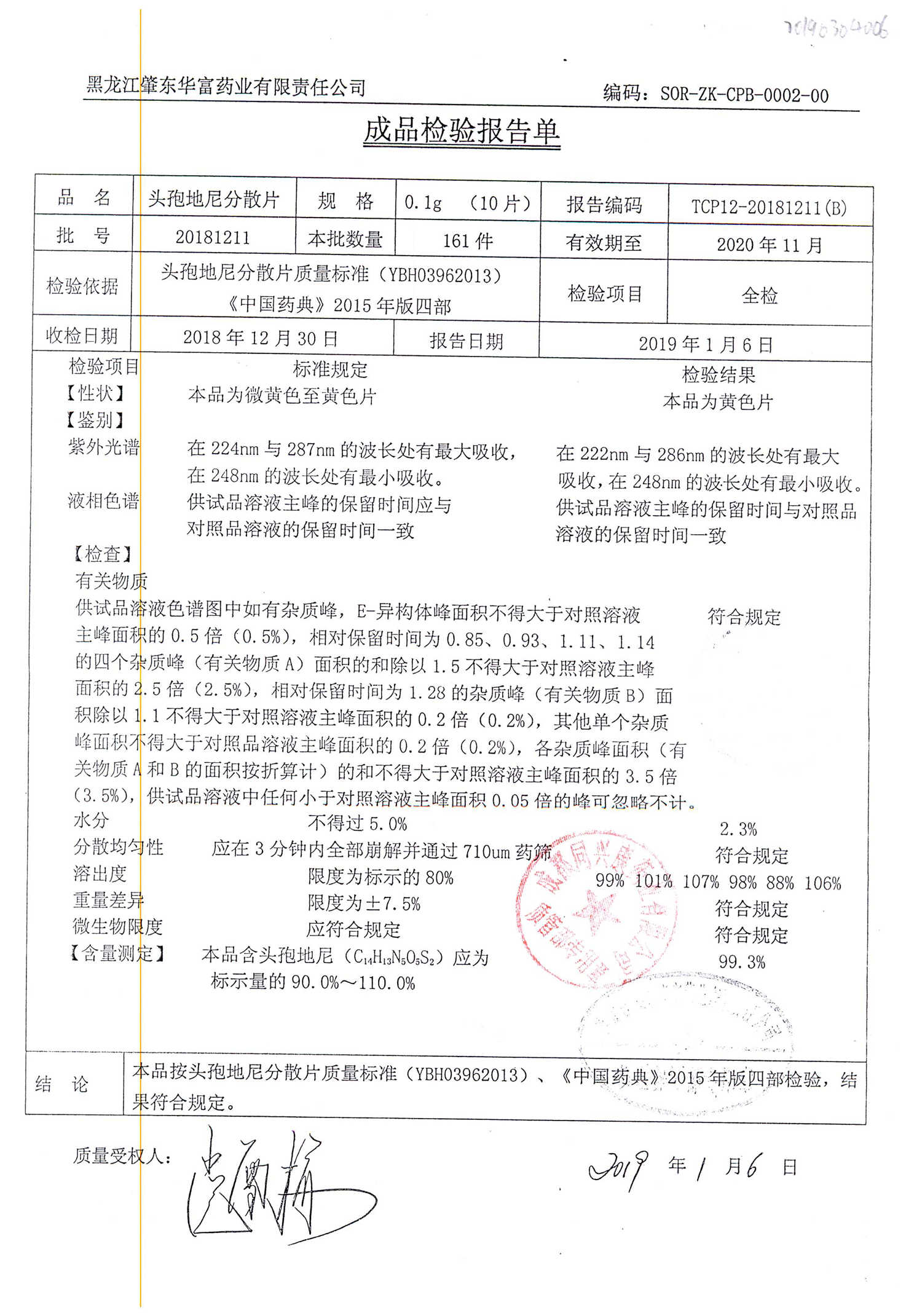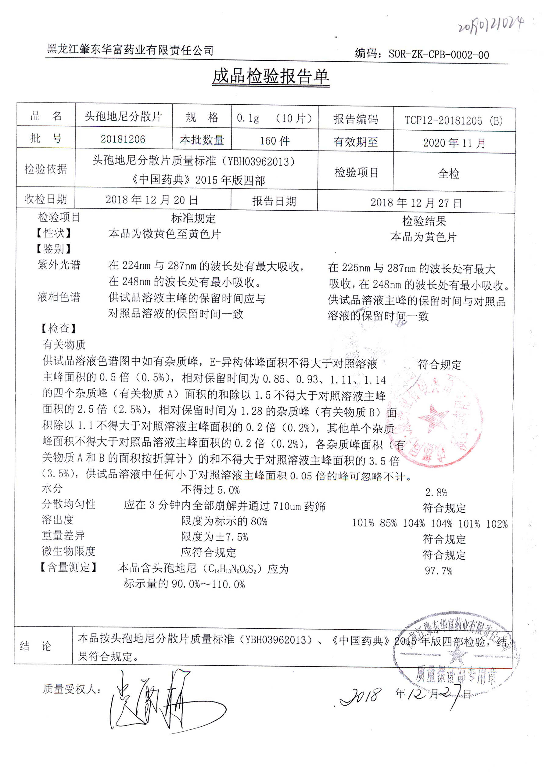 頭孢地尼分散片 0.1g*10s 20181211 查看詳情