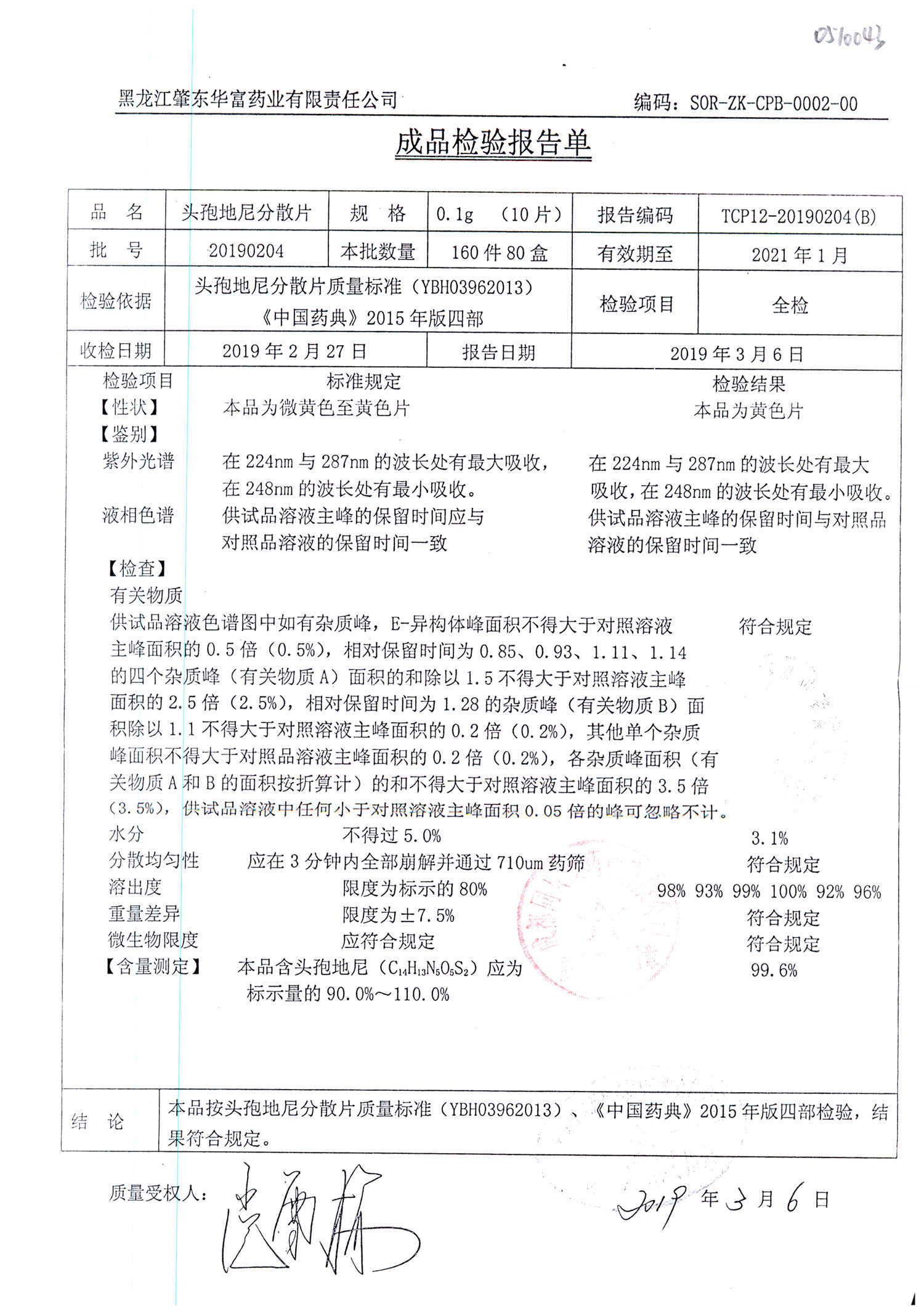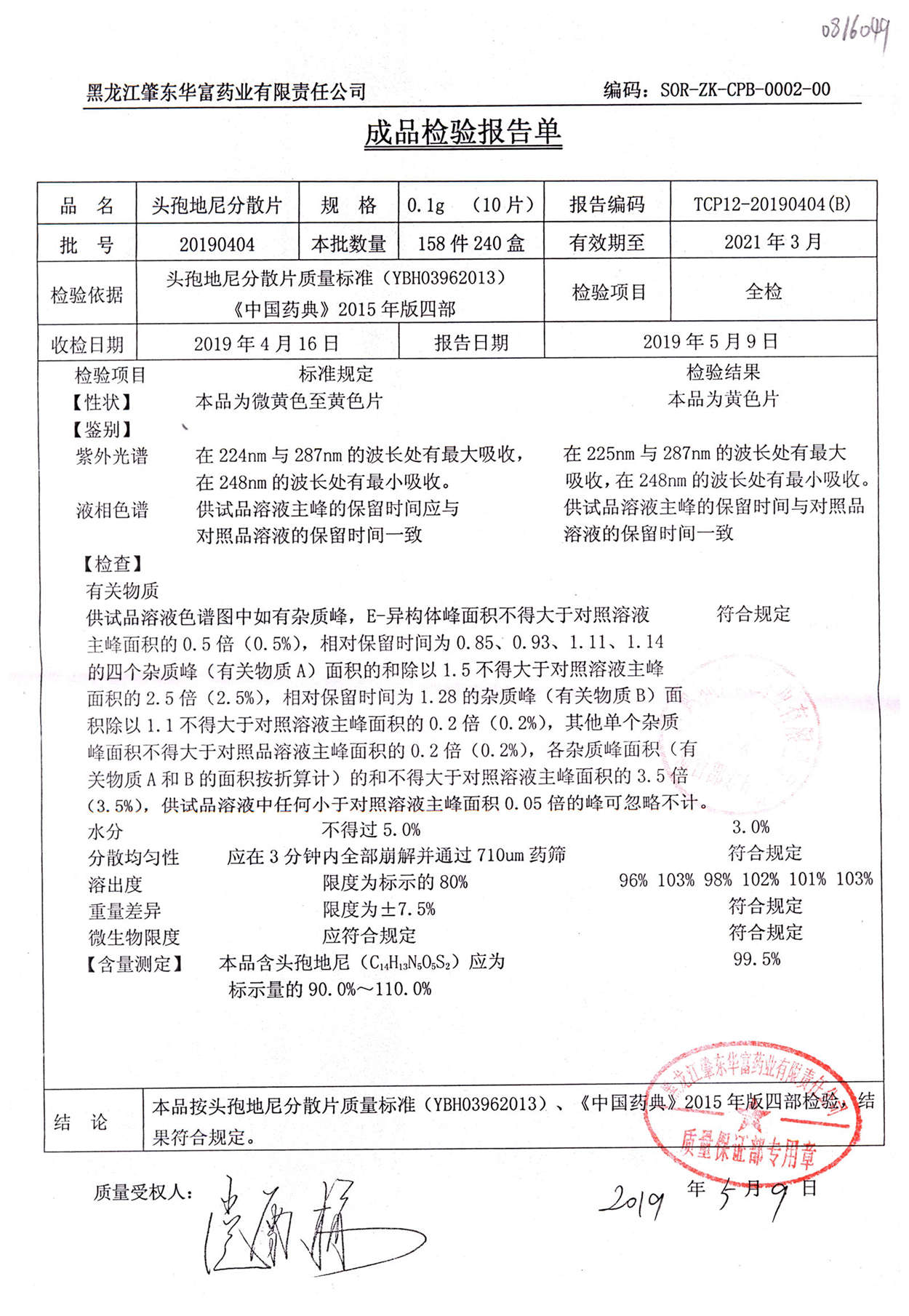 頭孢地尼分散片 0.1g*10s 20190404 查看詳情