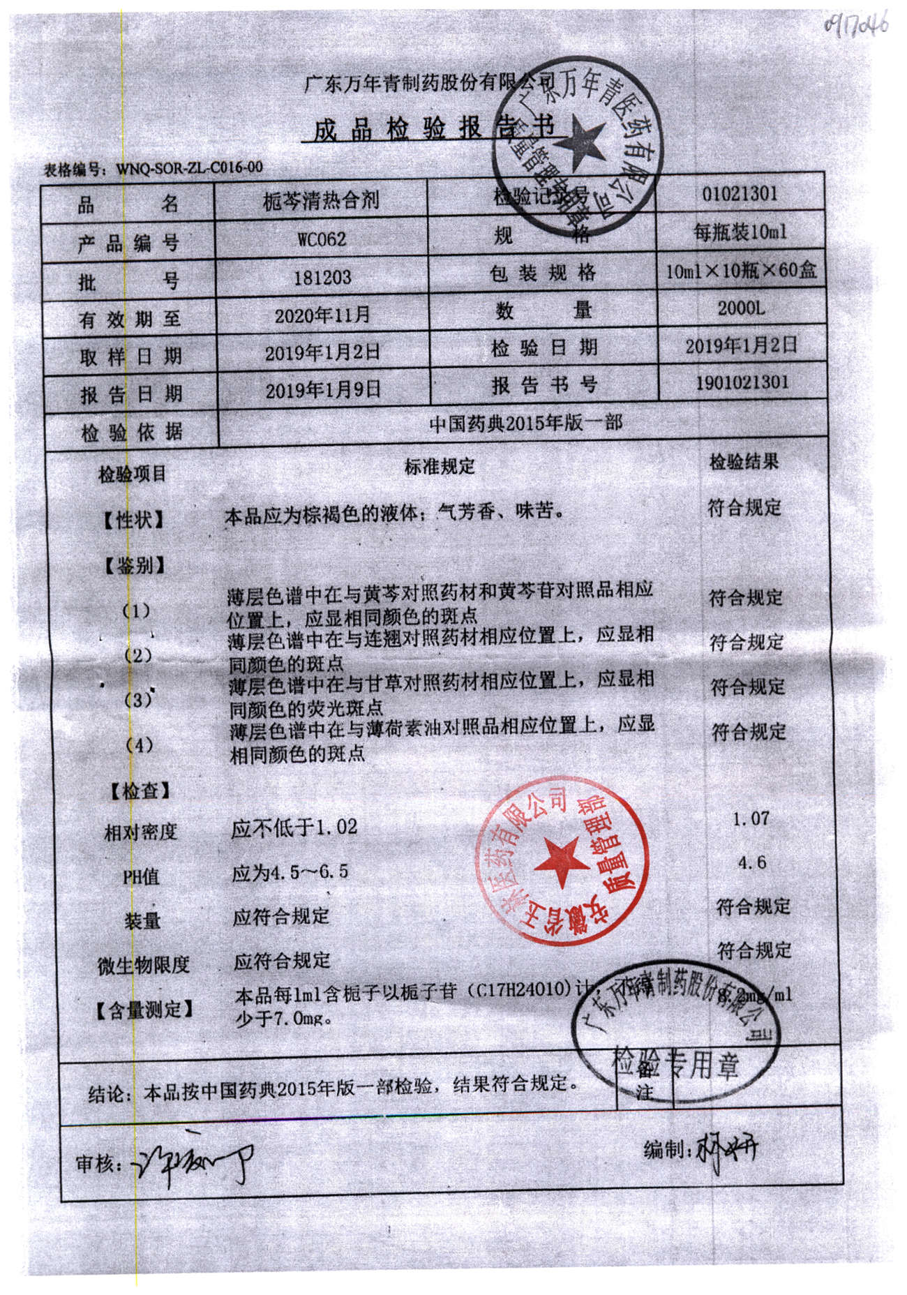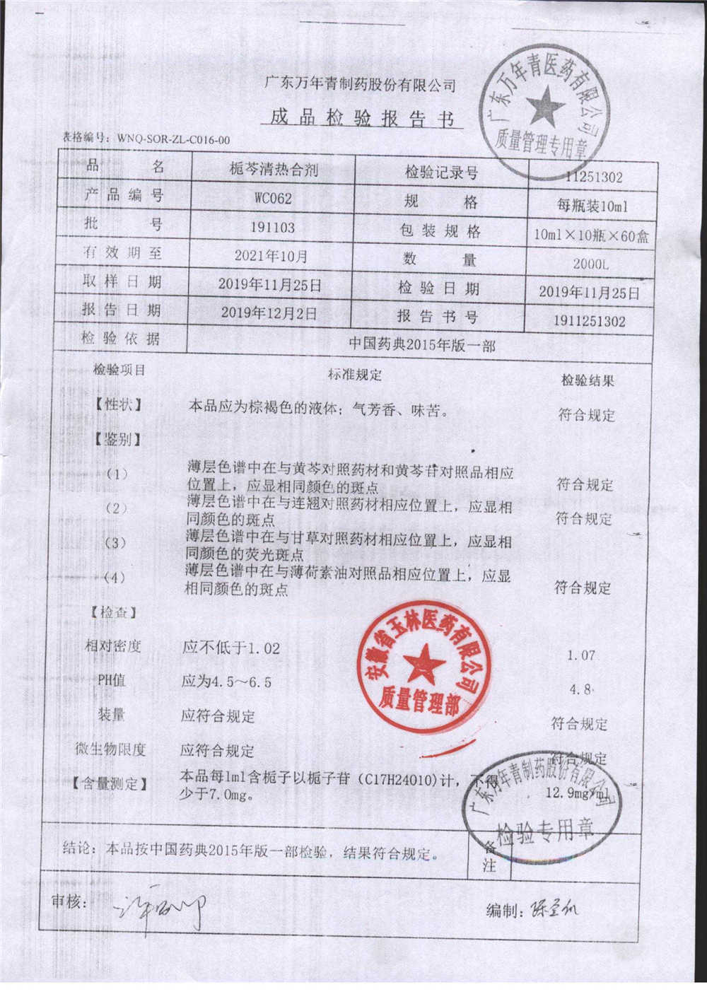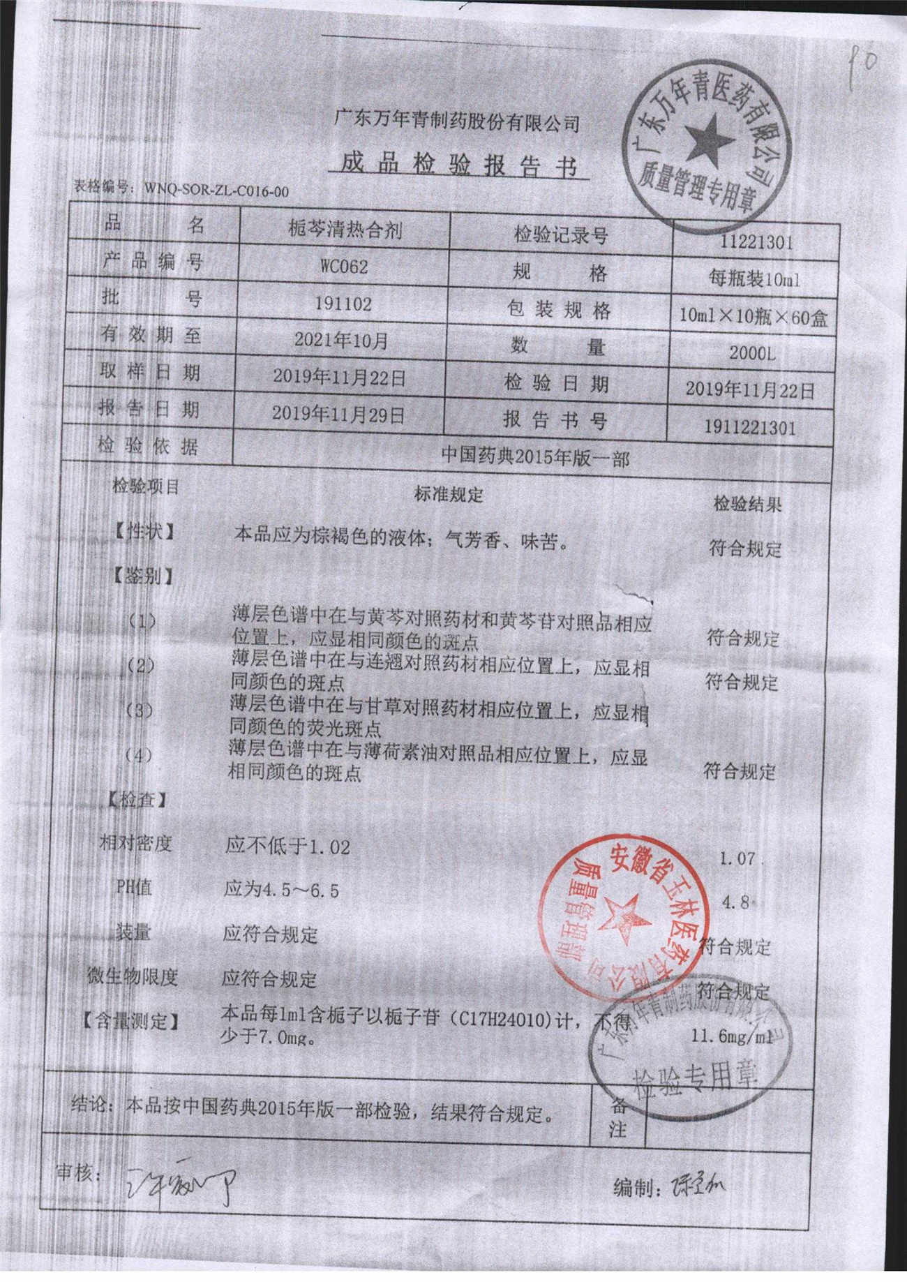 | 梔芩清熱合劑 | 10ml*10瓶 | 191103 | 查看詳情 |