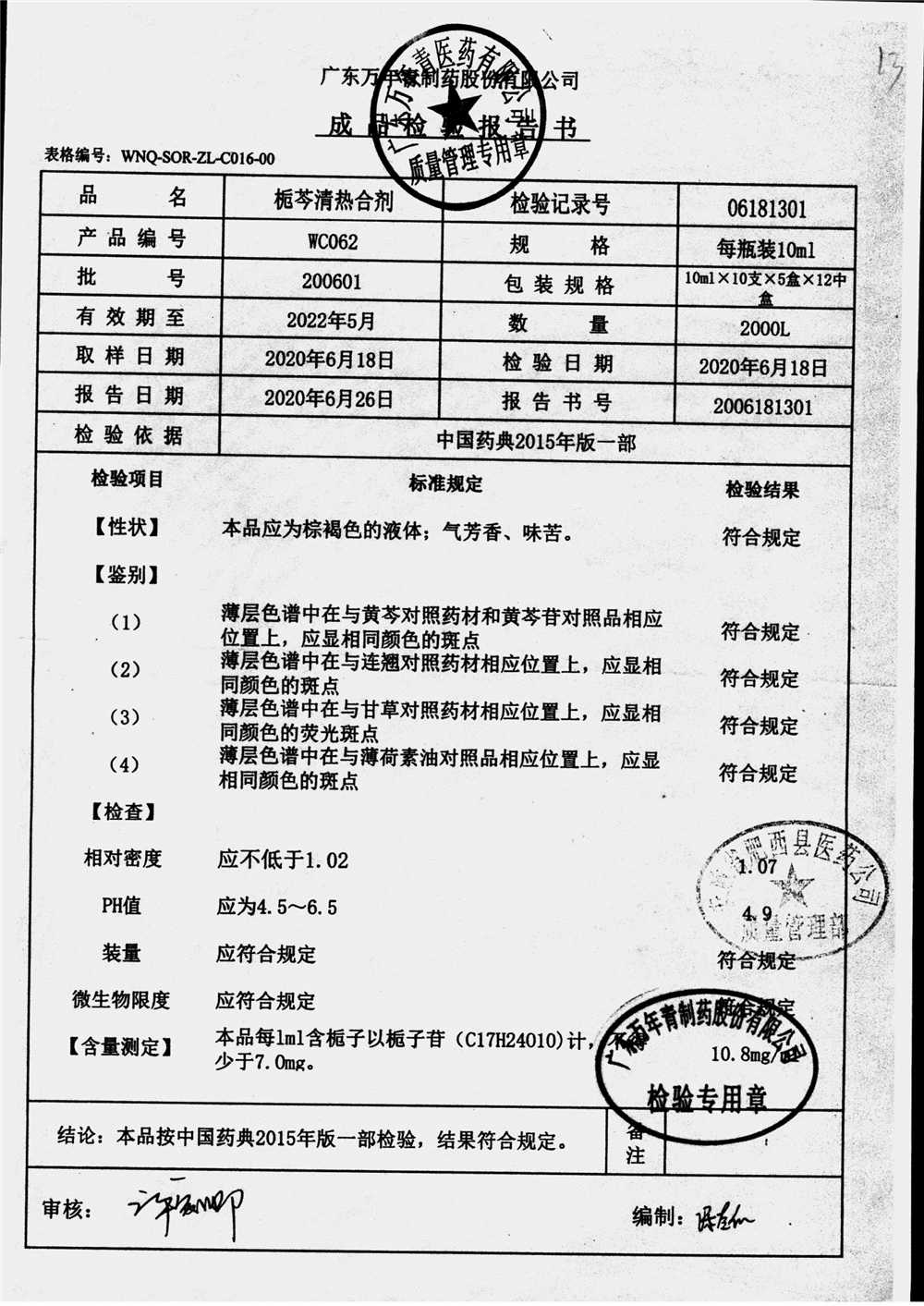 | 梔芩清熱合劑 | 10ml*10瓶 | 2303005 | 查看詳情 |