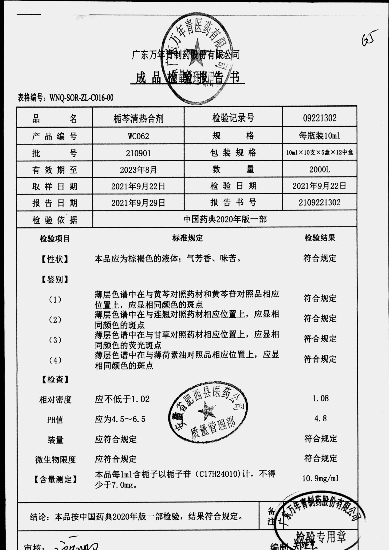 | 梔芩清熱合劑 | 10ml*10瓶 | 210901 | 查看詳情 |