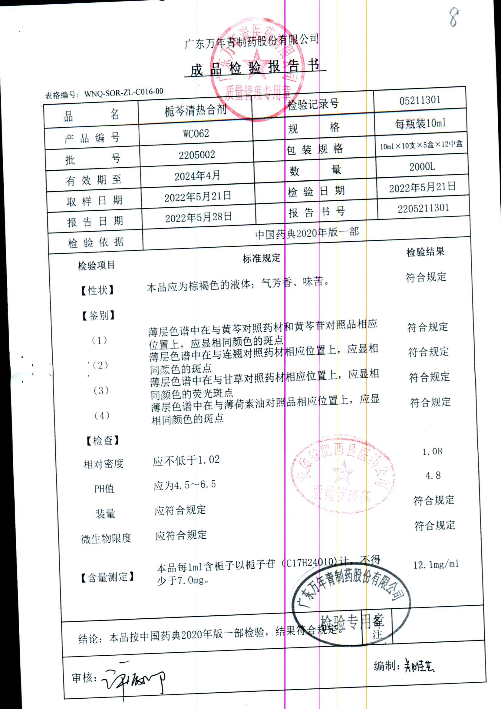 | 梔芩清熱合劑 | 10ml*10瓶 | 191102 | 查看詳情 |