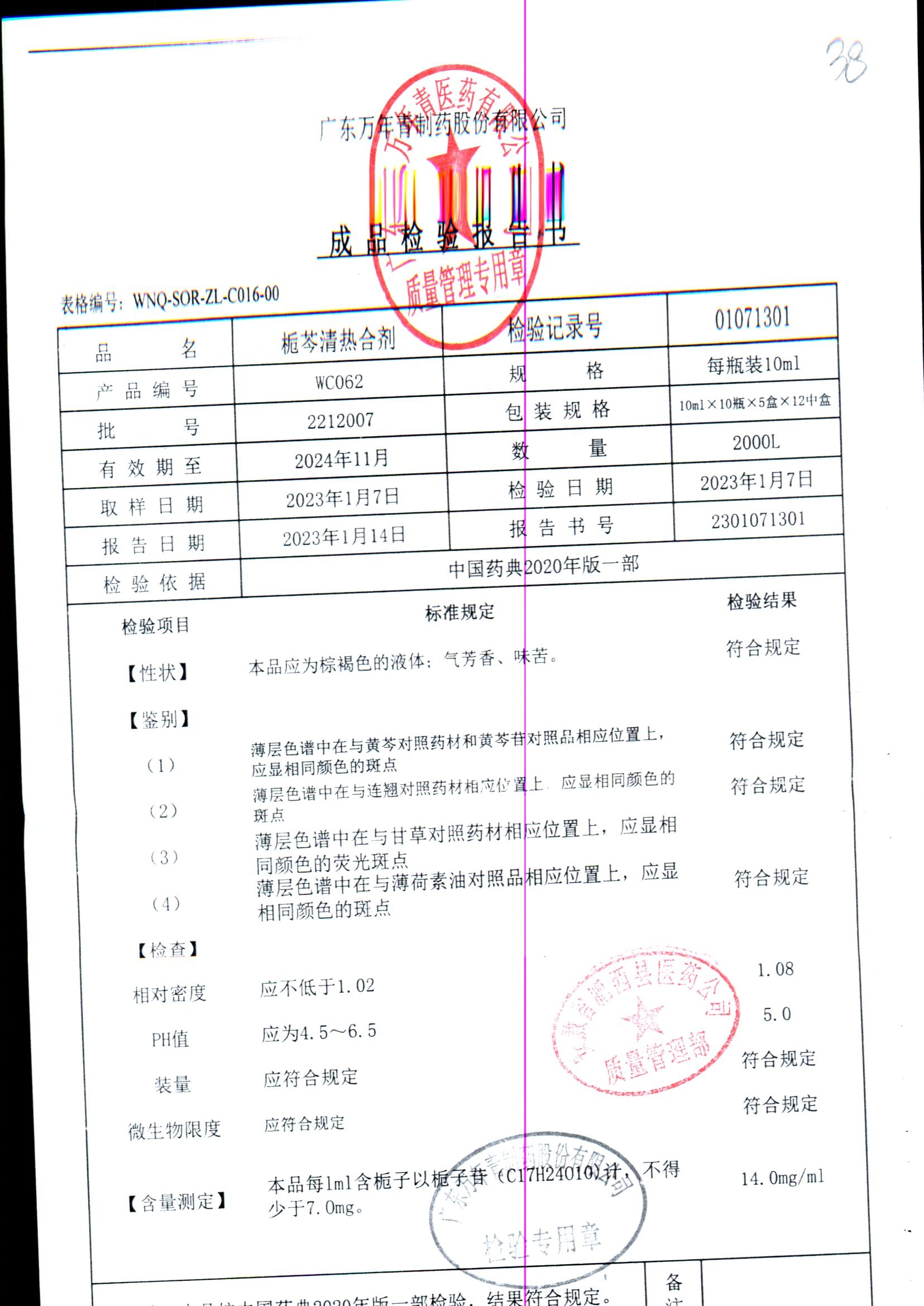 | 梔芩清熱合劑 | 10ml*10瓶 | 2302004 | 查看詳情 |
