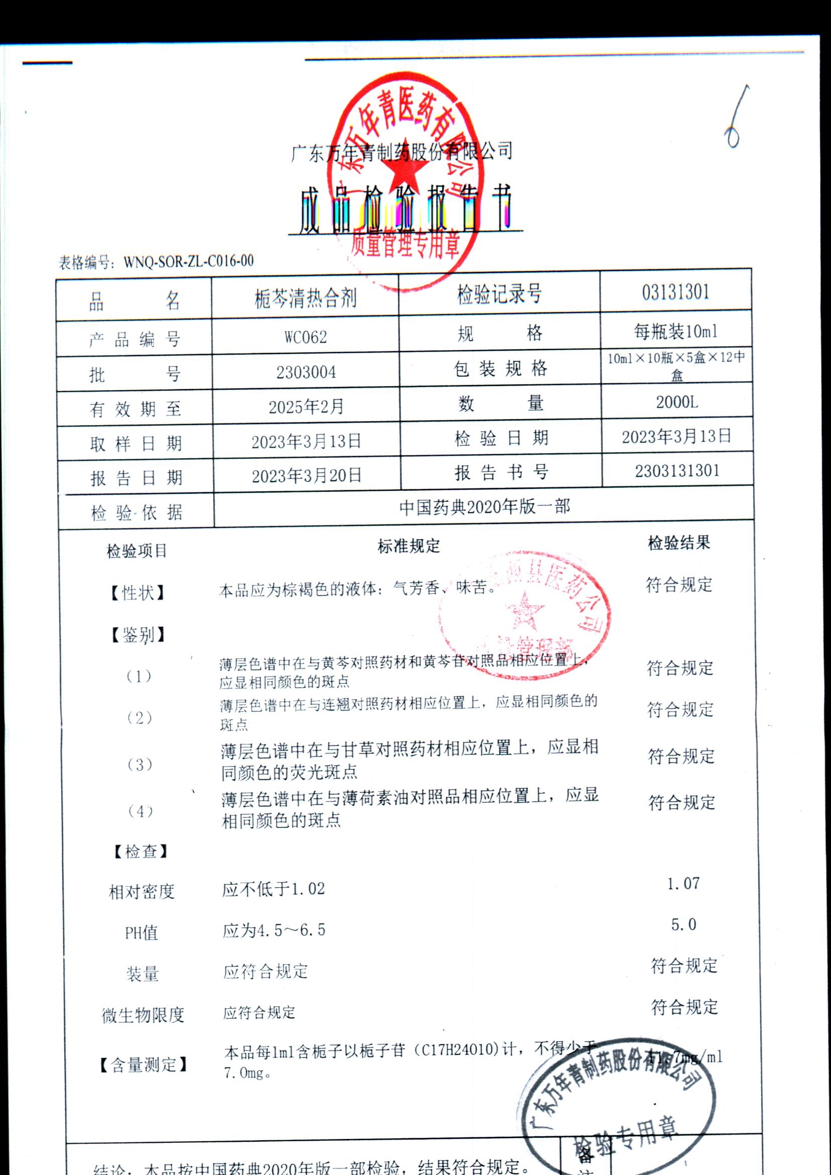 | 梔芩清熱合劑 | 10ml*10瓶 | 180301 | 查看詳情 |