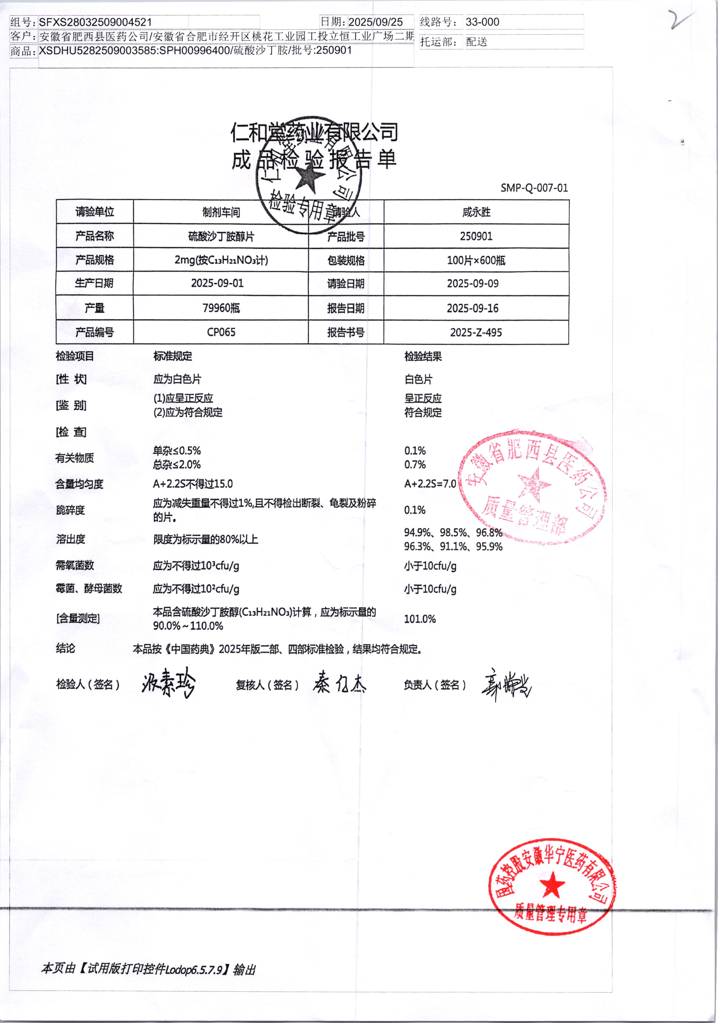 名稱 規格 批號 藥檢報告