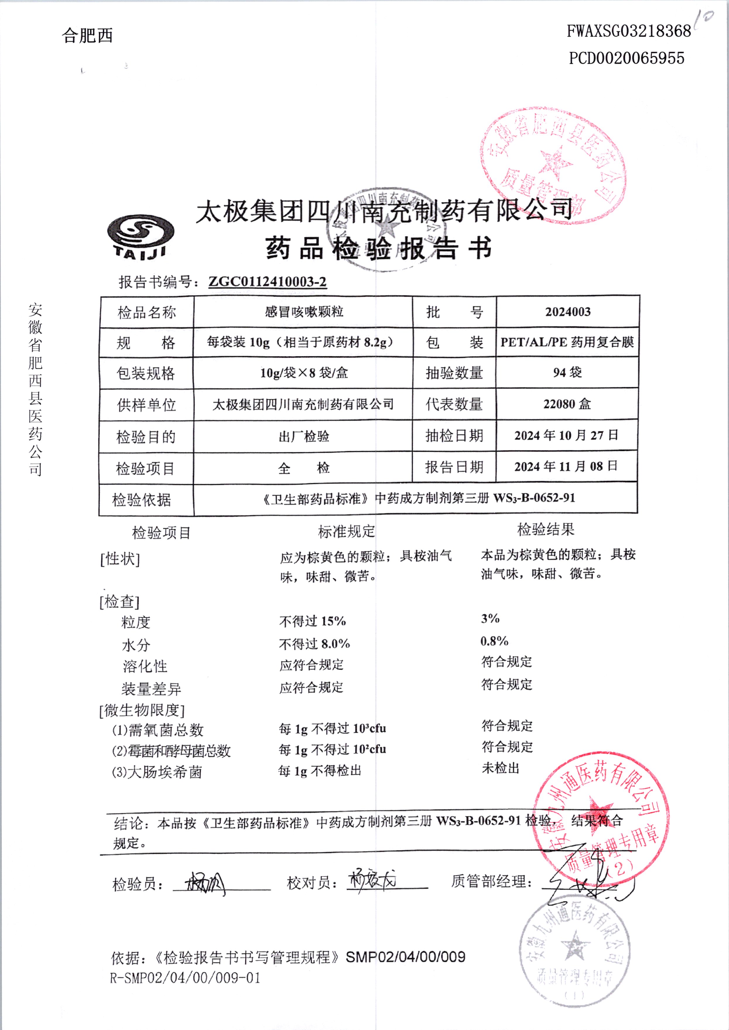 感冒咳嗽顆粒 10g*8袋 2024003 查看詳情