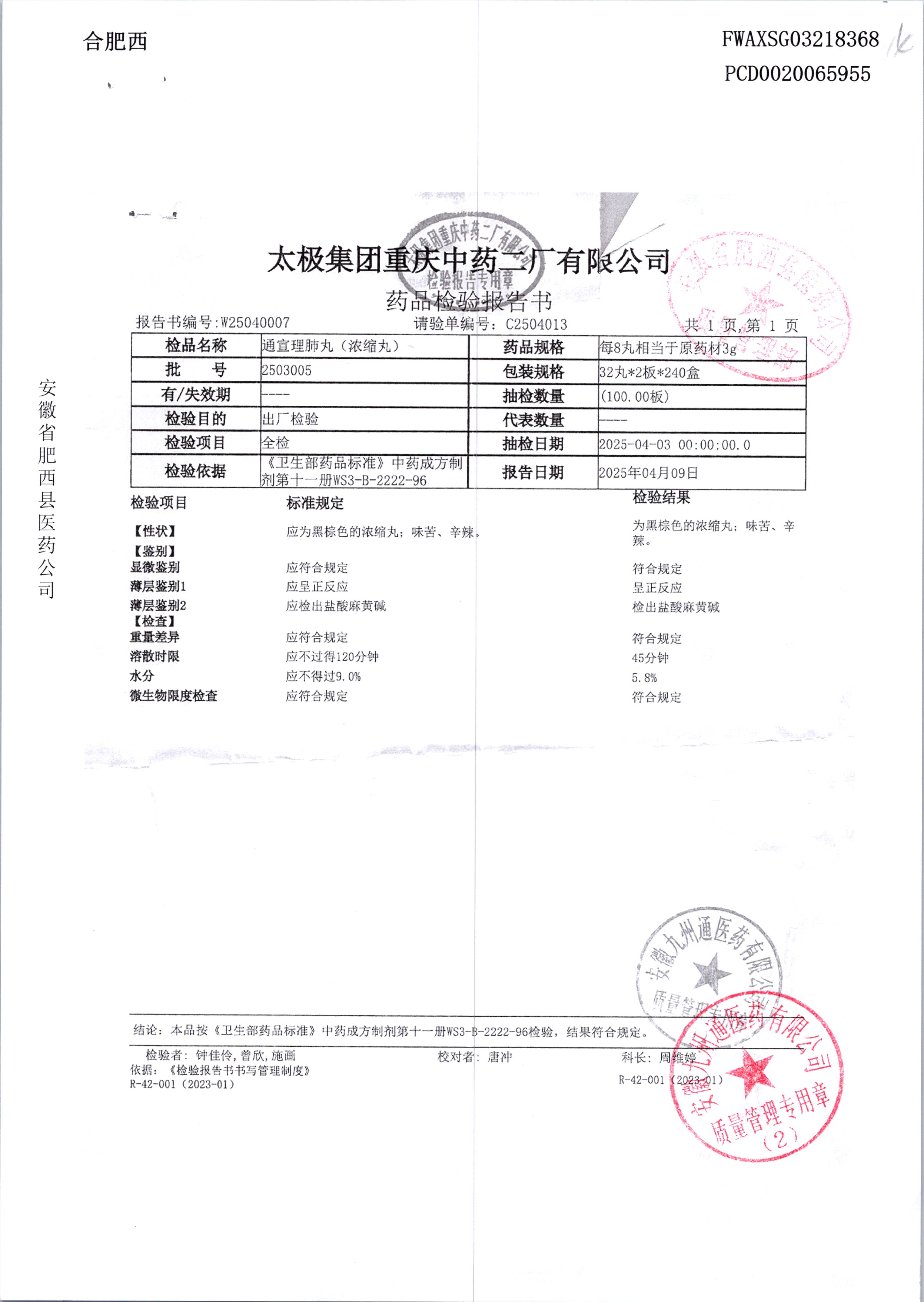 名稱 規格 批號 藥檢報告