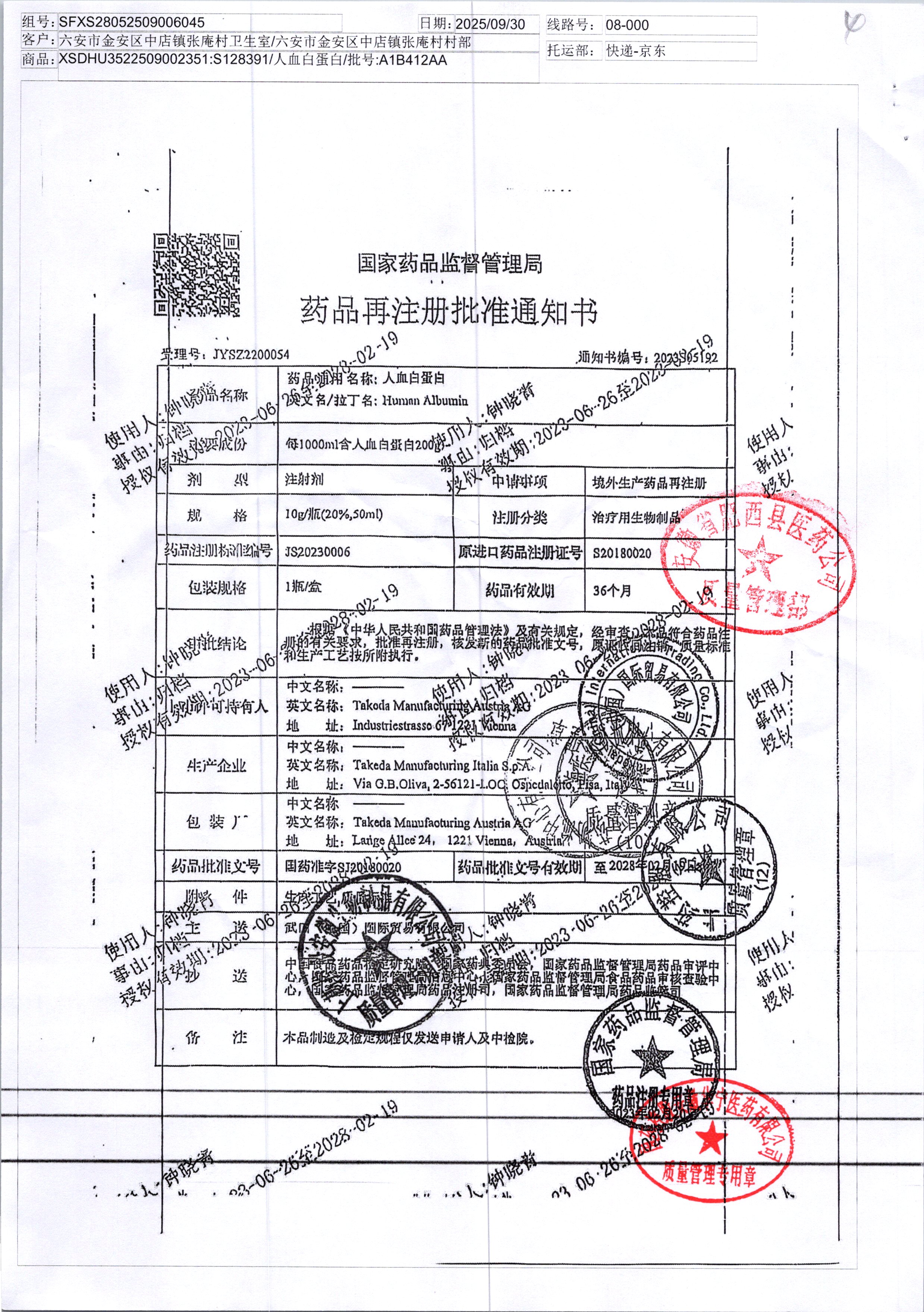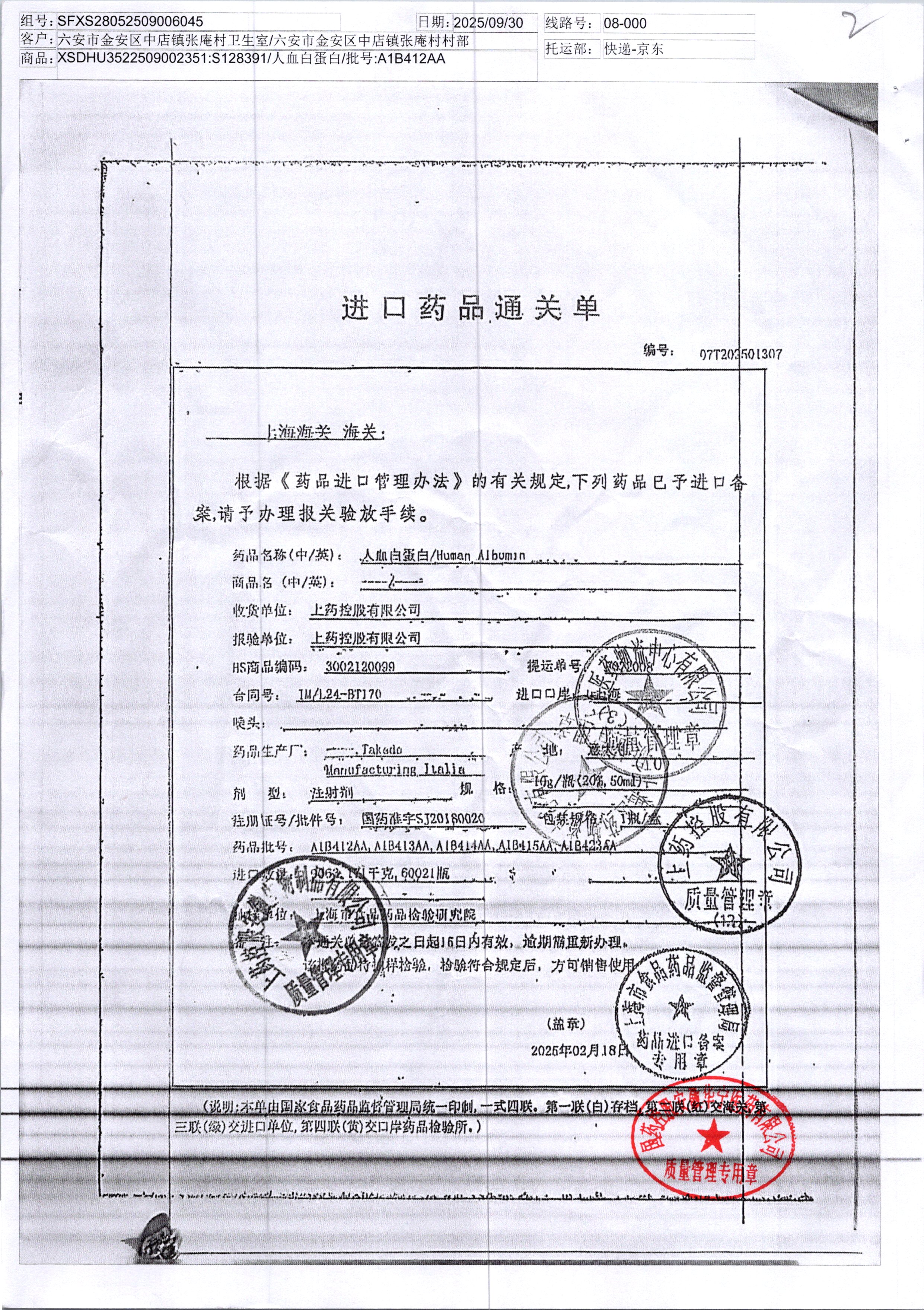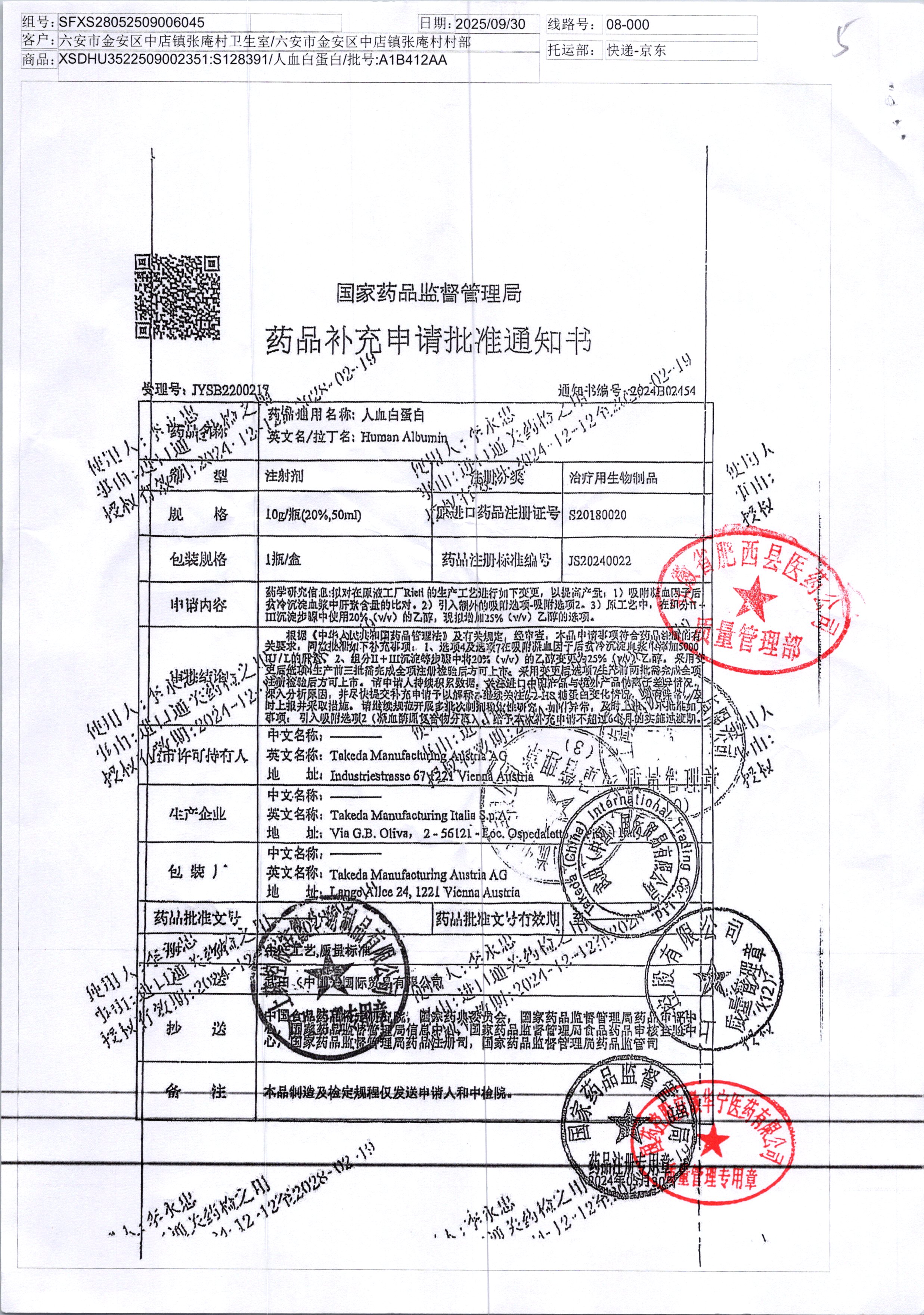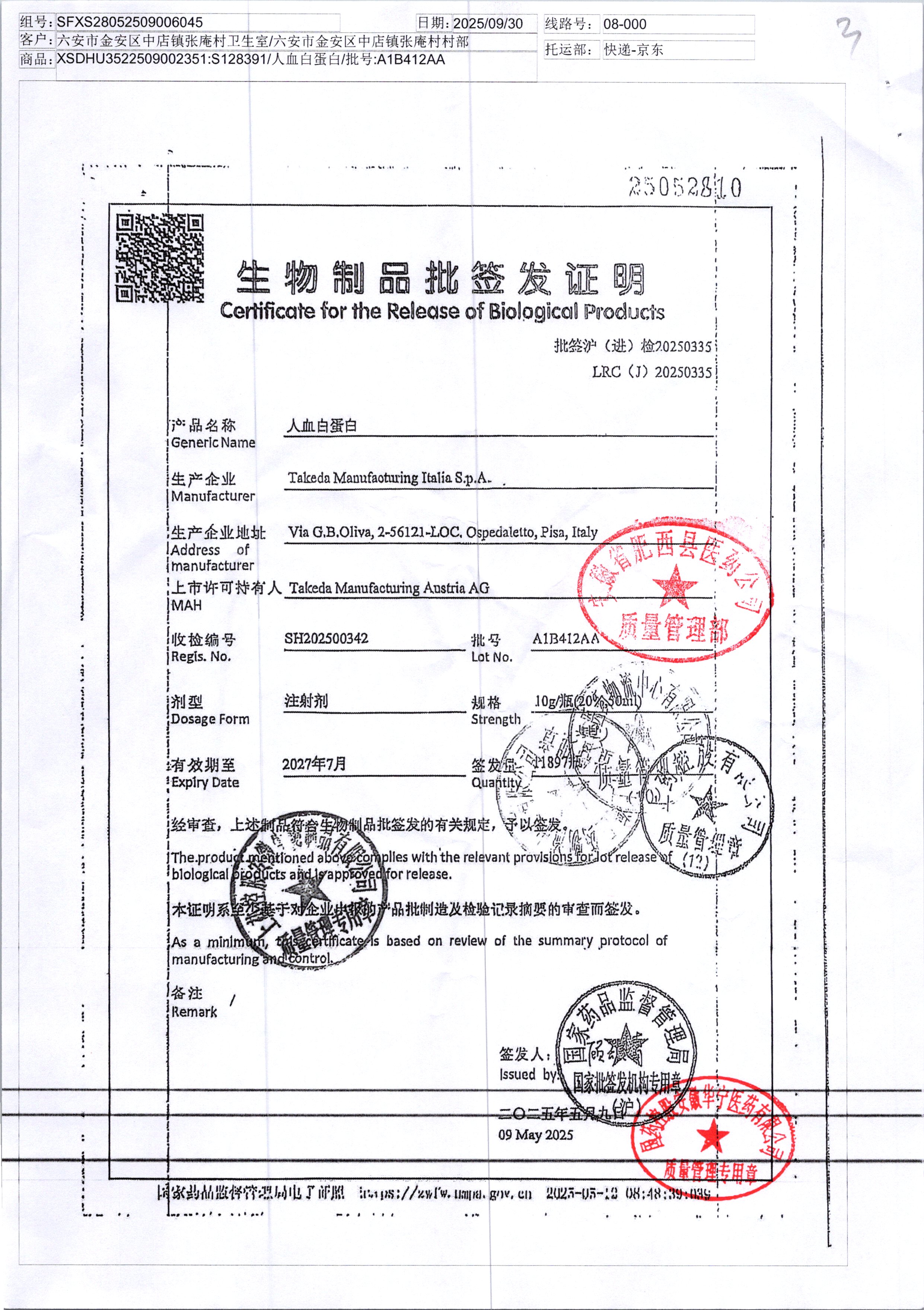 人血白蛋白 10g A1B412AA/4 查看詳情