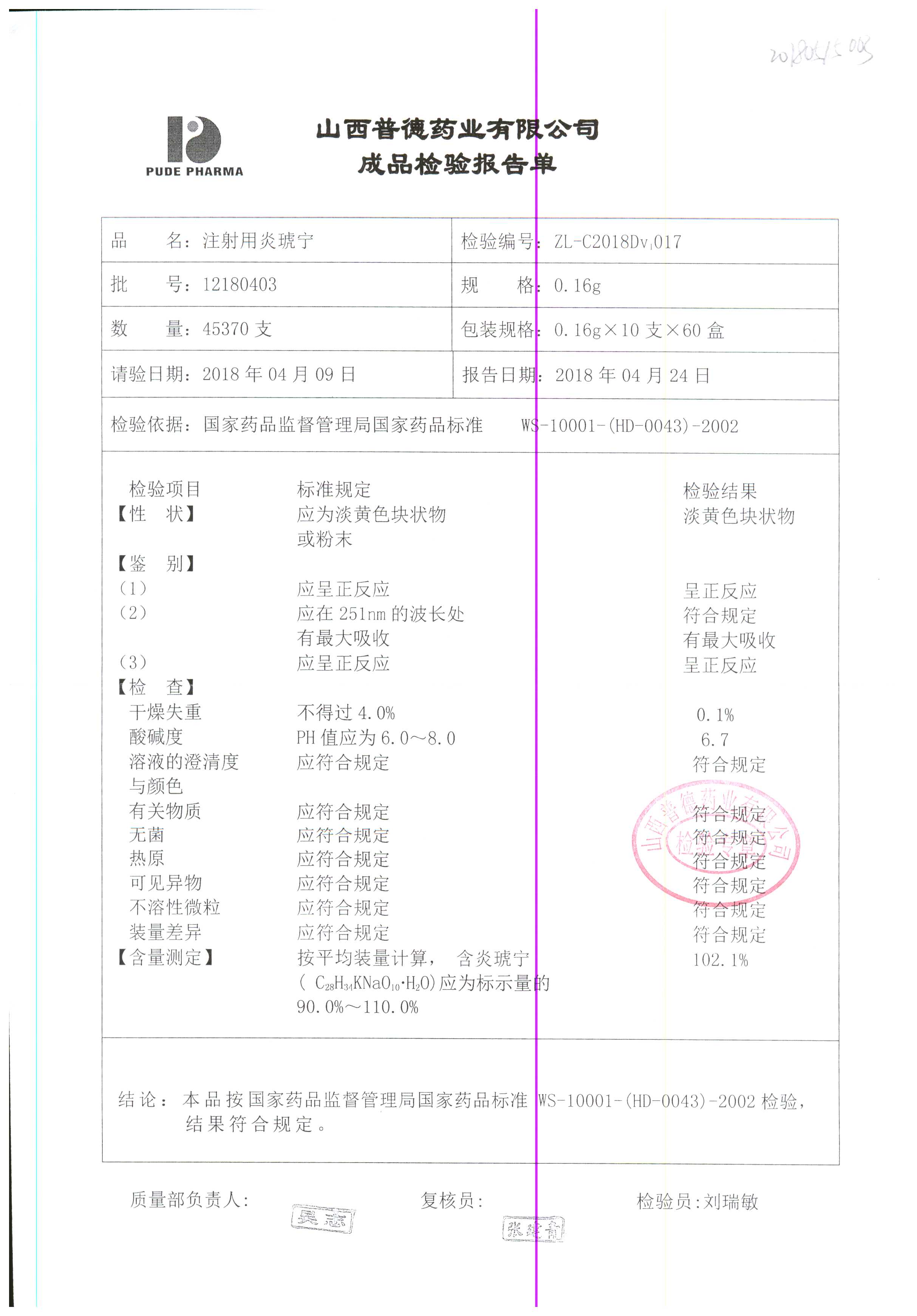 | 注射用炎琥寧 | 0.16g*10支 | 12180403 | 查看詳情 |