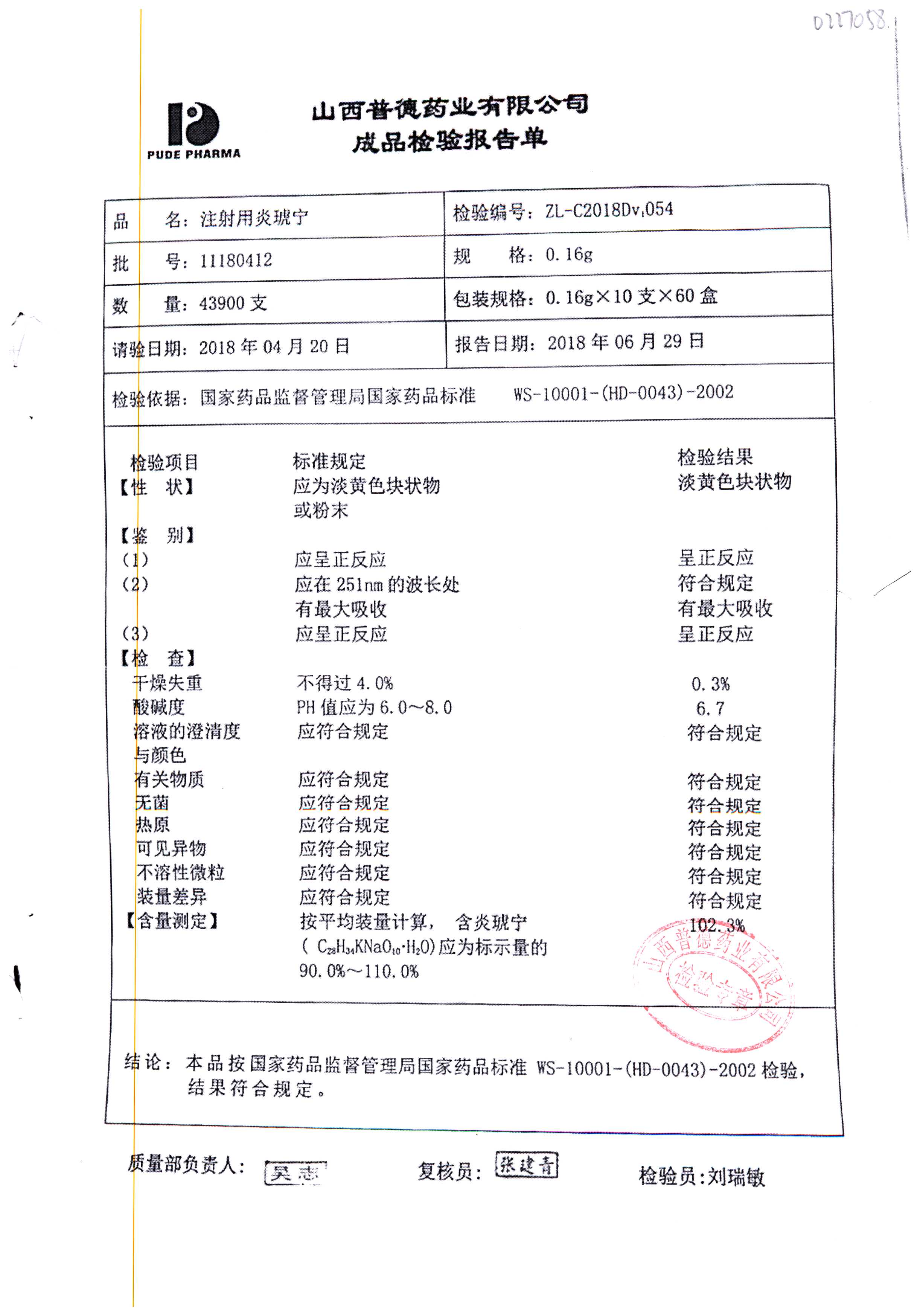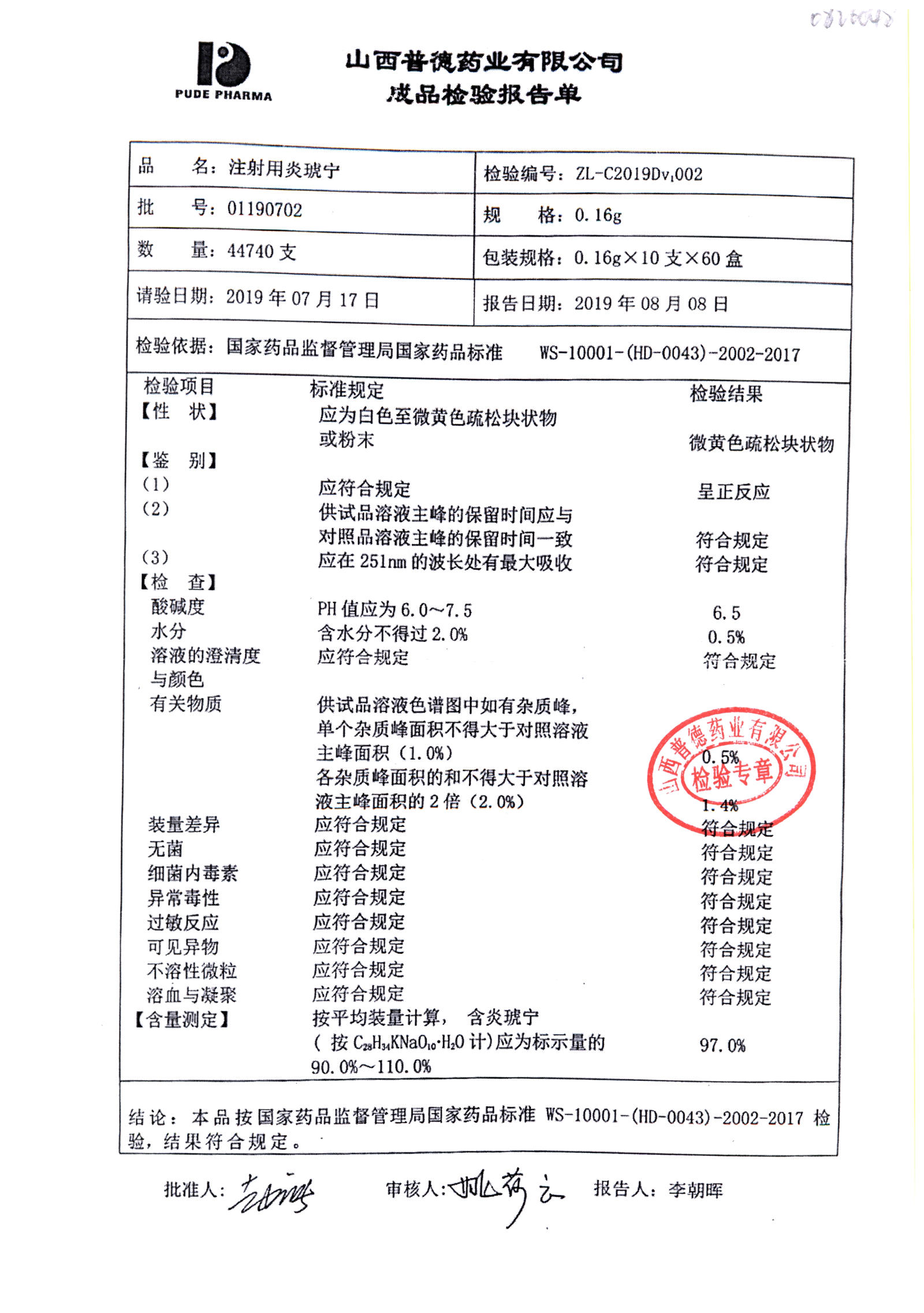 | 名稱 | 規(guī)格 | 批號(hào) | 藥檢報(bào)告 |