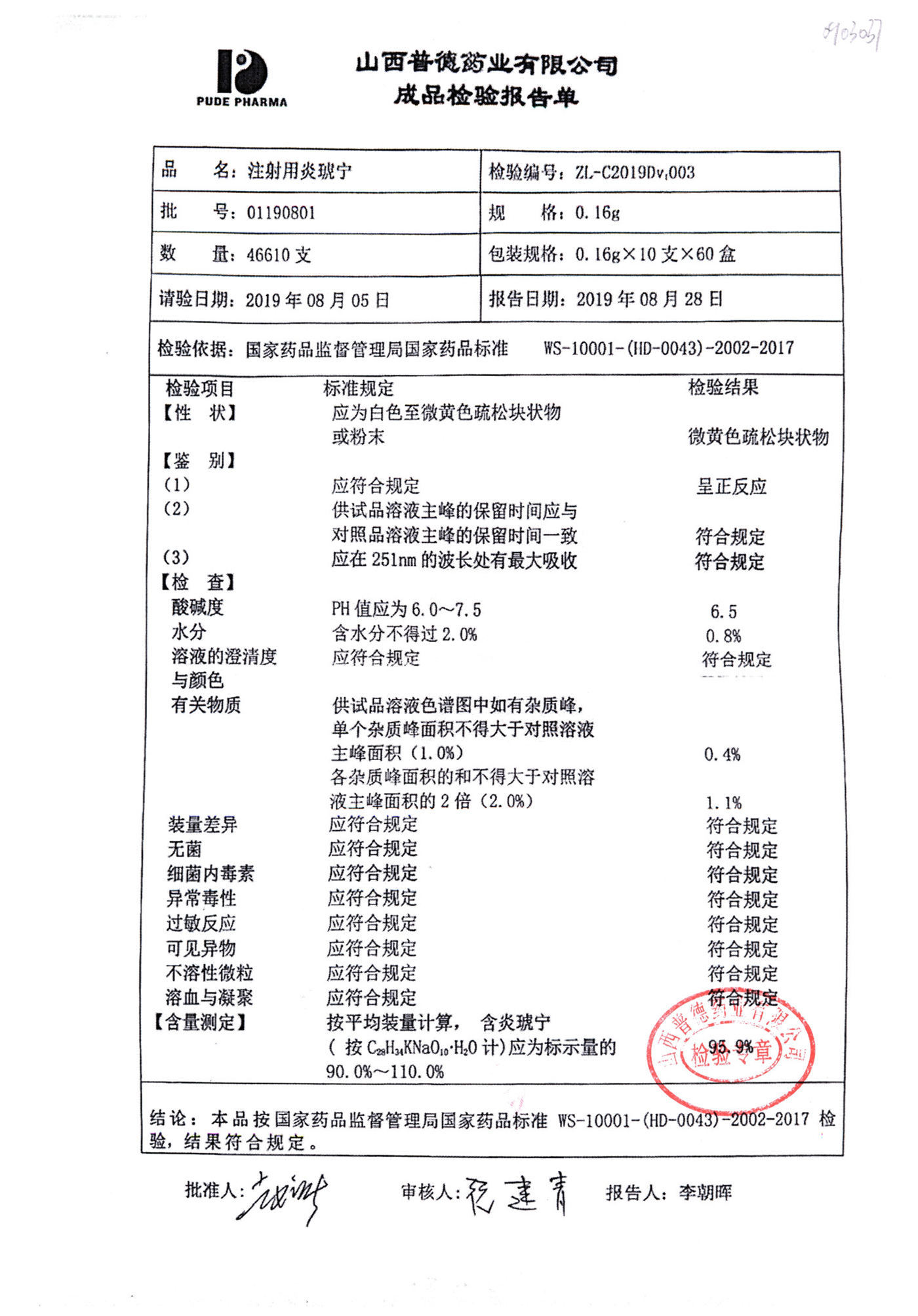 | 注射用炎琥寧 | 0.16g*10支 | 01190801 | 查看詳情 |