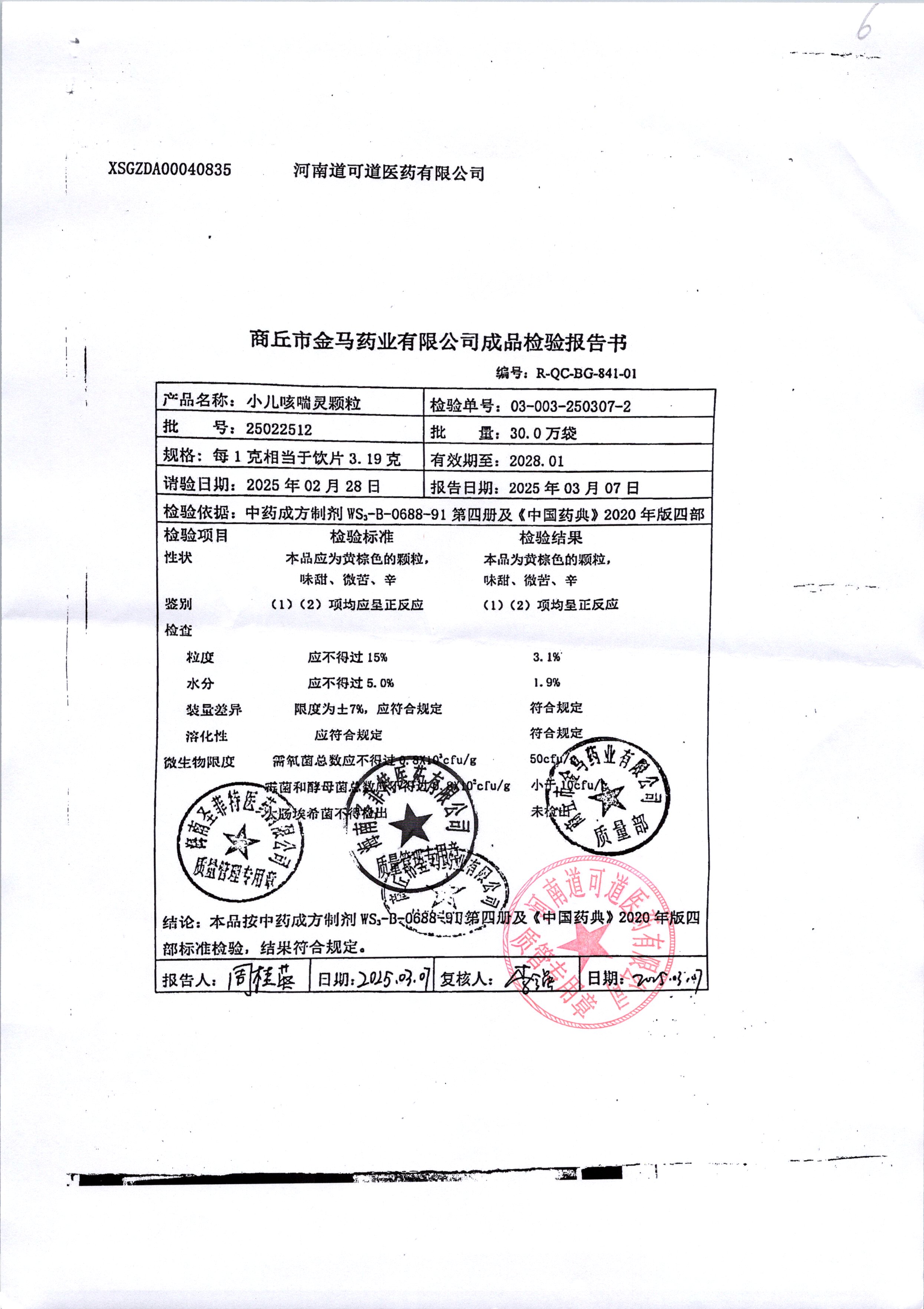 名稱 規(guī)格 批號(hào) 藥檢報(bào)告