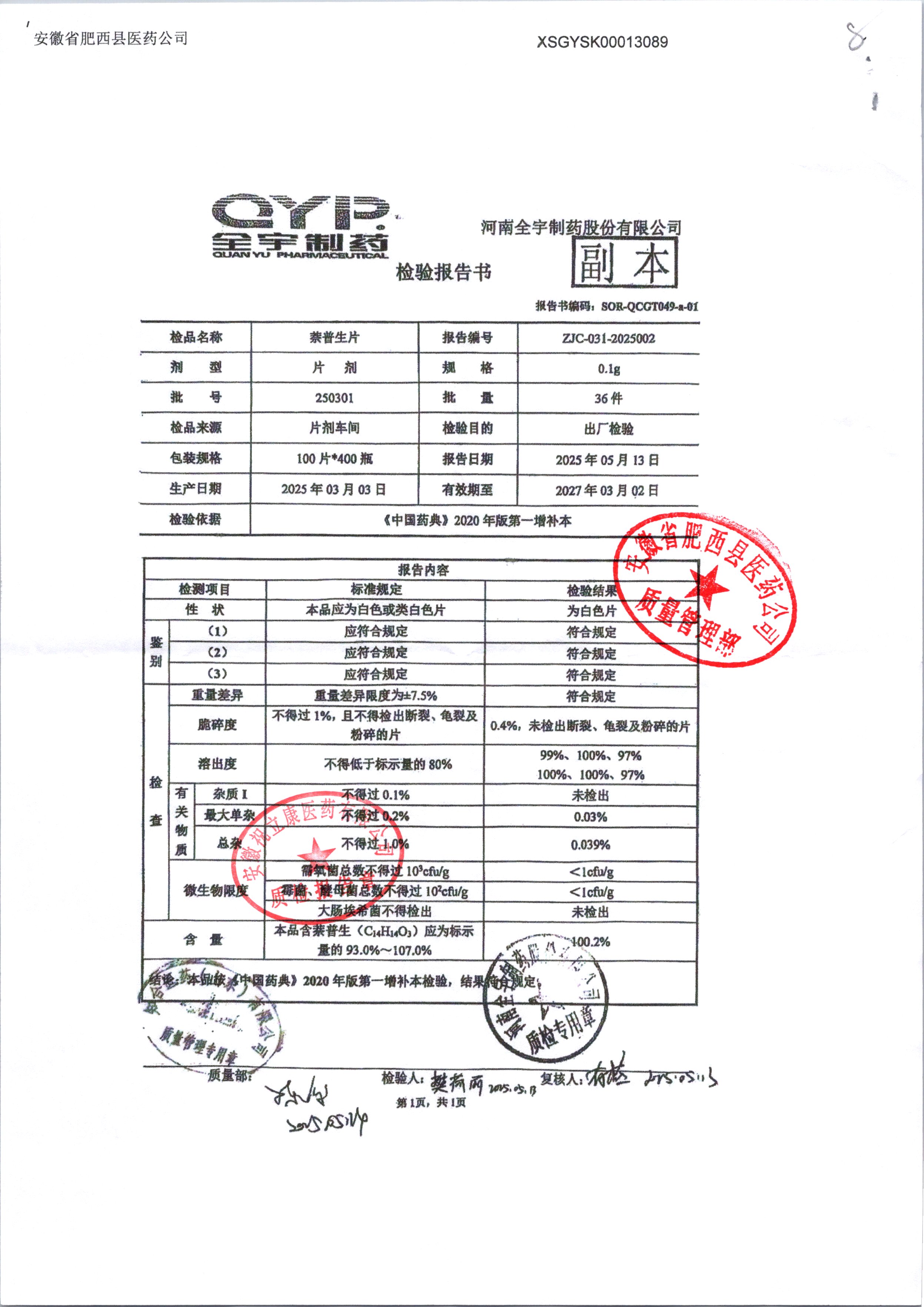 名稱 規格 批號 藥檢報告