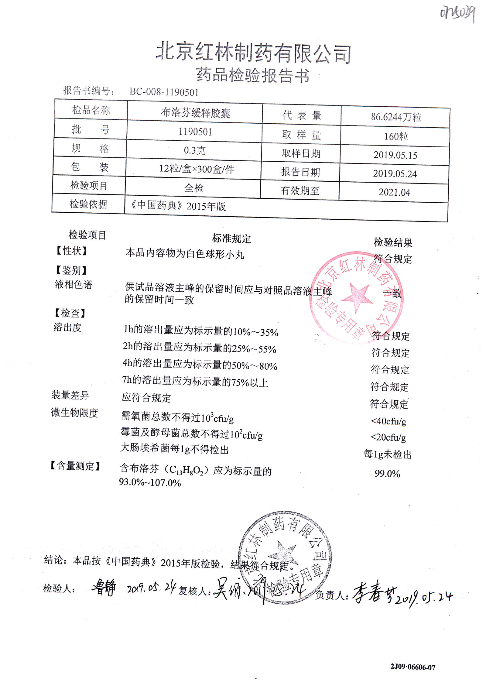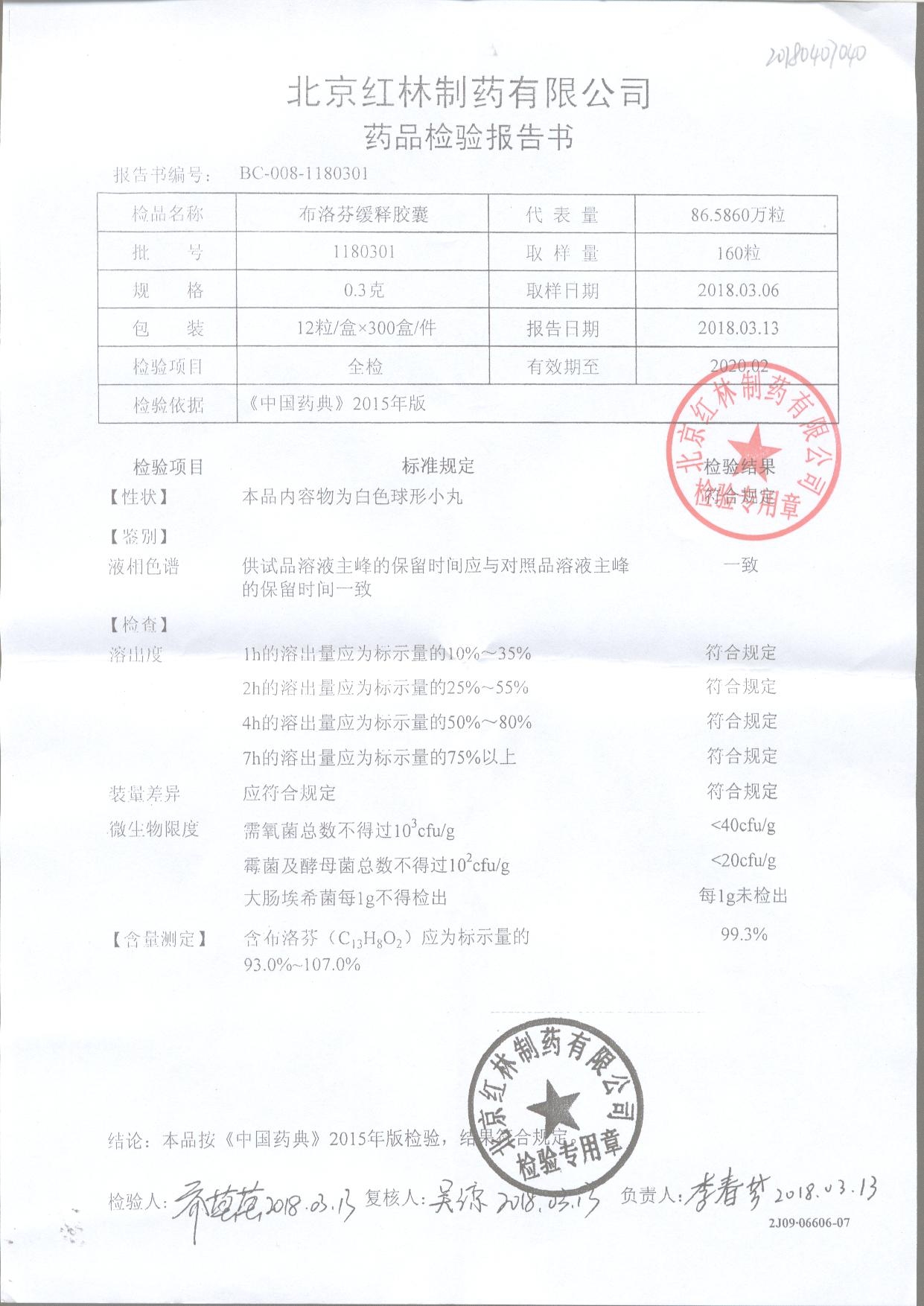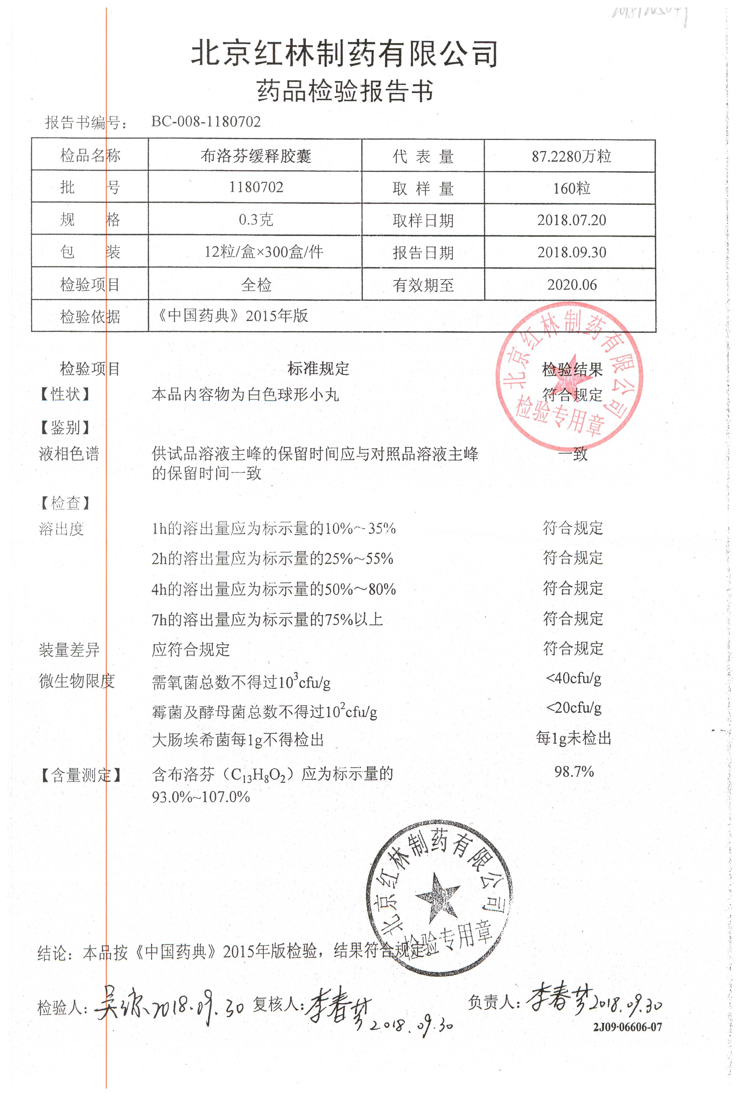 | 布洛芬緩釋膠囊 | 0.3g*12粒 | 1180702(2/2) | 查看詳情 |