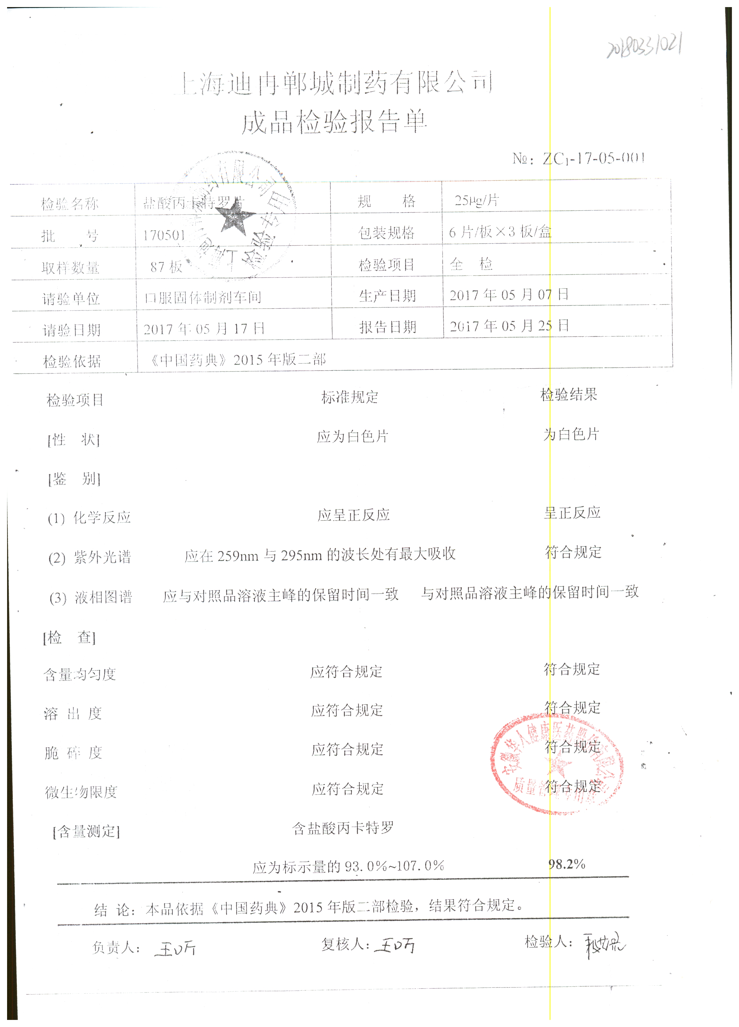 | 名稱 | 規格 | 批號 | 藥檢報告 |