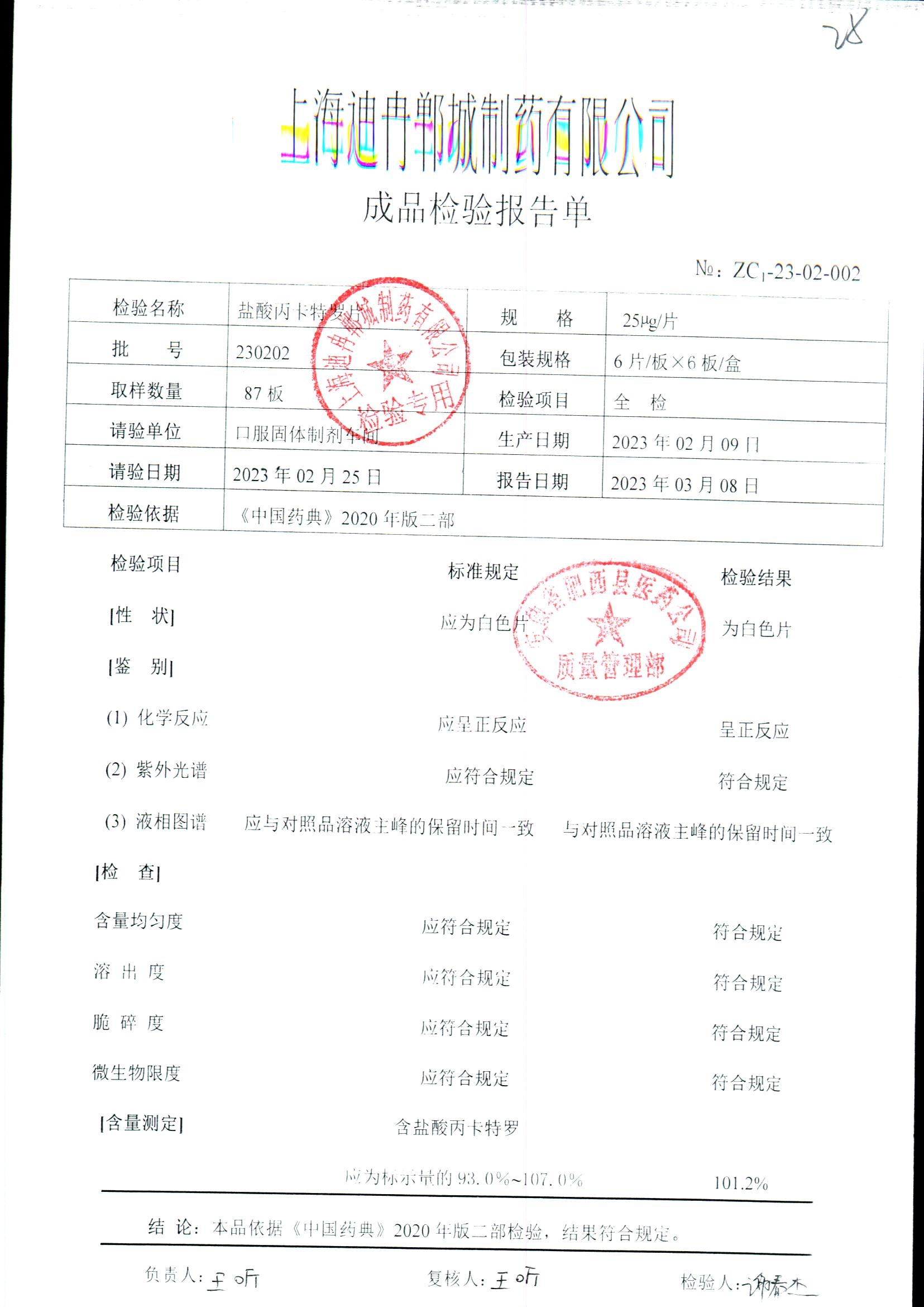 | 鹽酸丙卡特羅片 | 25mg*6s | 220301 | 查看詳情 |