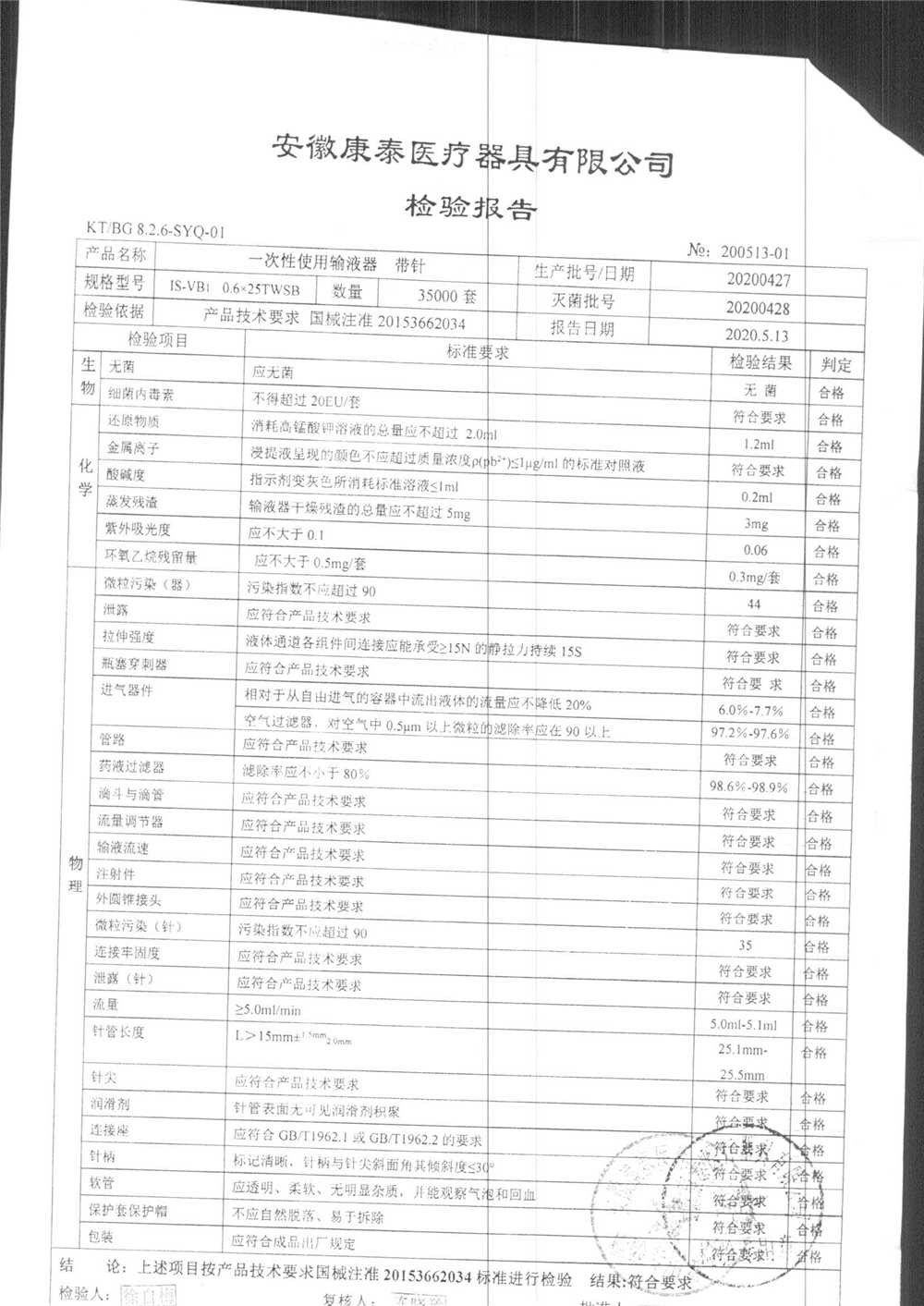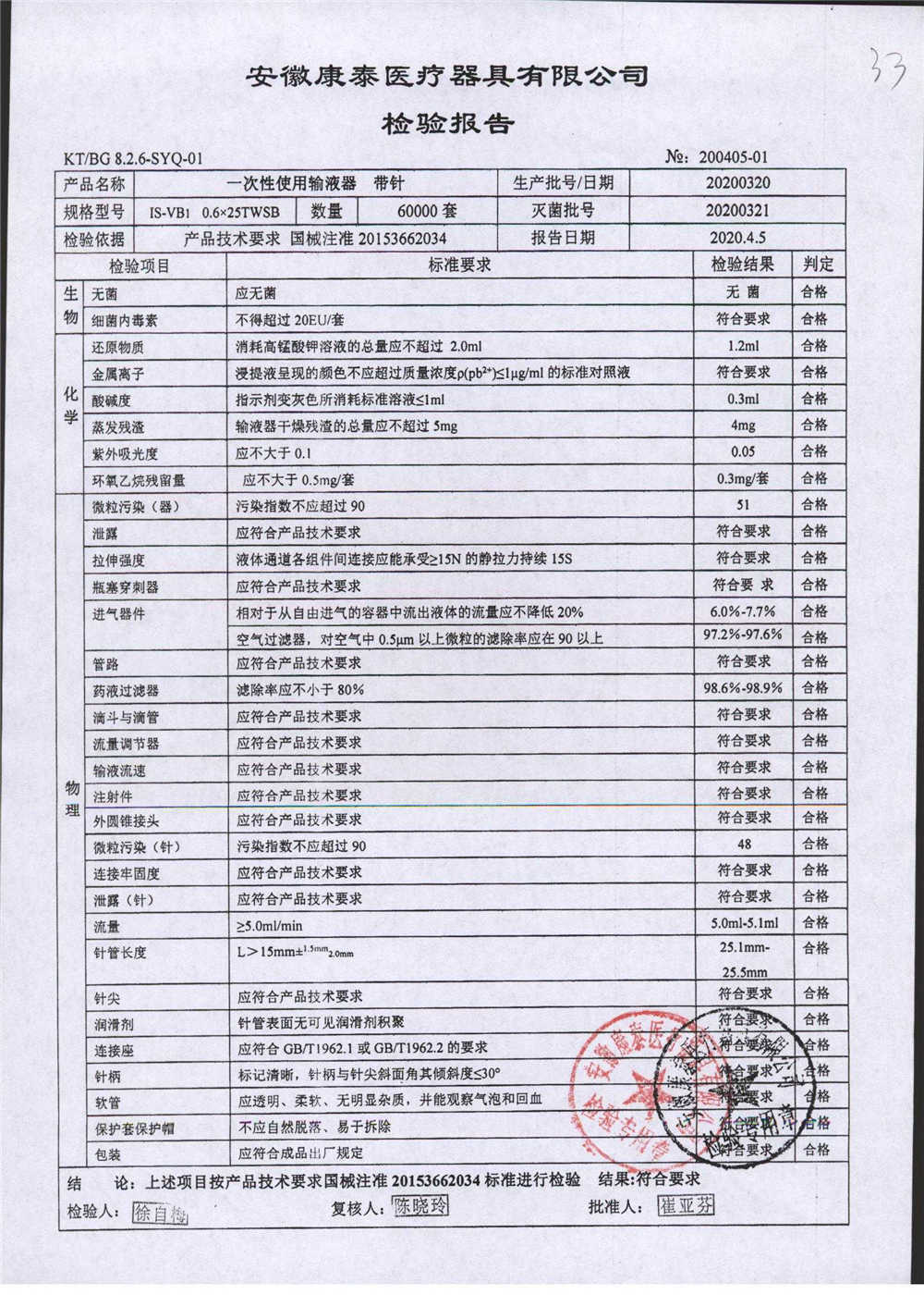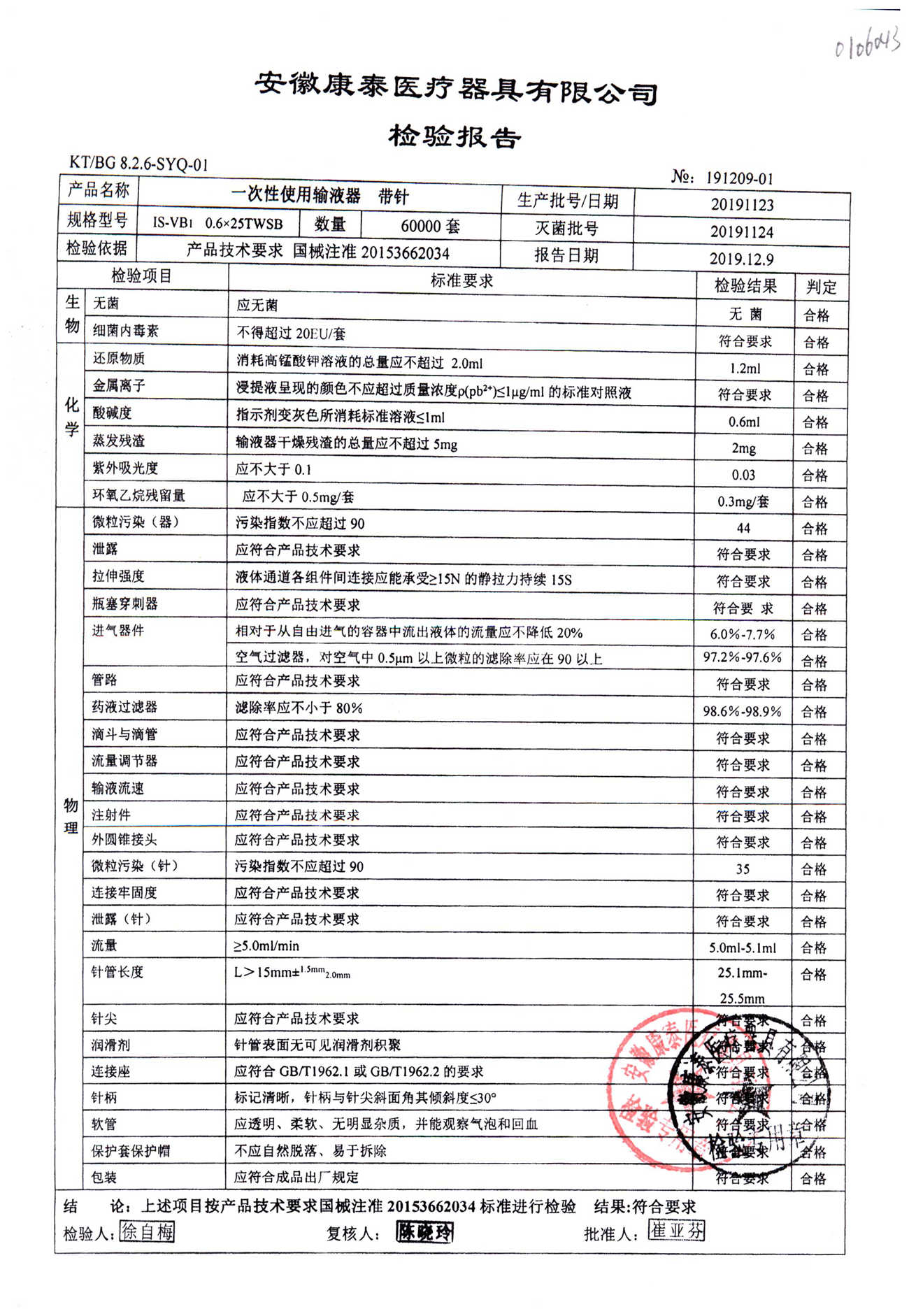 | 一次性使用輸液器 帶針 | 0.6*25TWSB | 20200229 | 查看詳情 |