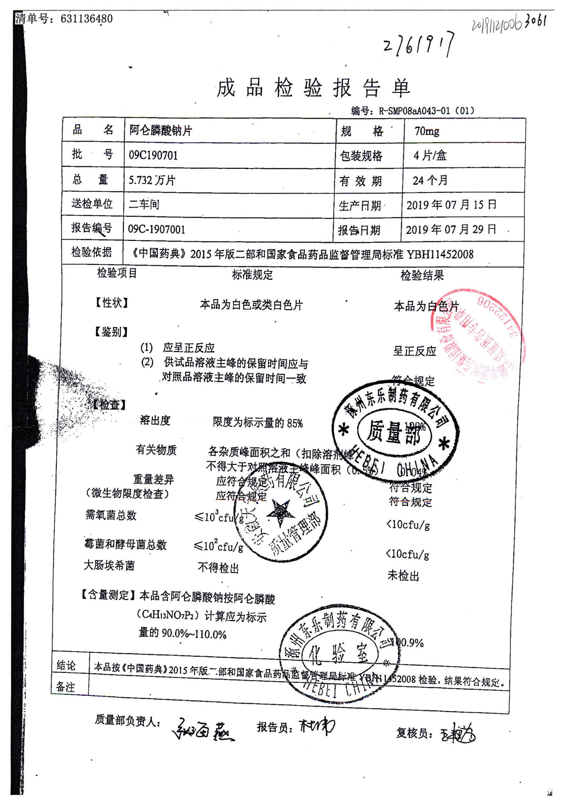阿侖膦酸鈉片 70mg*4s 09C190701 查看詳情