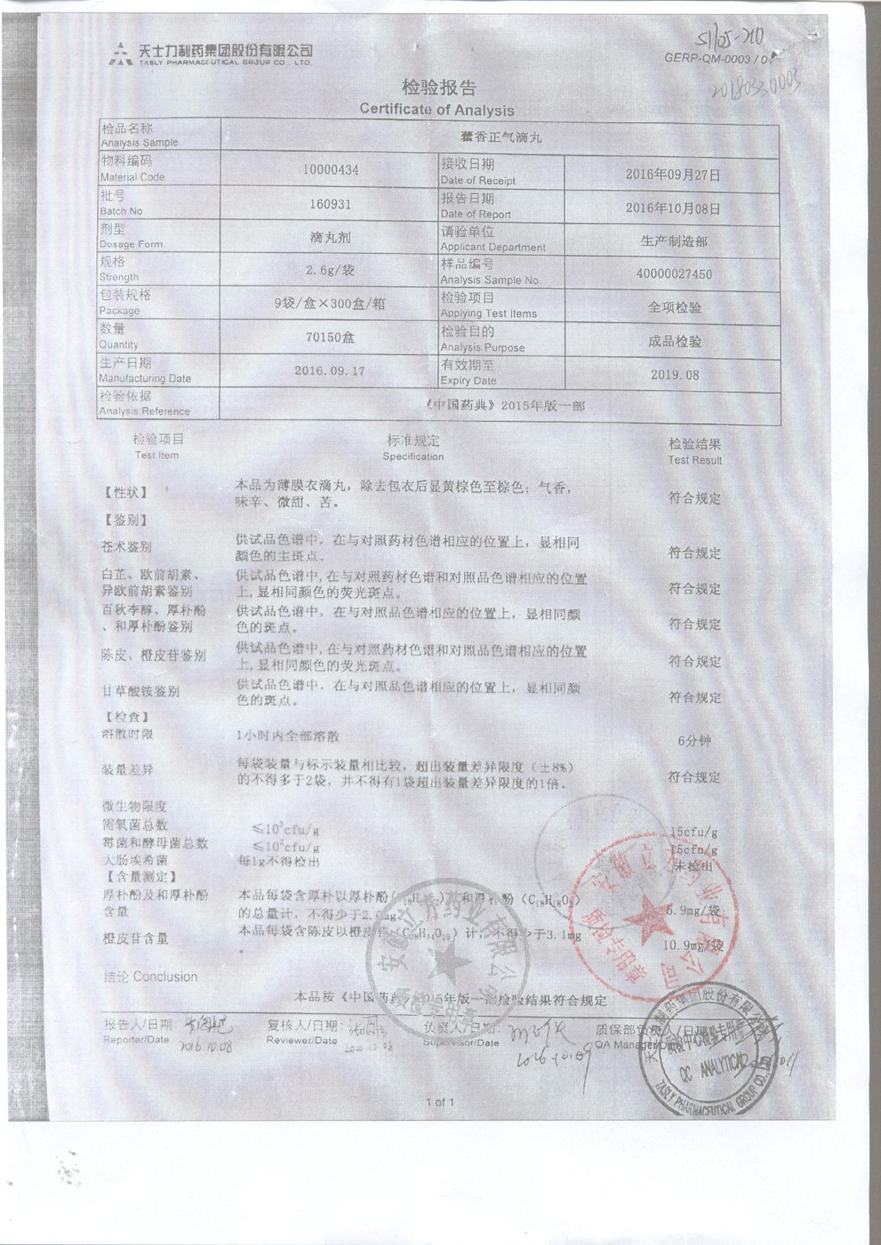 | 藿香正氣滴丸 | 2.6g*9袋 | 180907 | 查看詳情 |