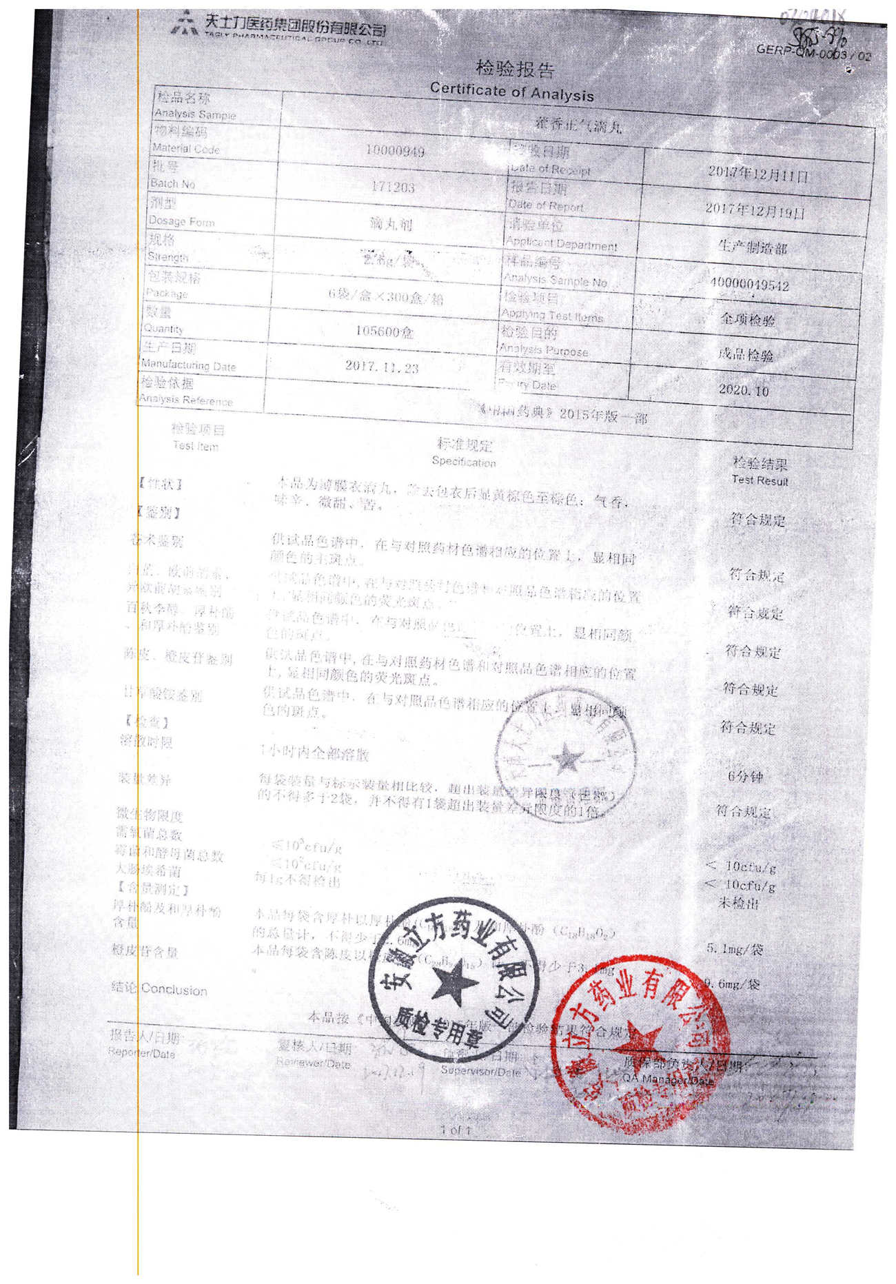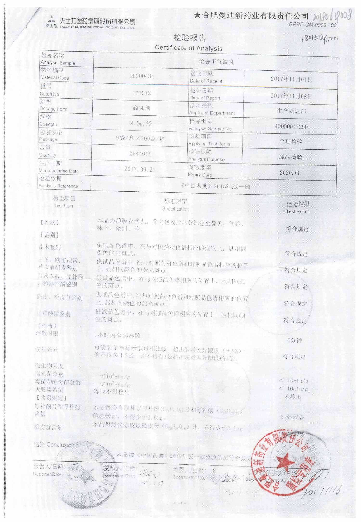 | 藿香正氣滴丸 | 2.6g*9袋 | 171012 | 查看詳情 |