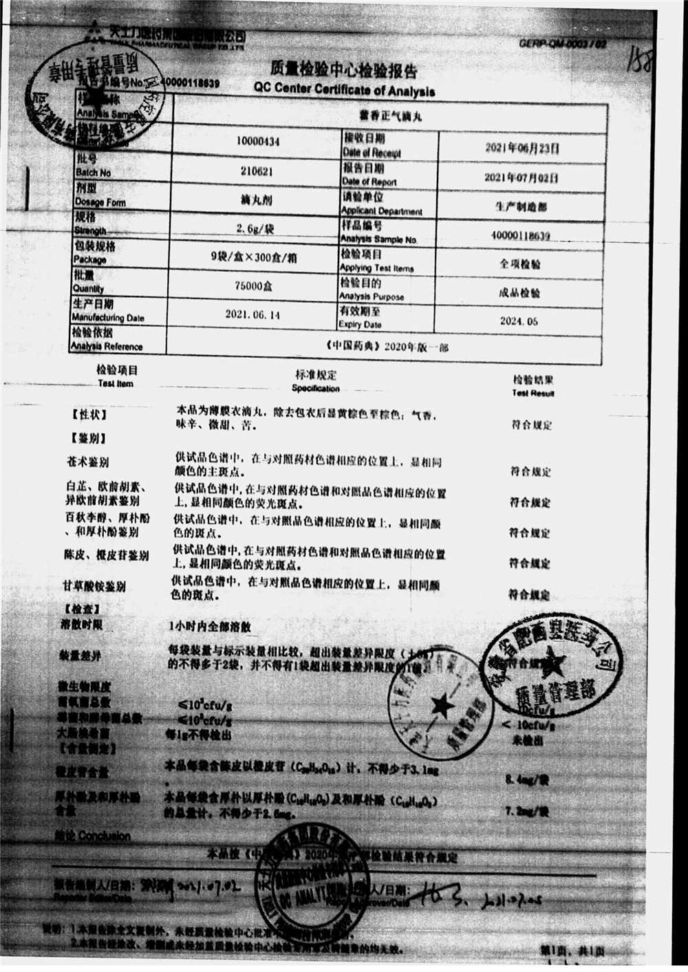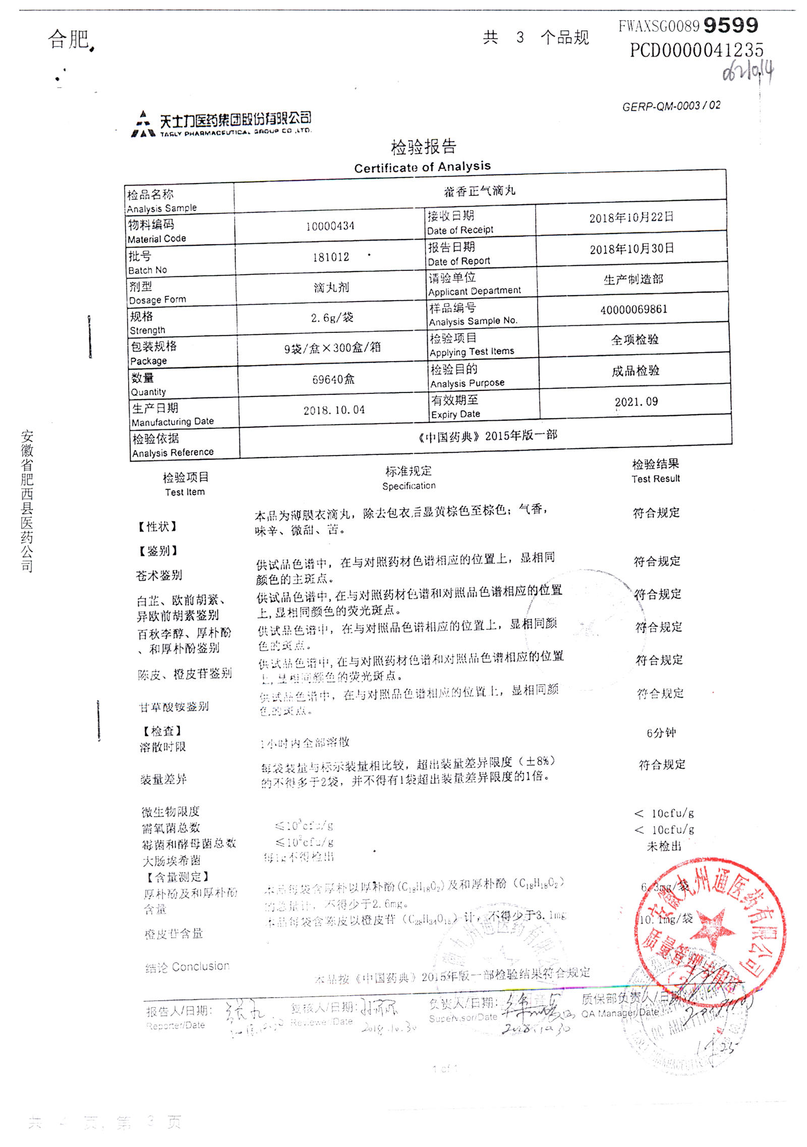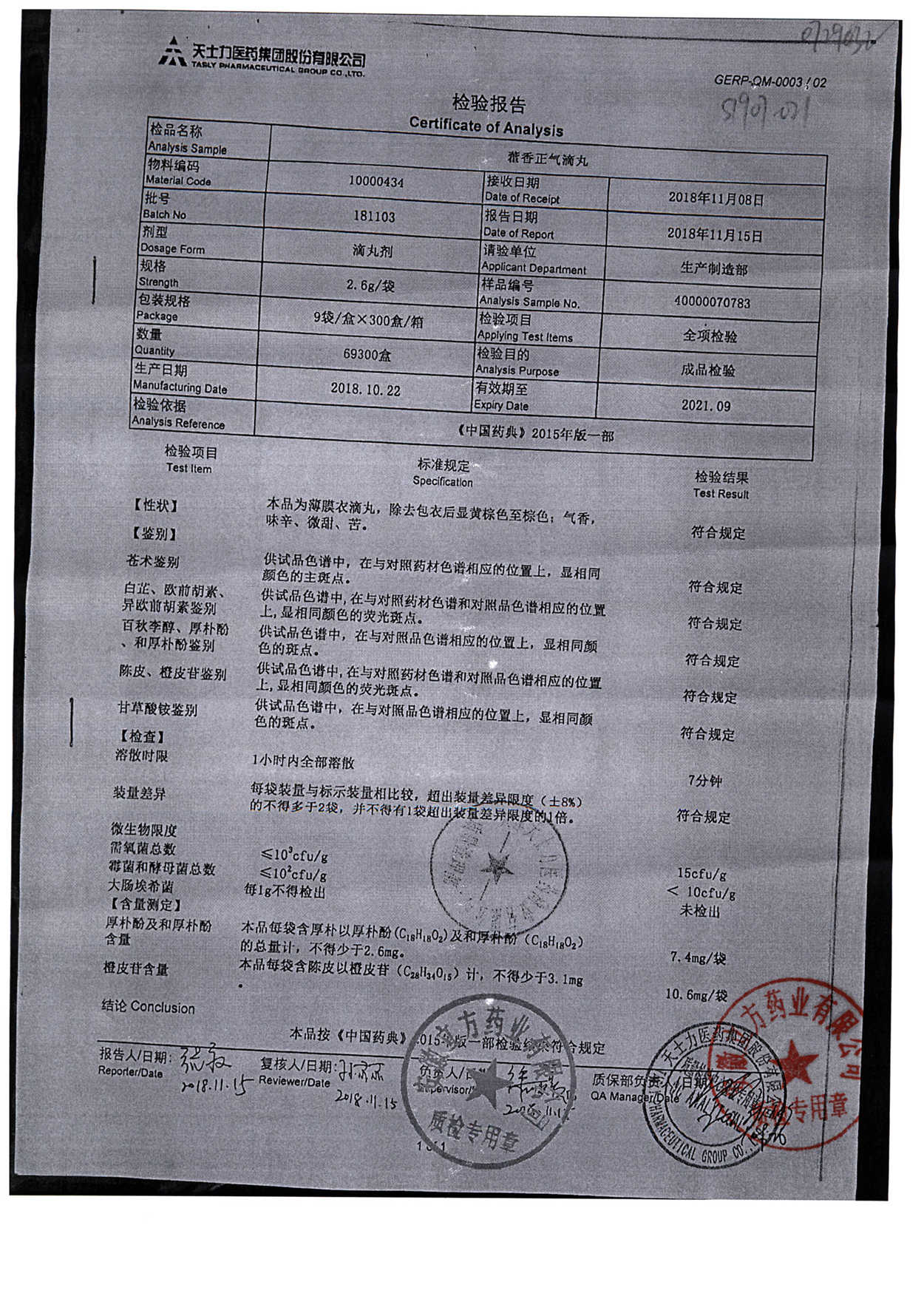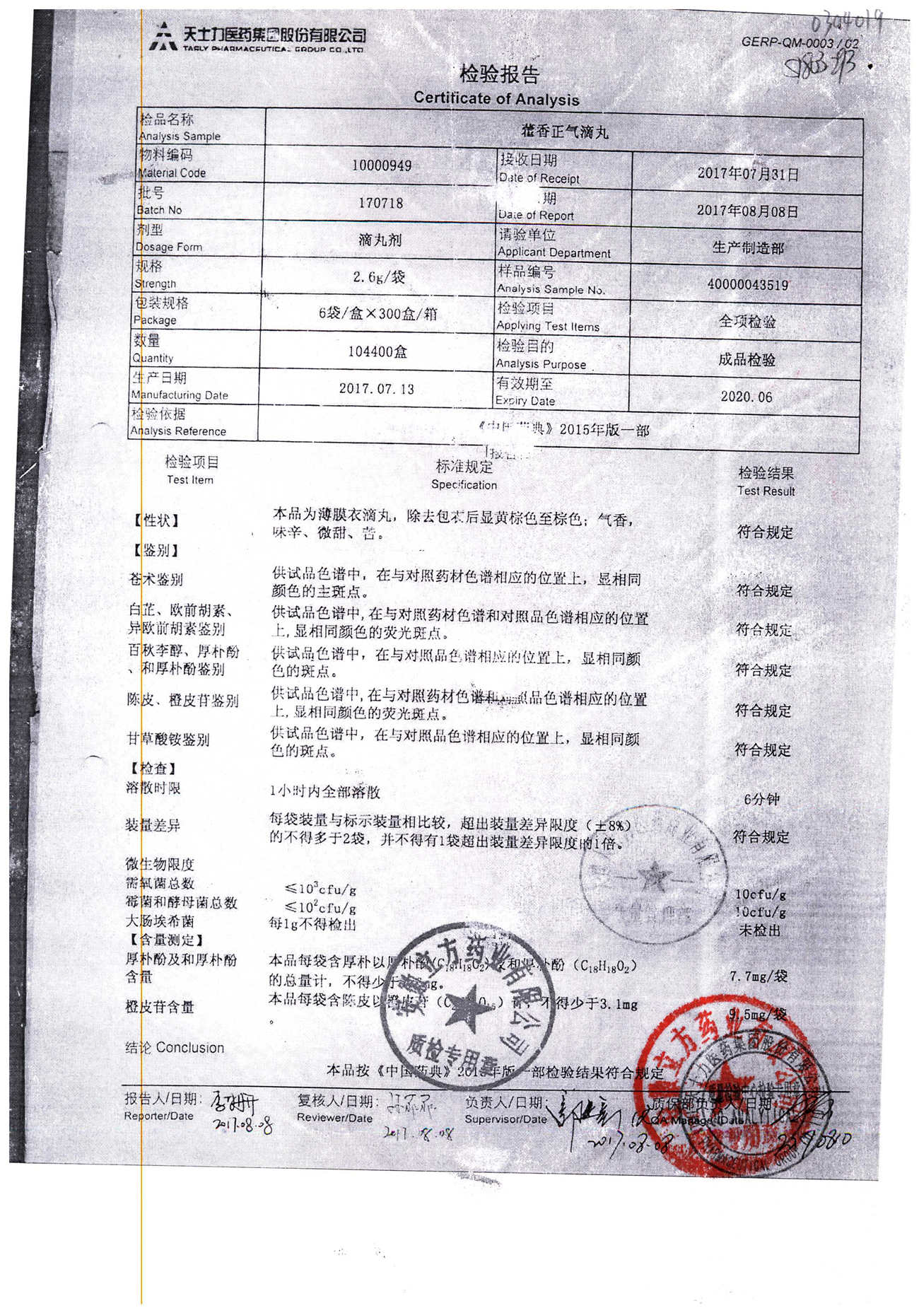 | 藿香正氣滴丸 | 2.6g*9袋 | 210621 | 查看詳情 |