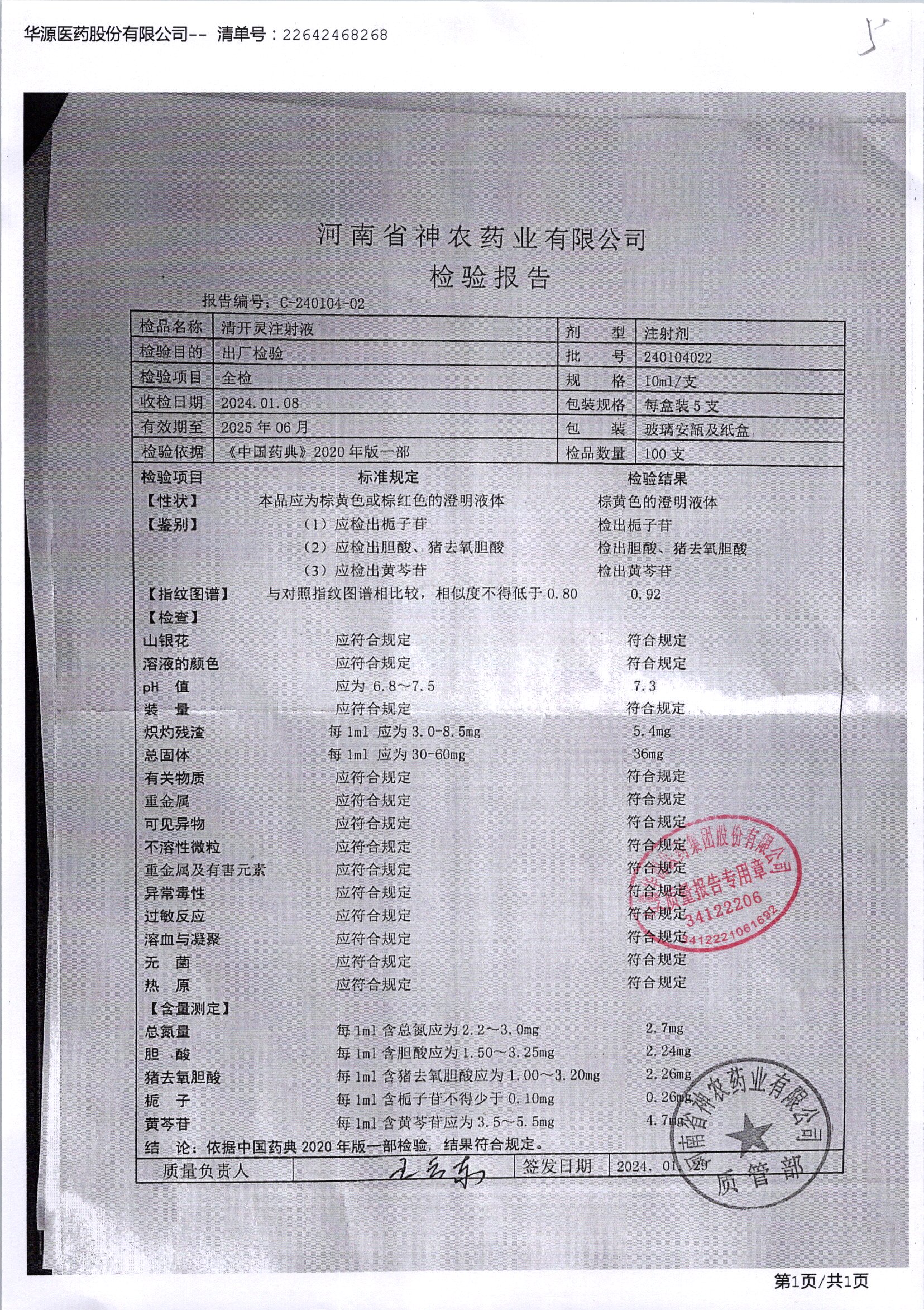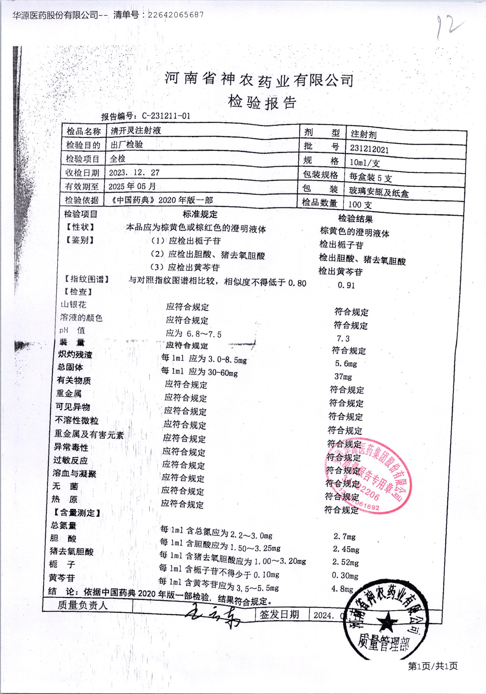 | 清開靈注射液 | 10ml*5支 | 231212021 | 查看詳情 |
