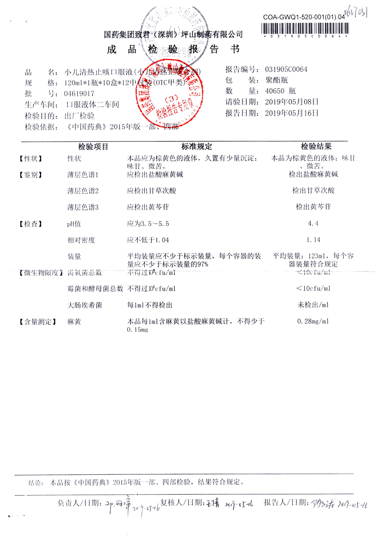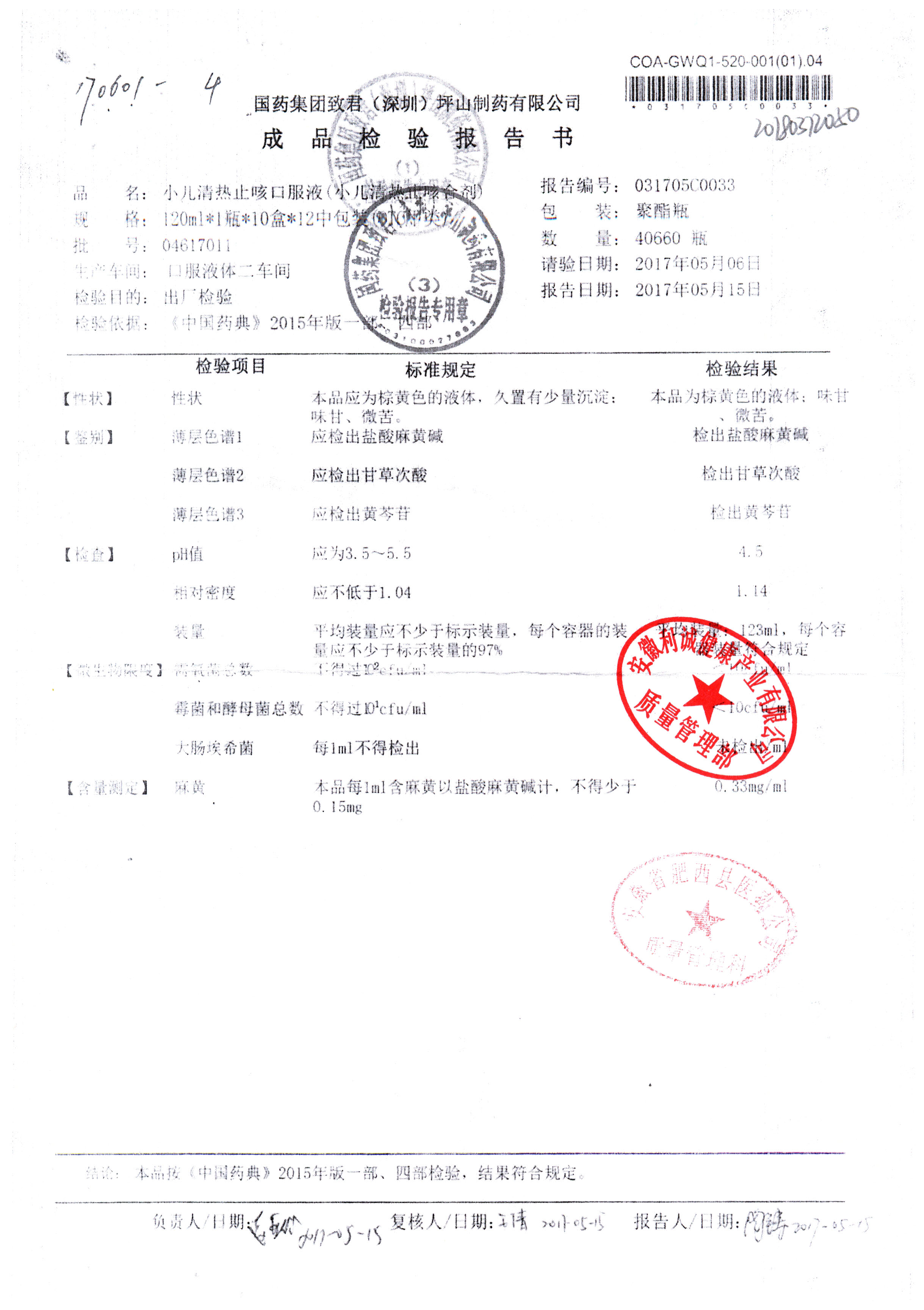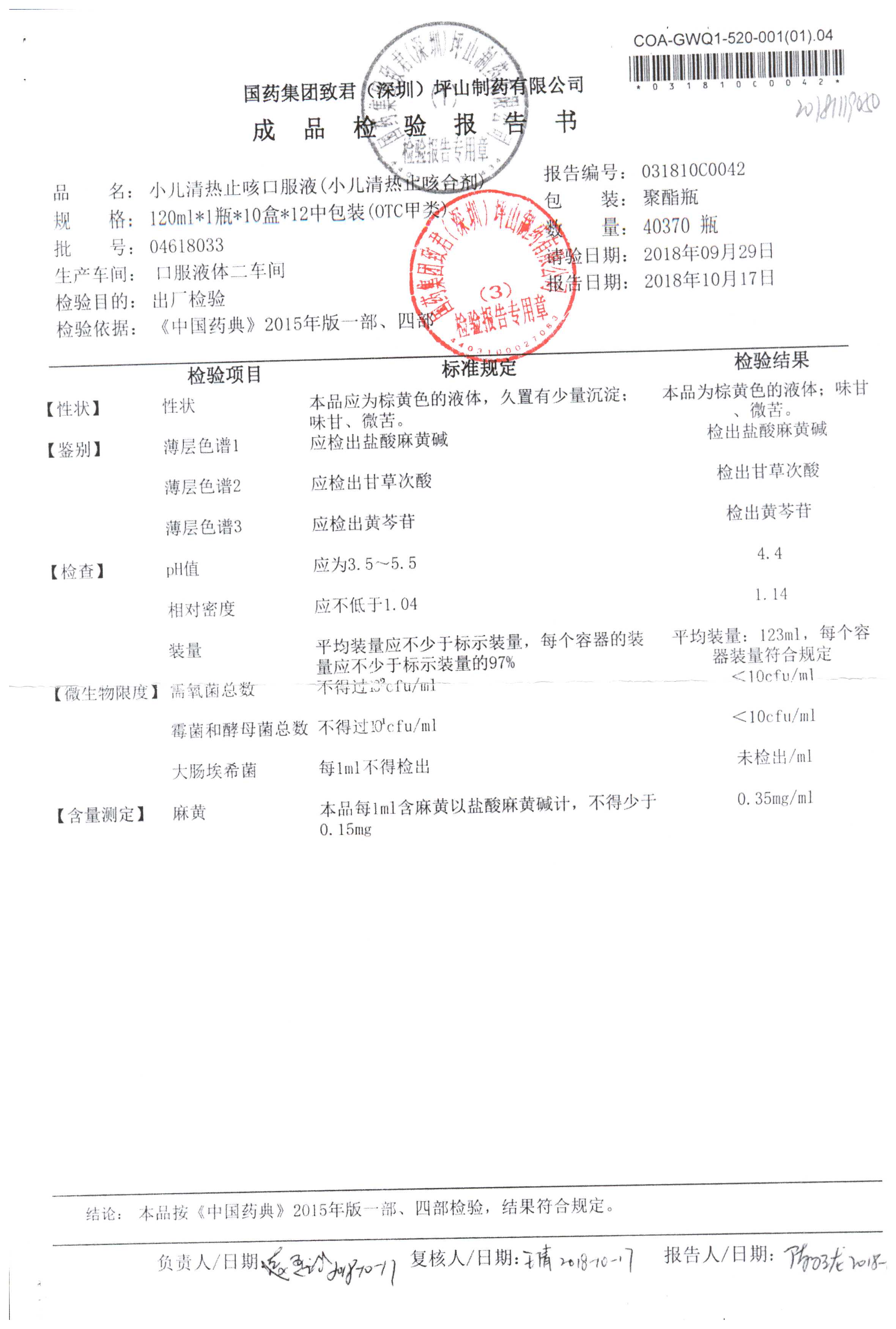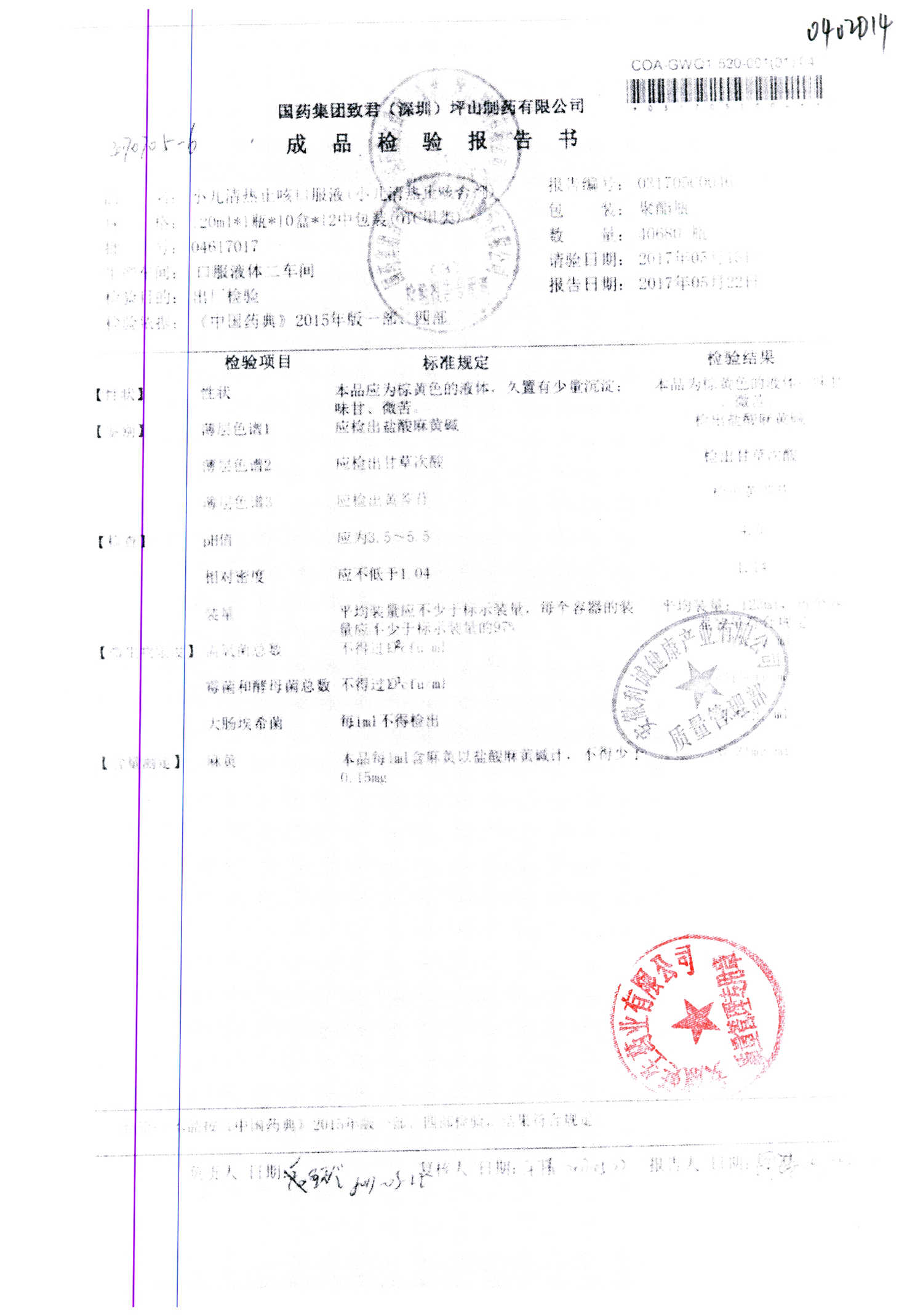 | 小兒清熱止咳口服液 | 120ml | 04618033 | 查看詳情 |