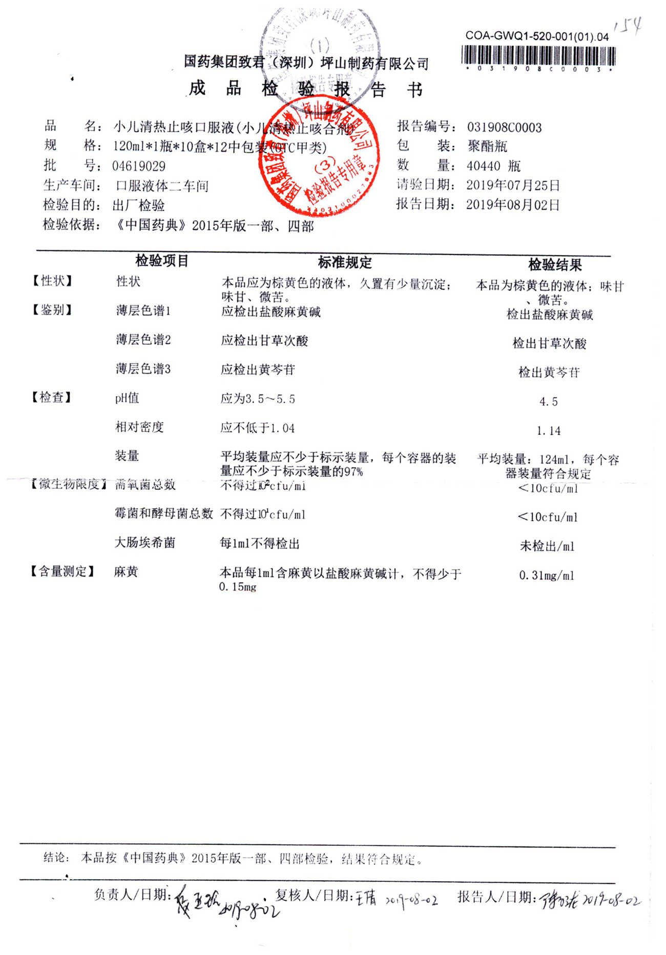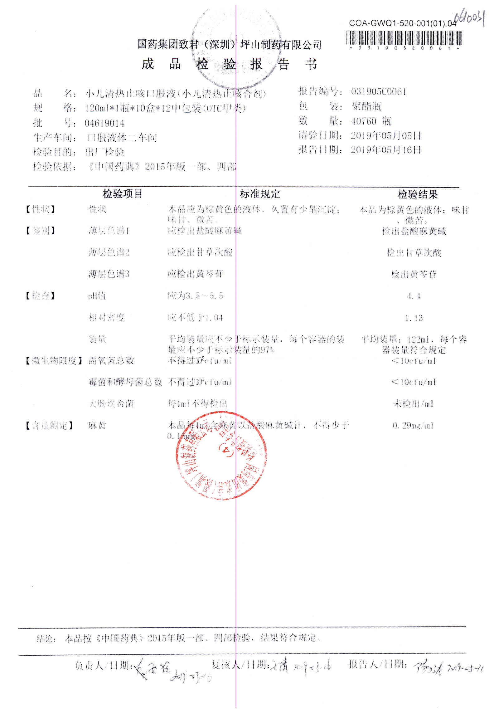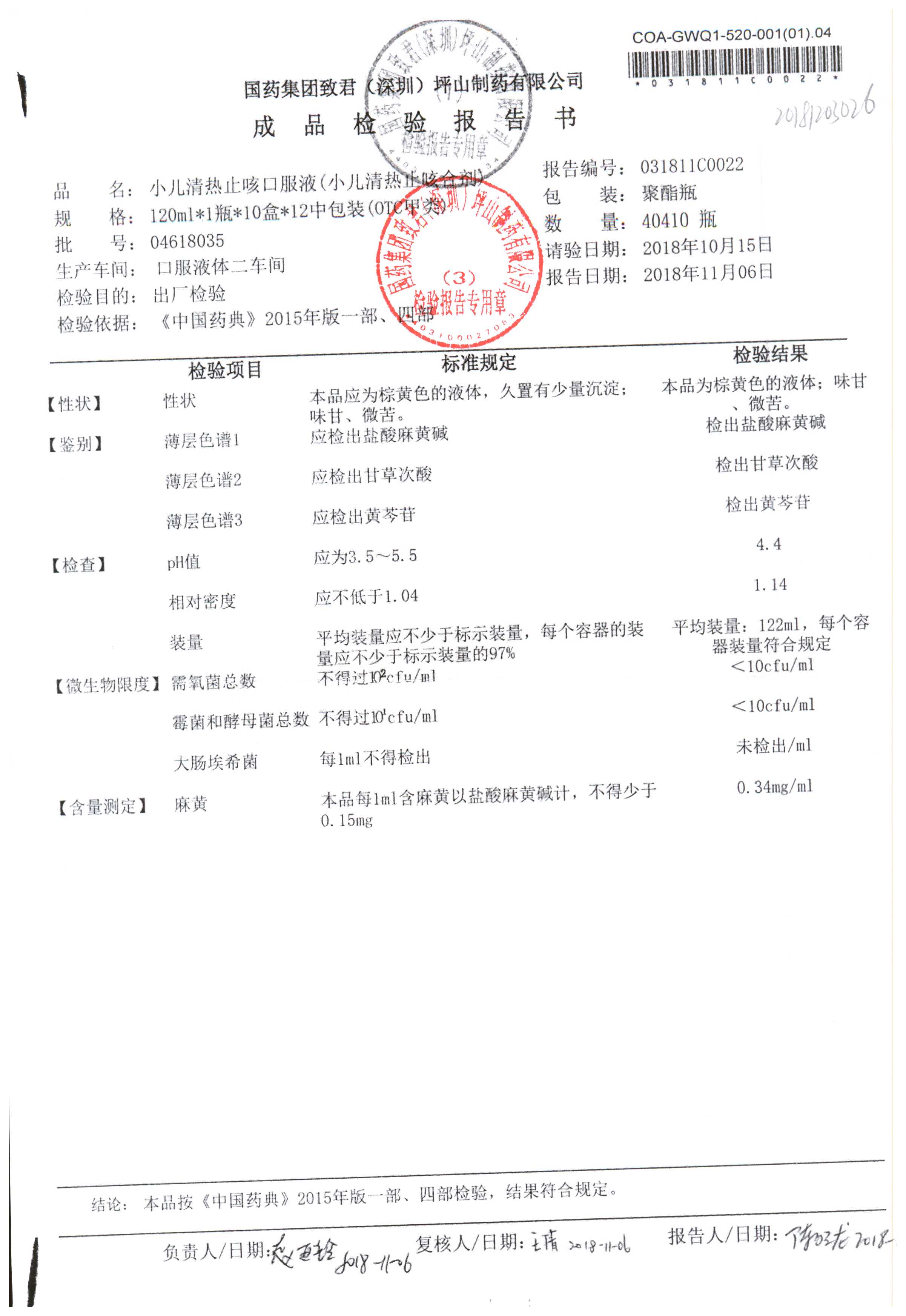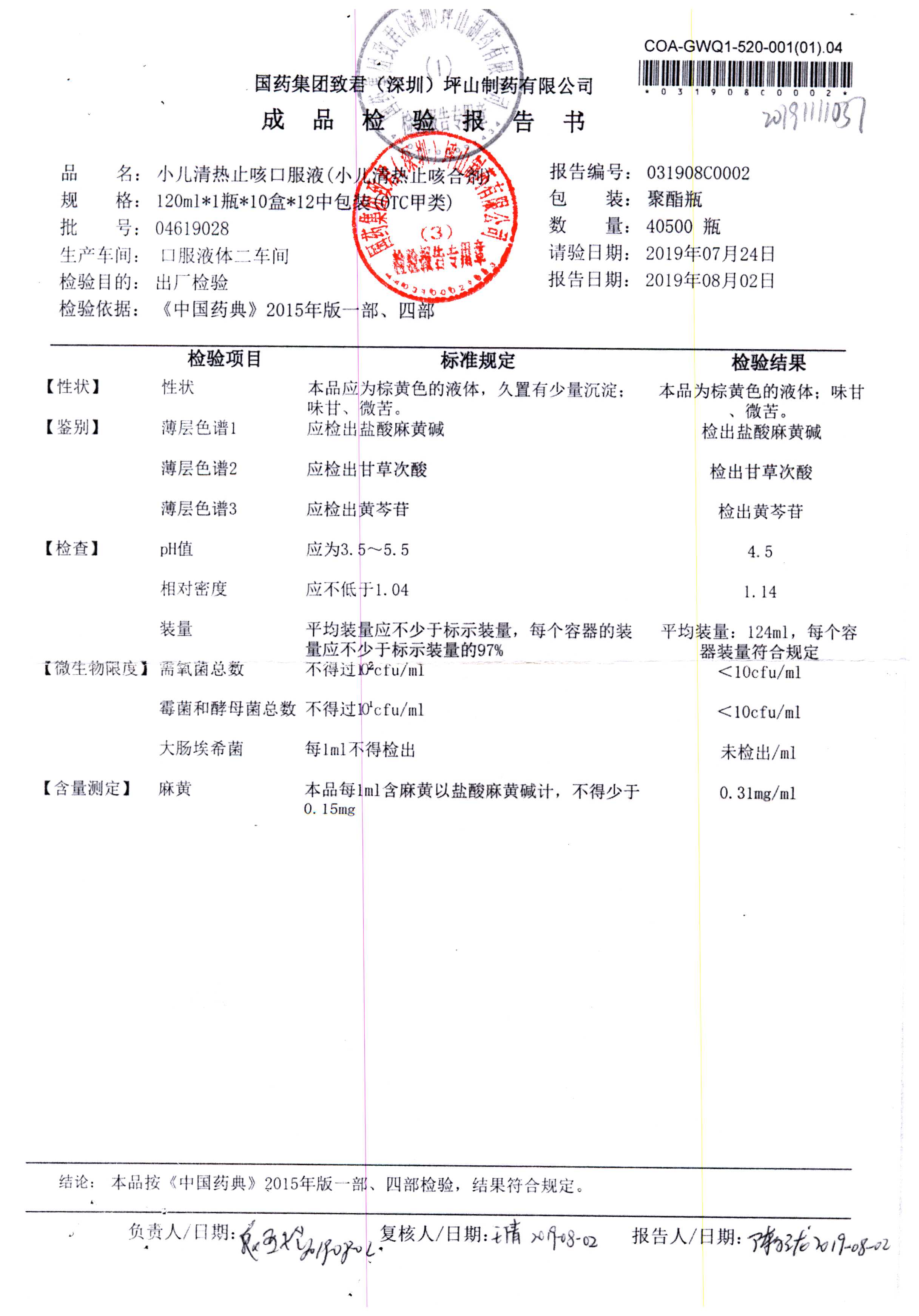 | 小兒清熱止咳口服液 | 120ml | 04618033 | 查看詳情 |