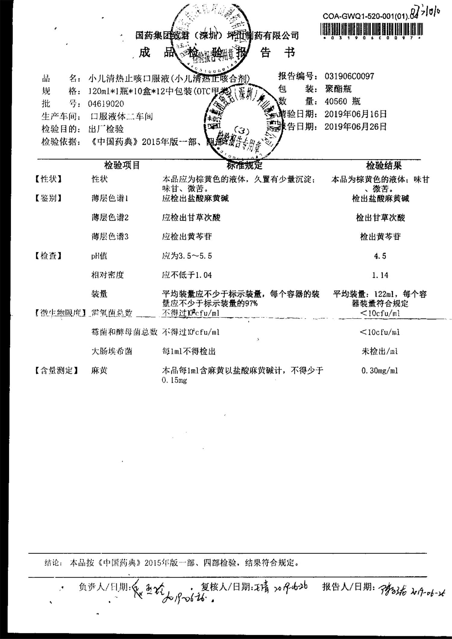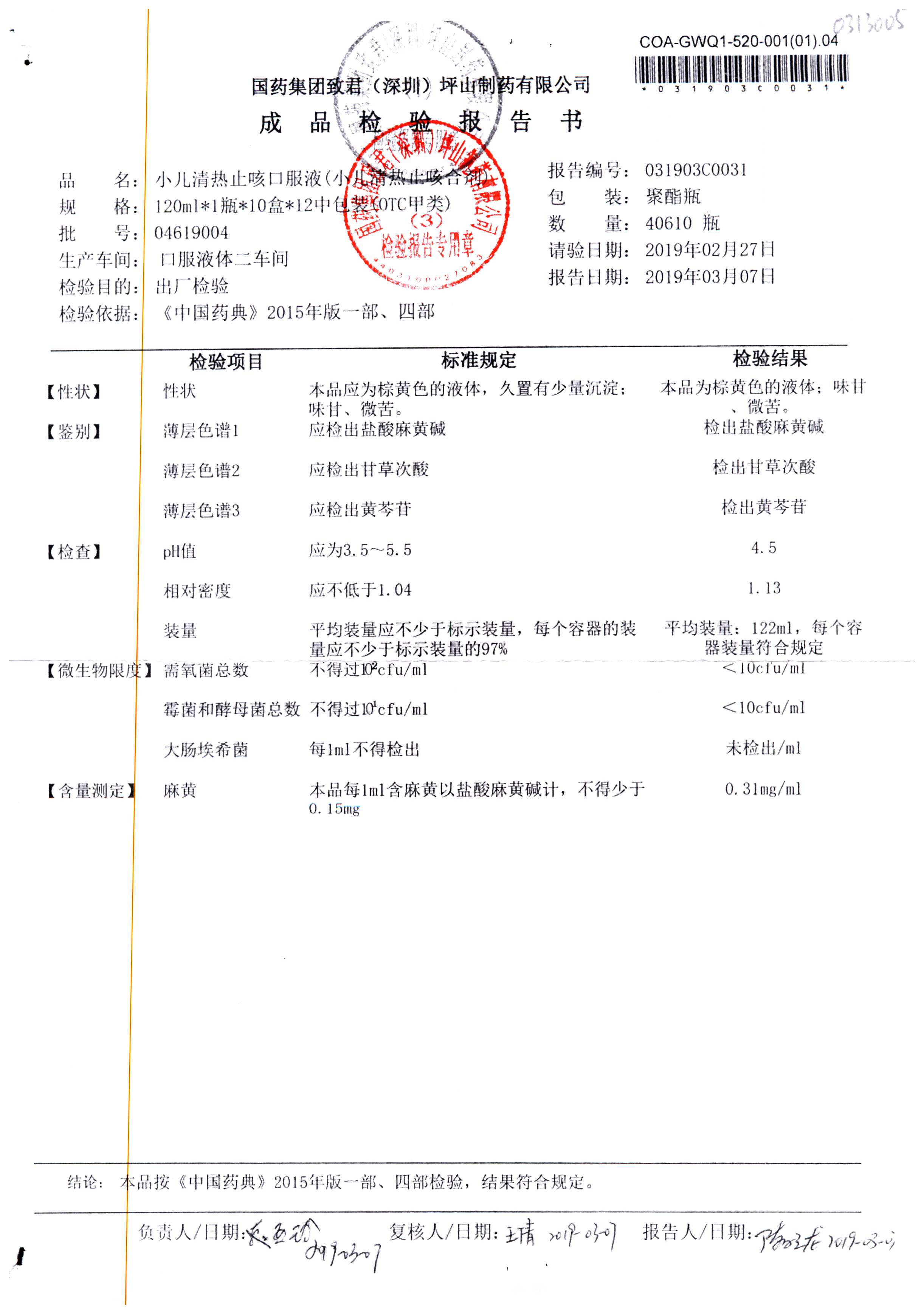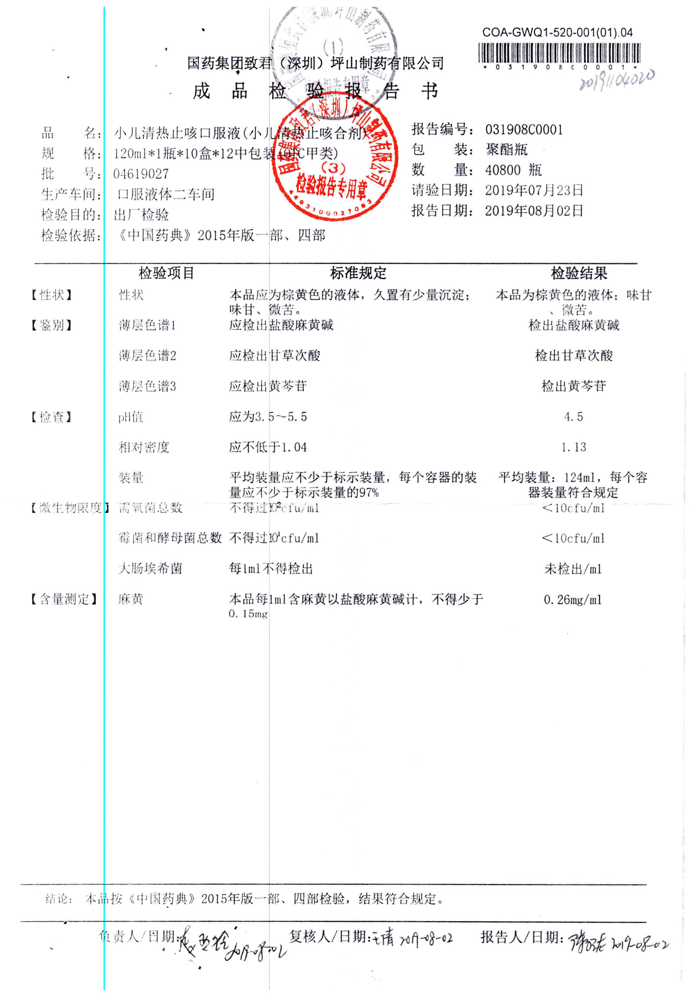 | 小兒清熱止咳口服液 | 120ml | 04618036 | 查看詳情 |