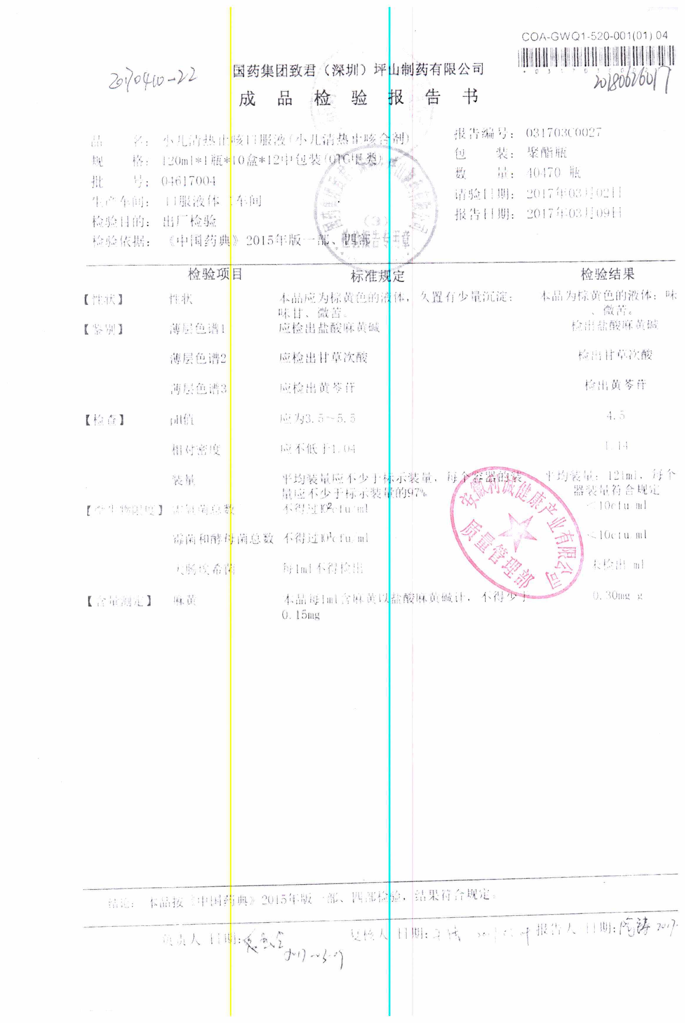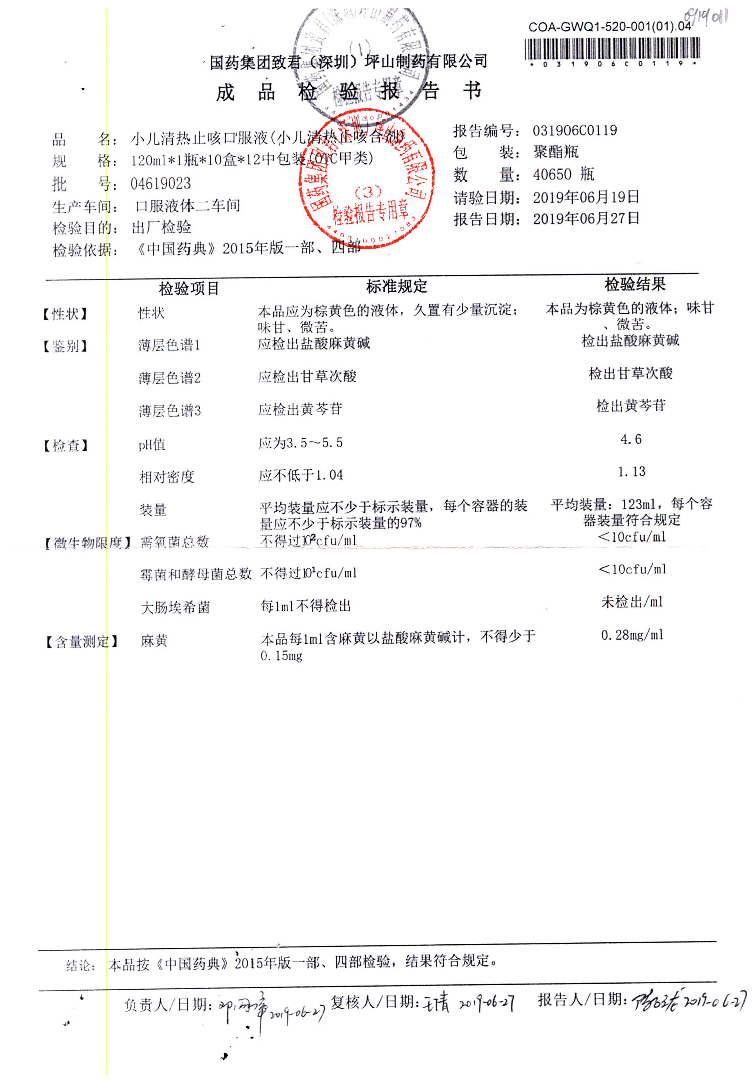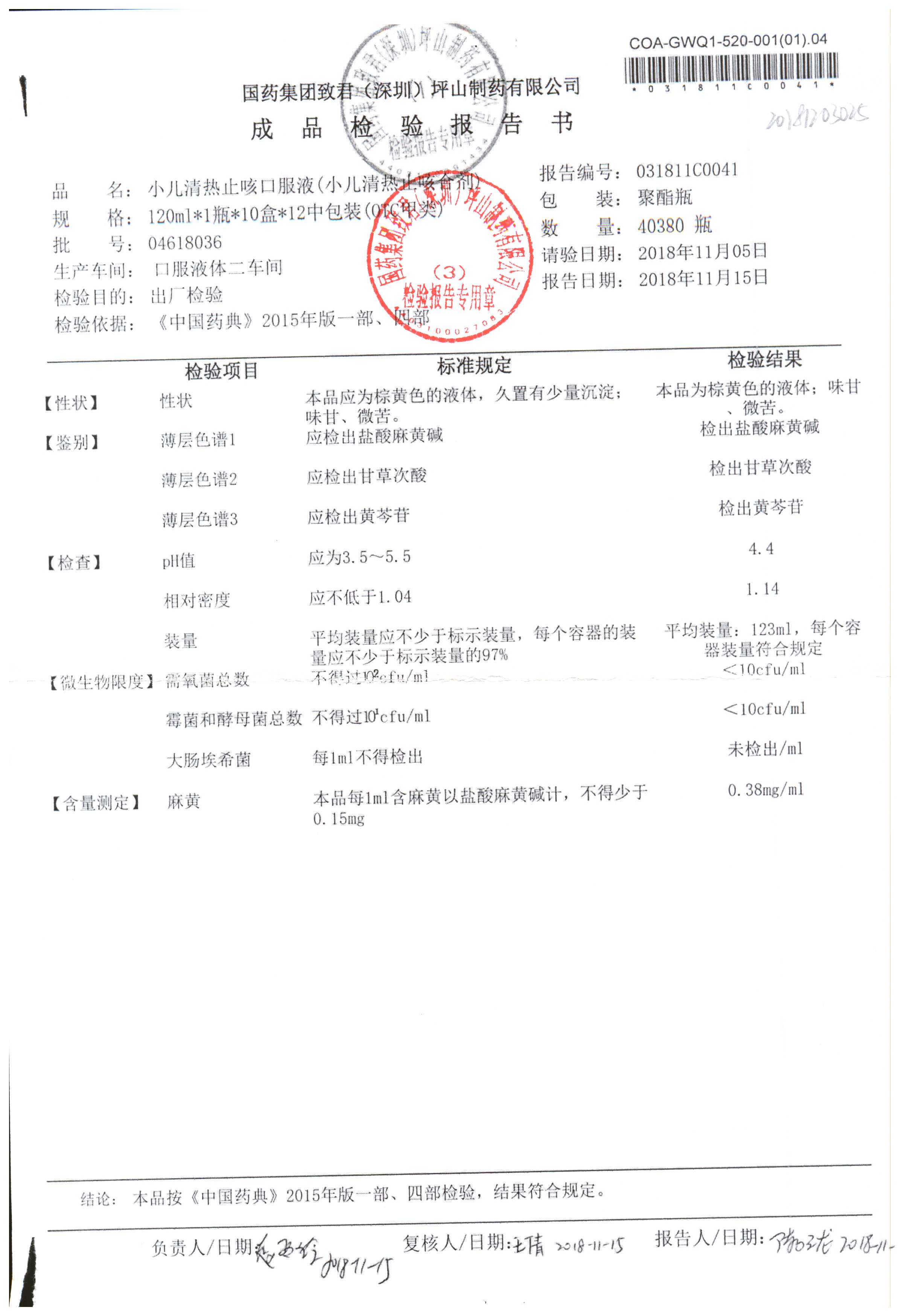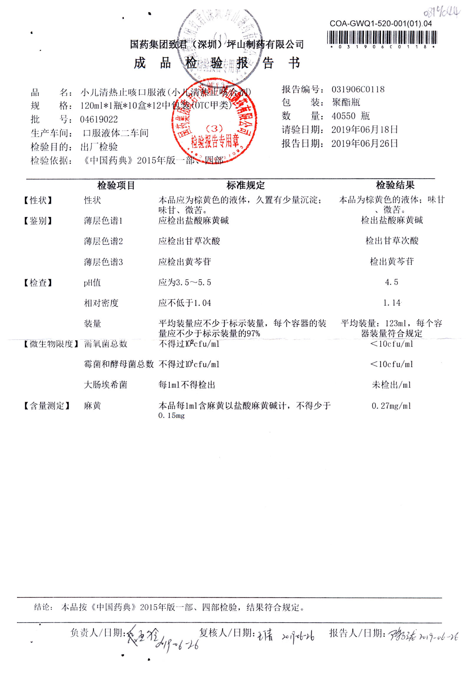 | 小兒清熱止咳口服液 | 120ml | 04618036 | 查看詳情 |