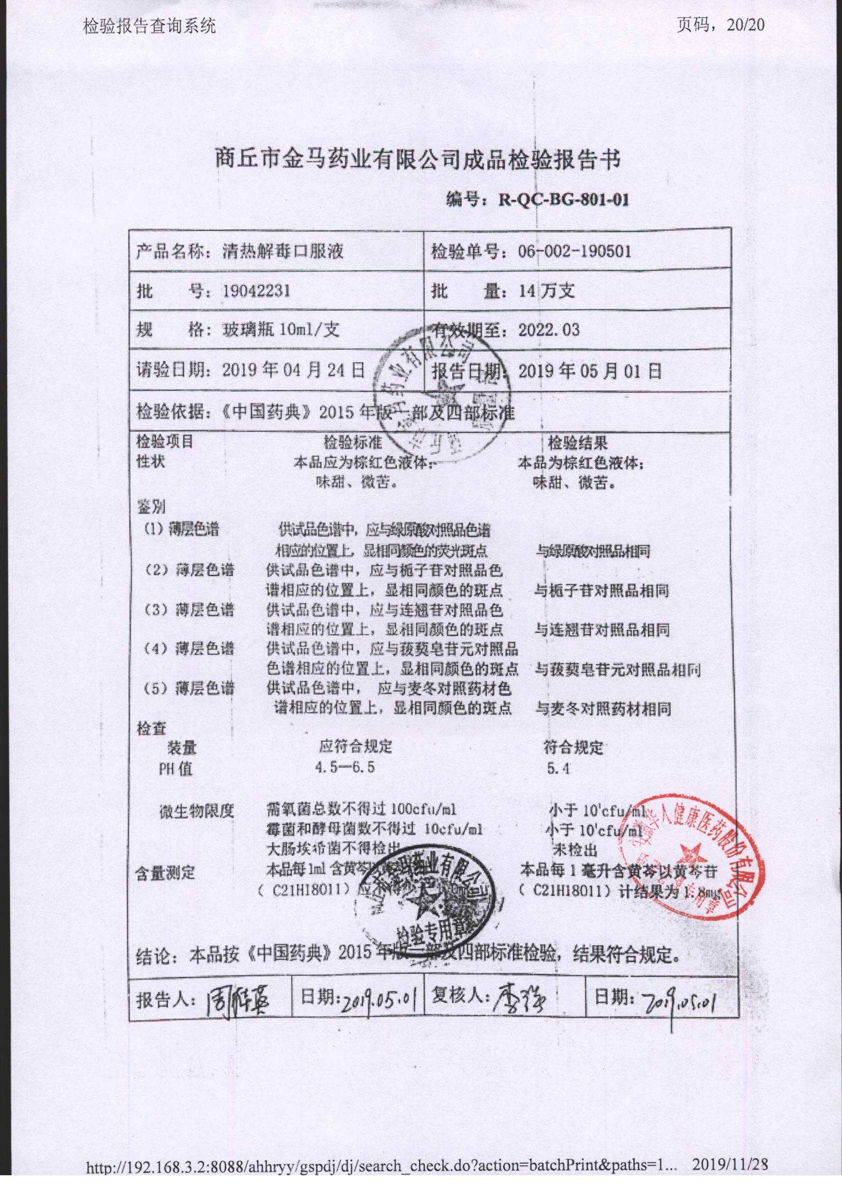 | 清熱解毒口服液 | 10ml | 19021231 | 查看詳情 |