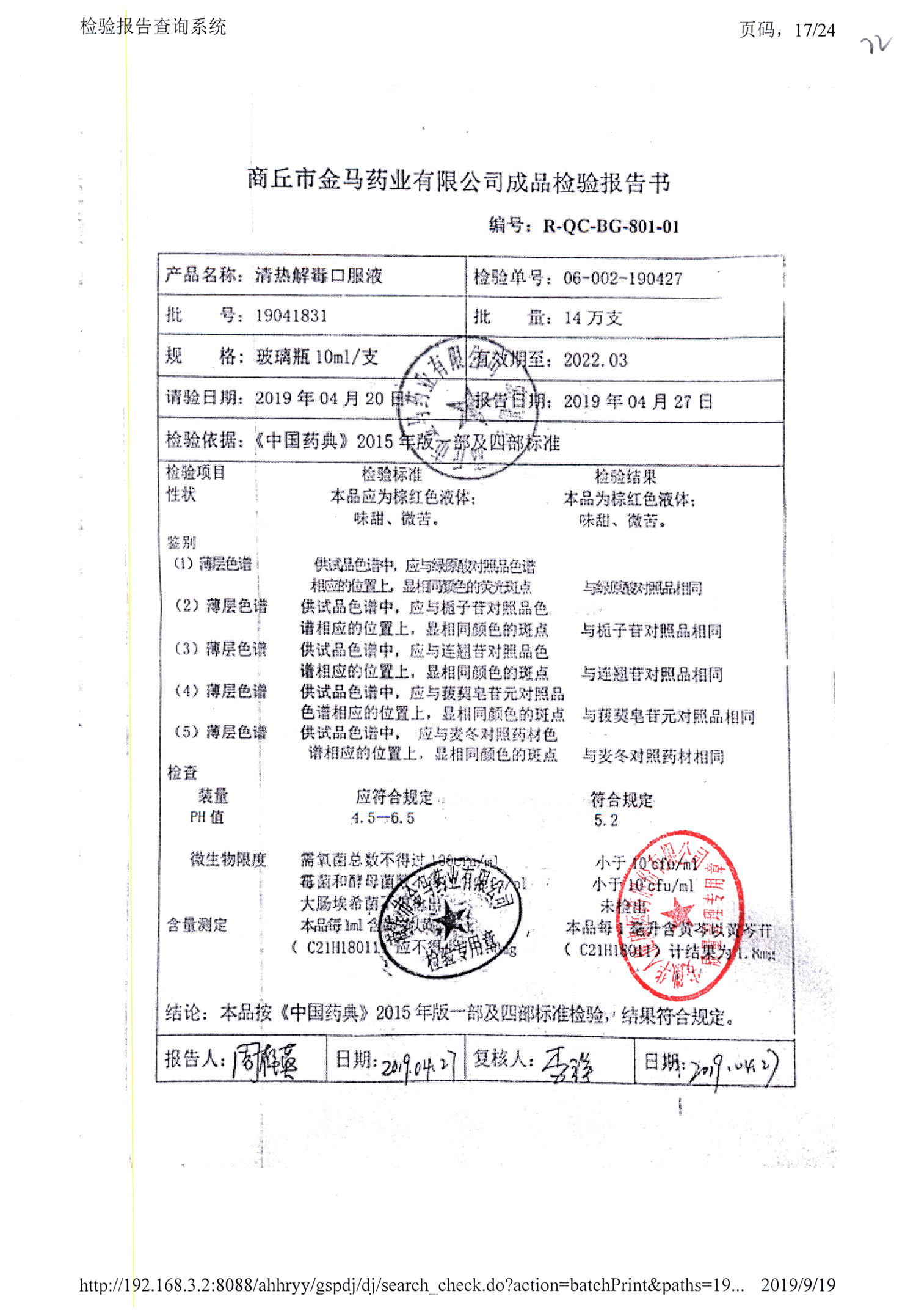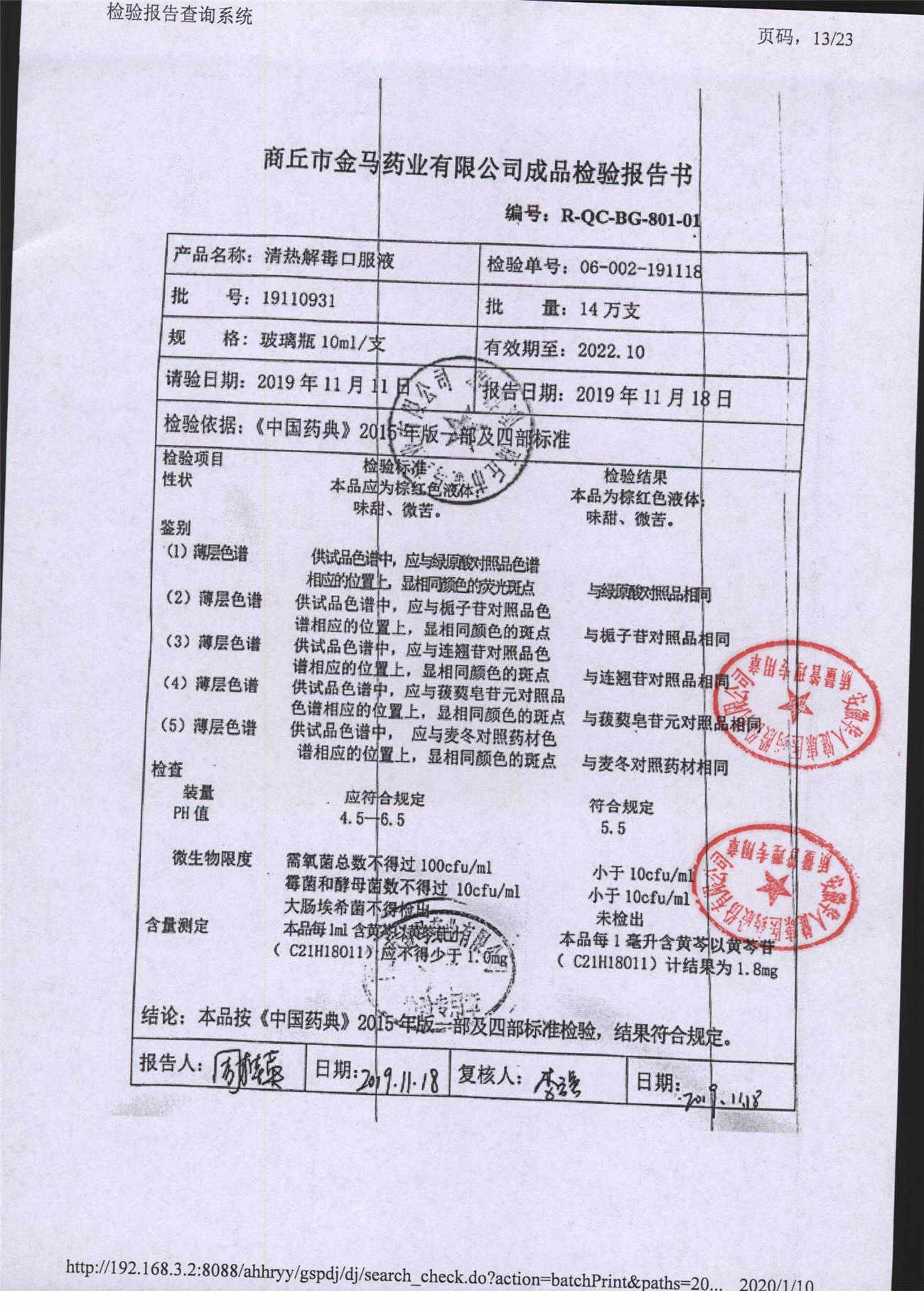 | 清熱解毒口服液 | 10ml | 19110831 | 查看詳情 |