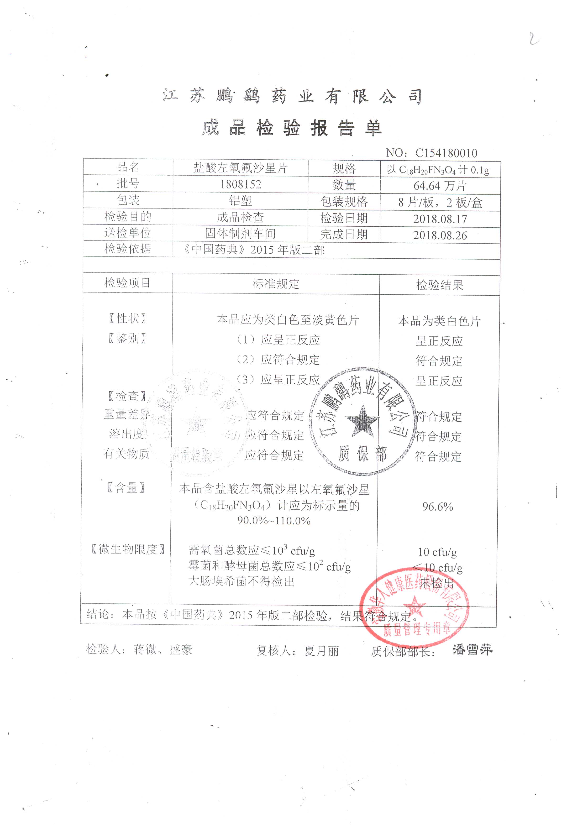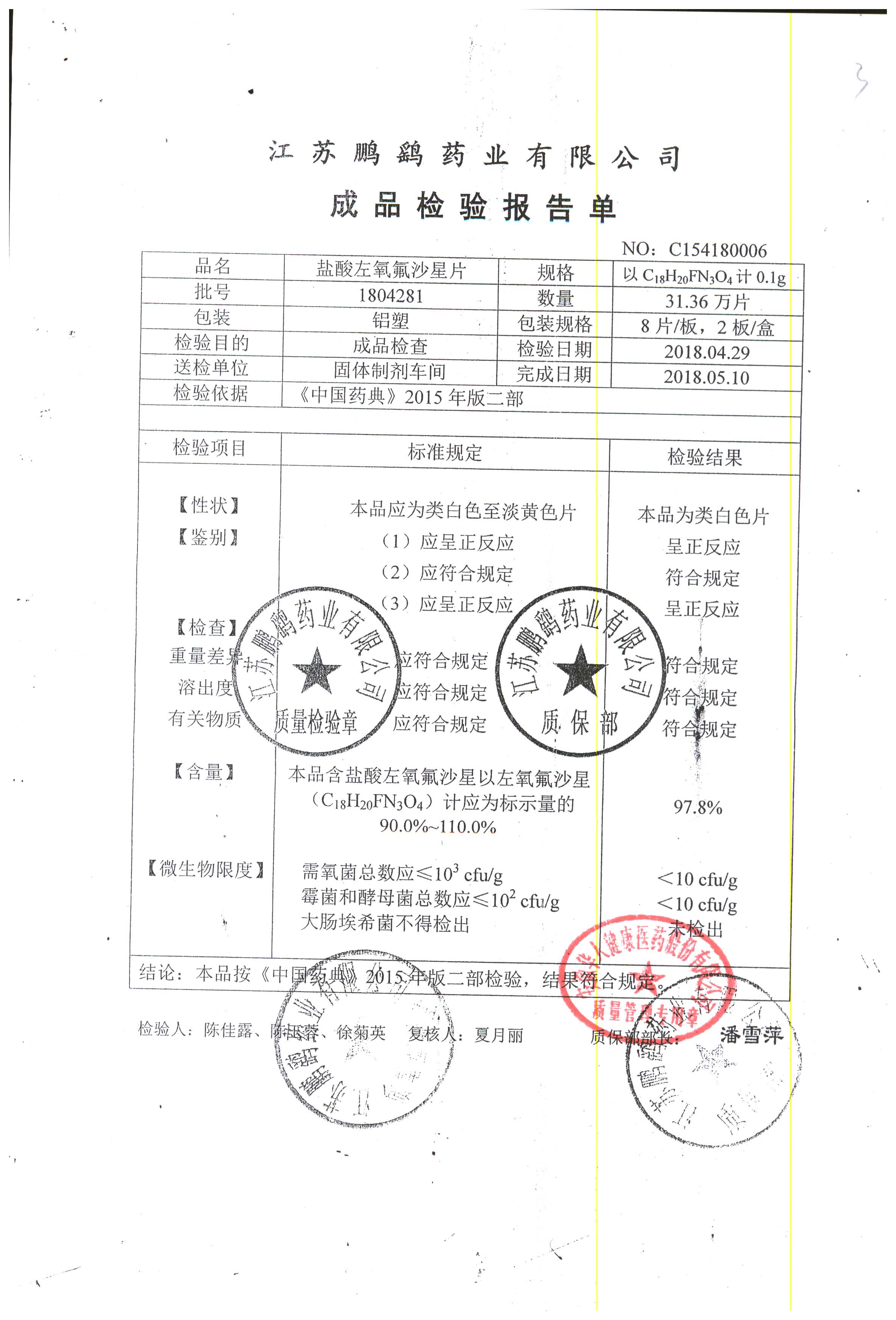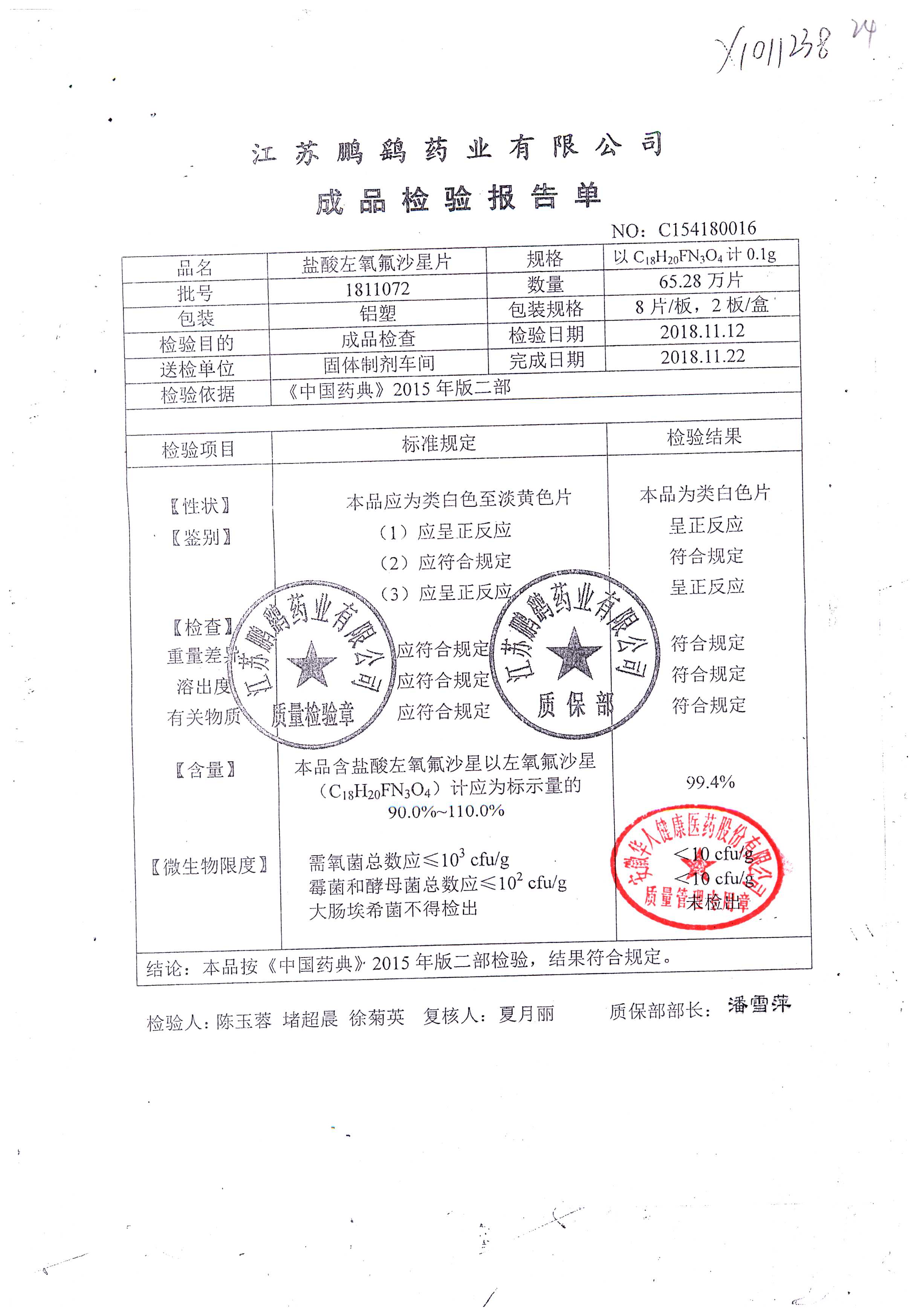 | 鹽酸左氧氟沙星片 | 16s | 1804021 | 查看詳情 |