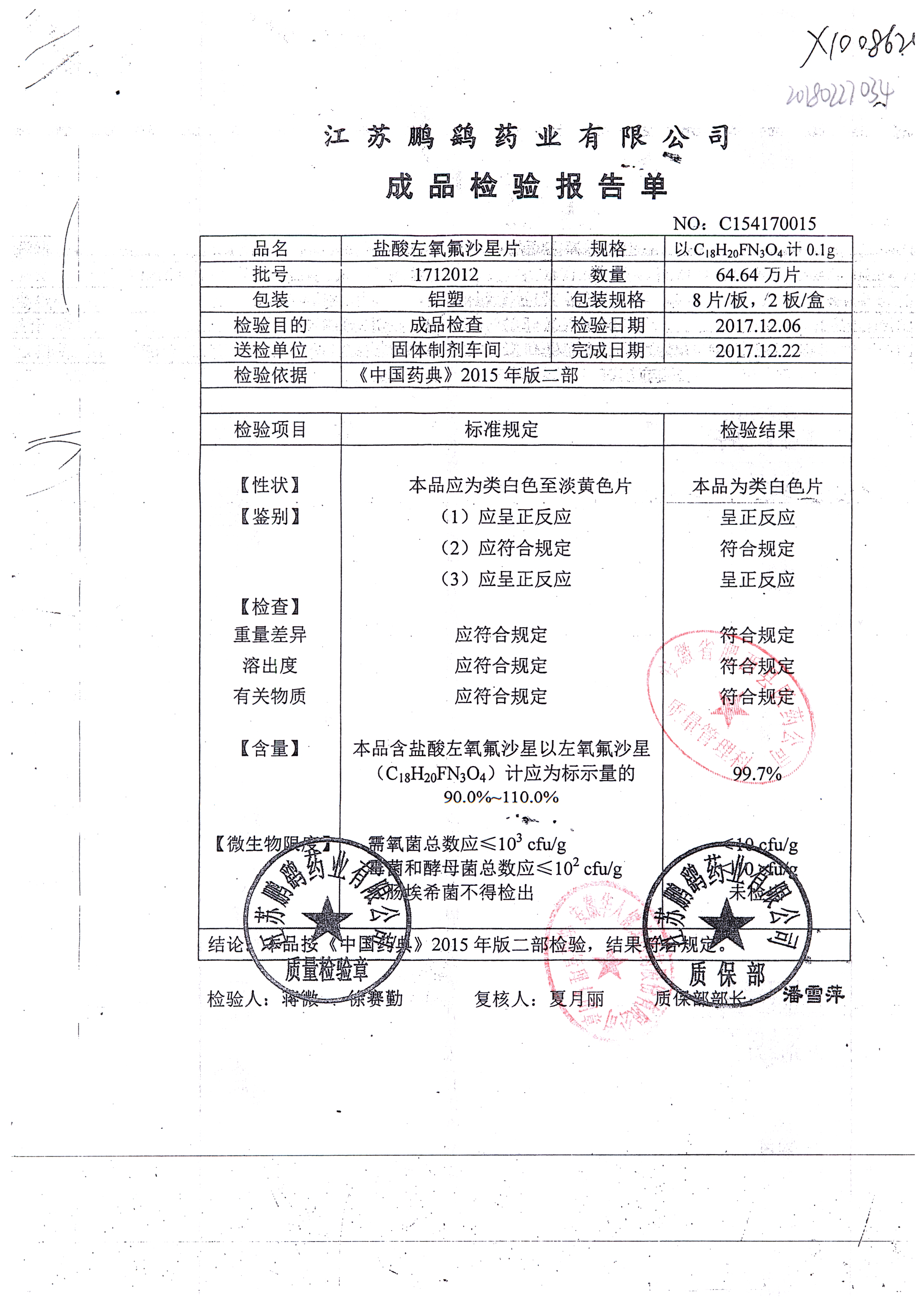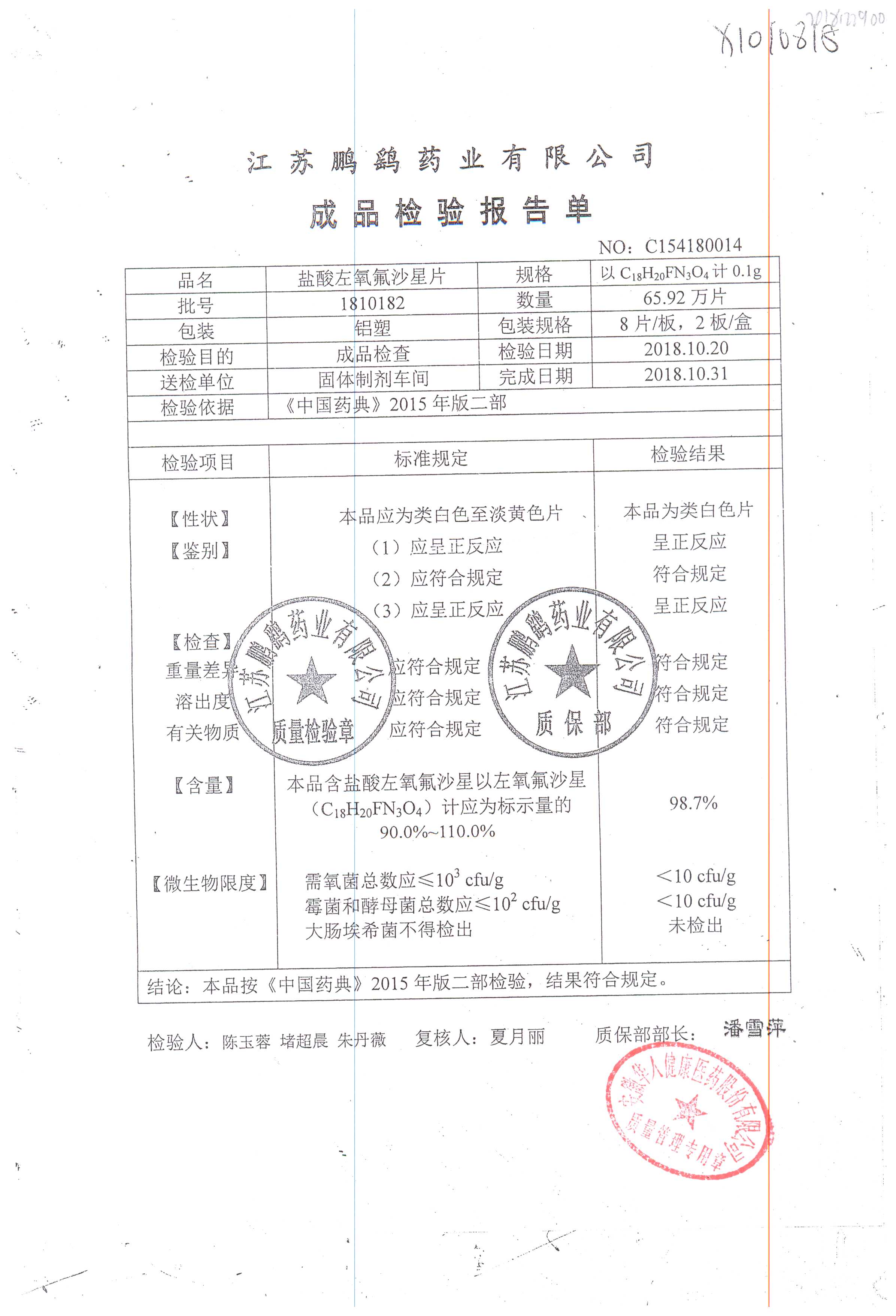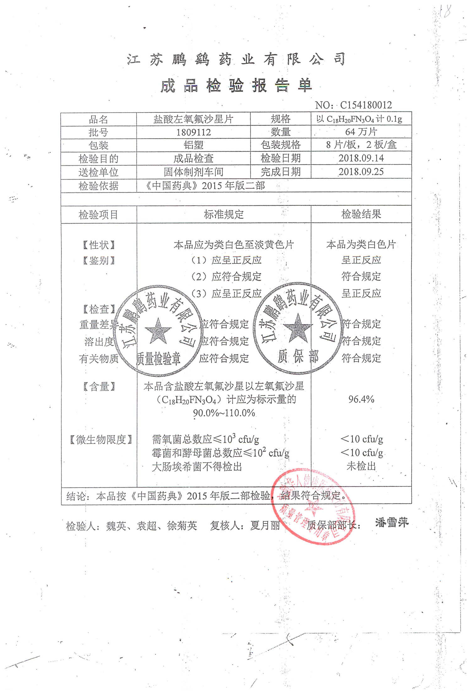 | 鹽酸左氧氟沙星片 | 16s | 1804021 | 查看詳情 |