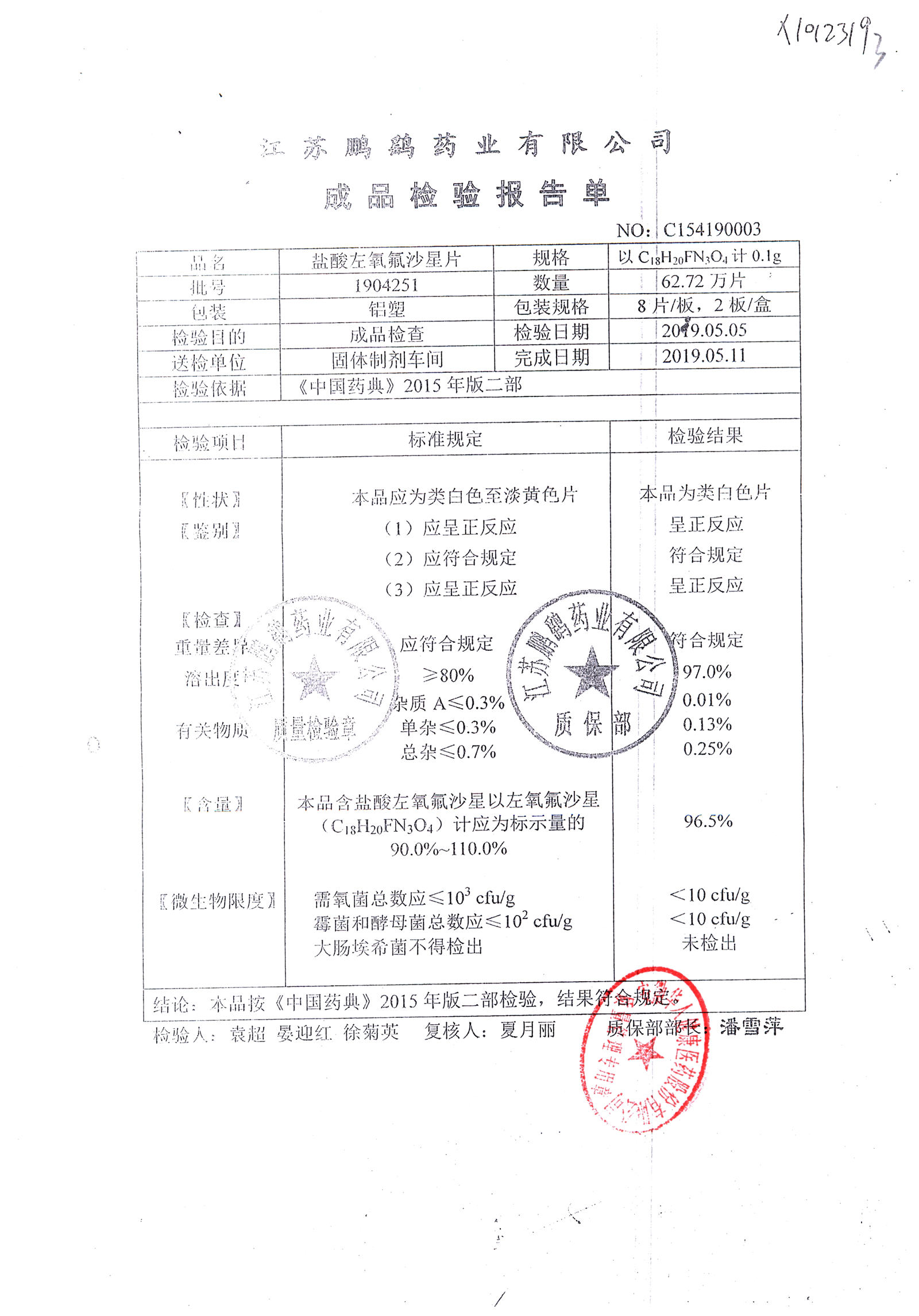 | 鹽酸左氧氟沙星片 | 16s | 1902201 | 查看詳情 |