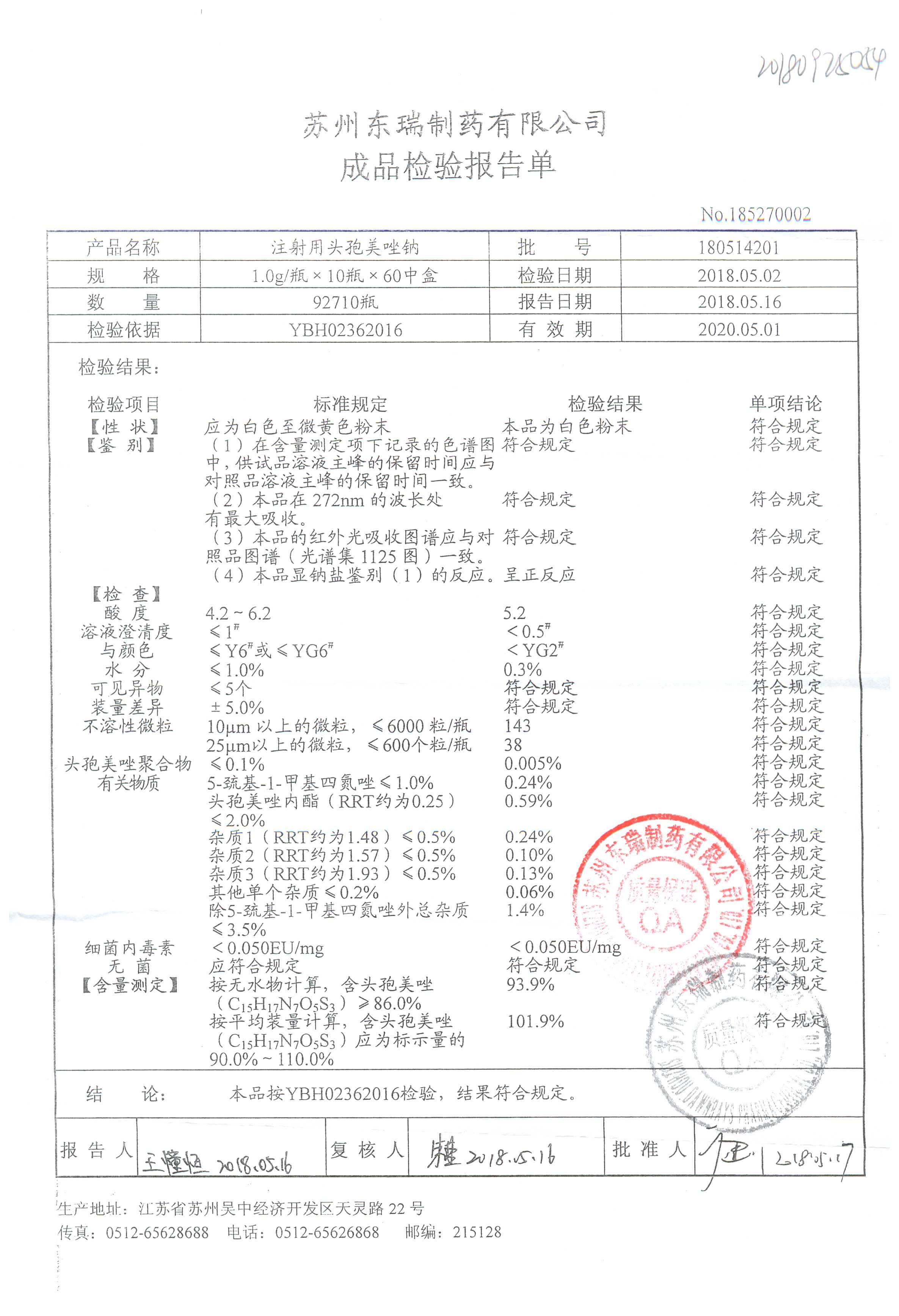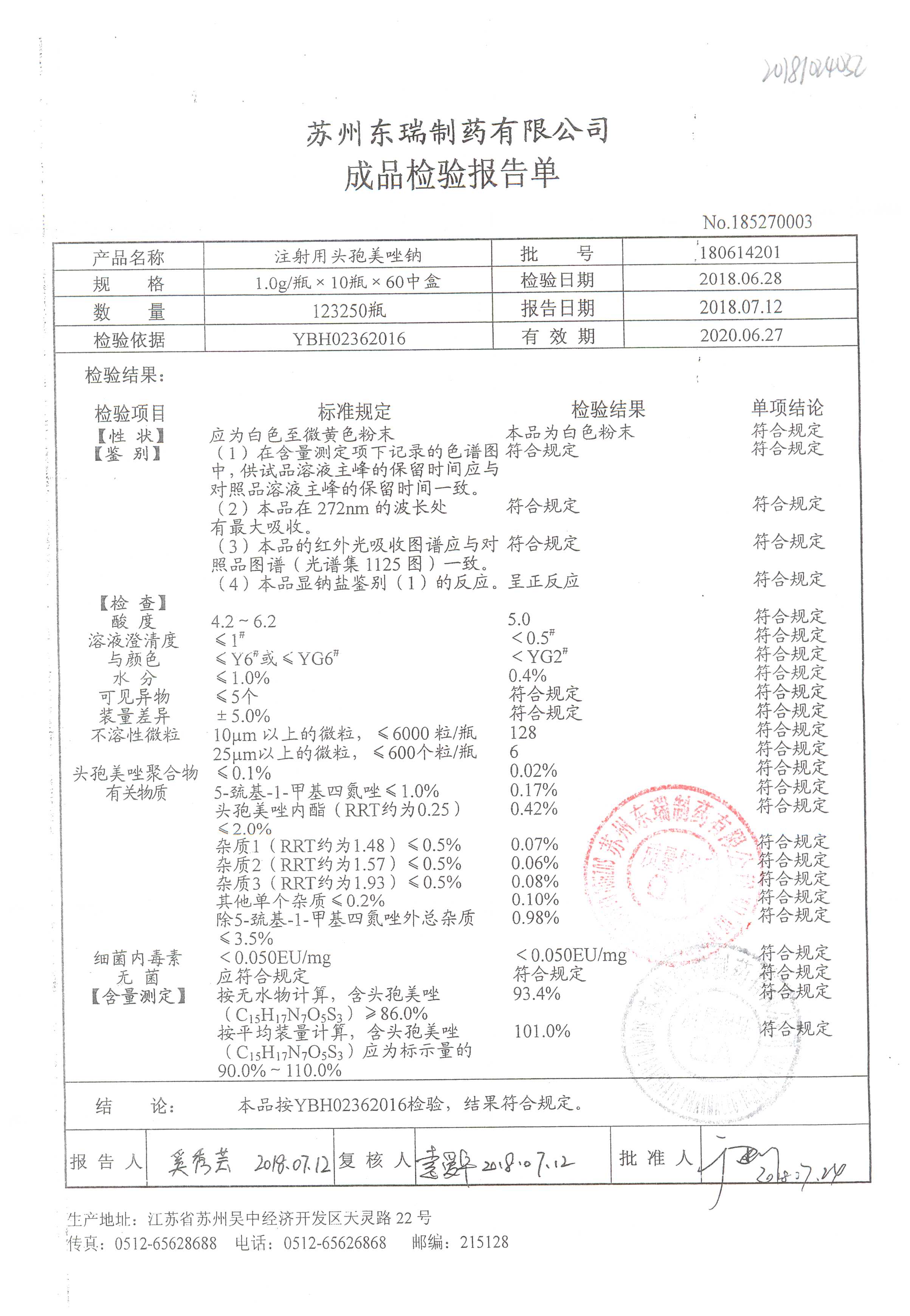 注射用頭孢美唑鈉 1g*10*60 180514201 查看詳情
