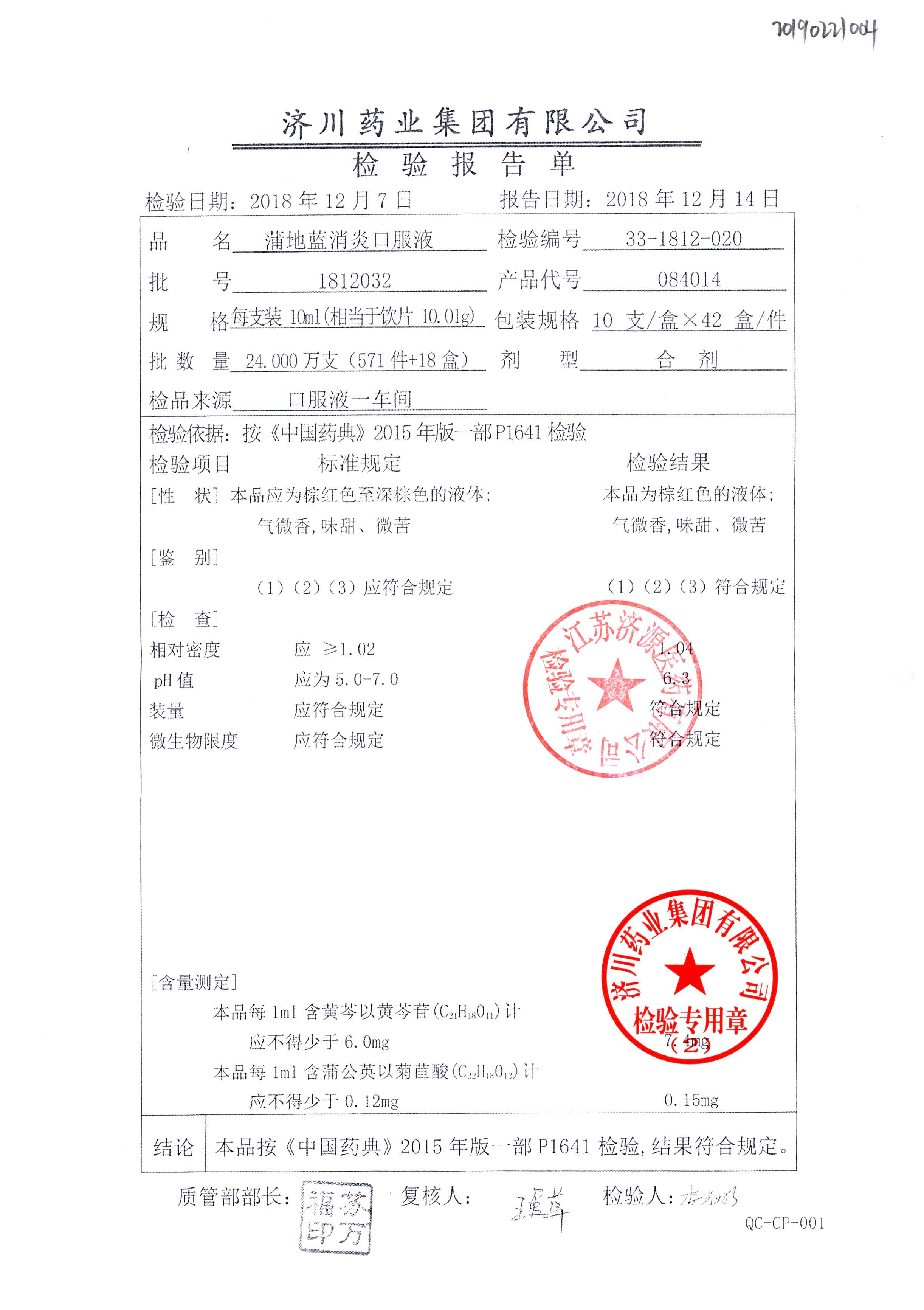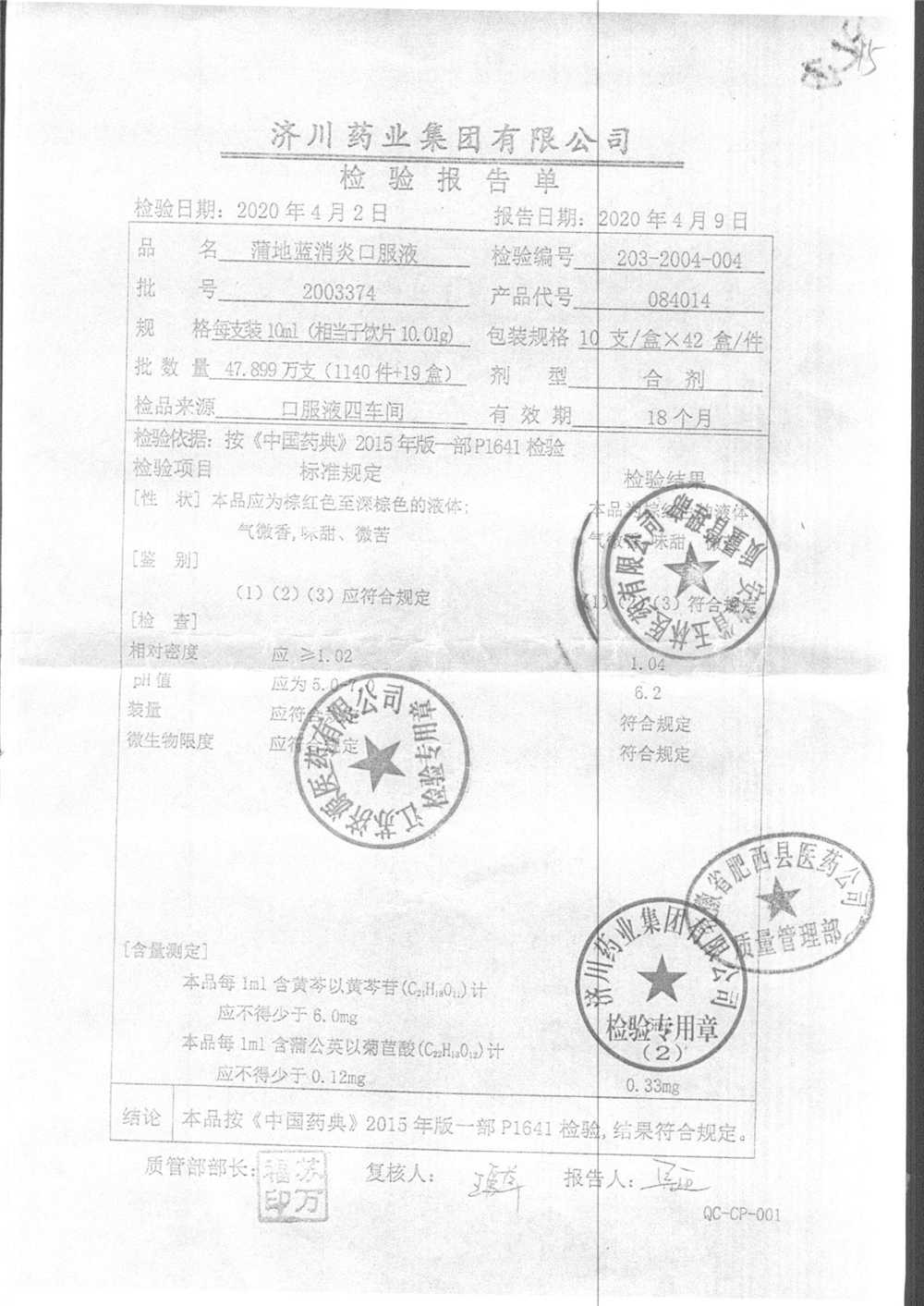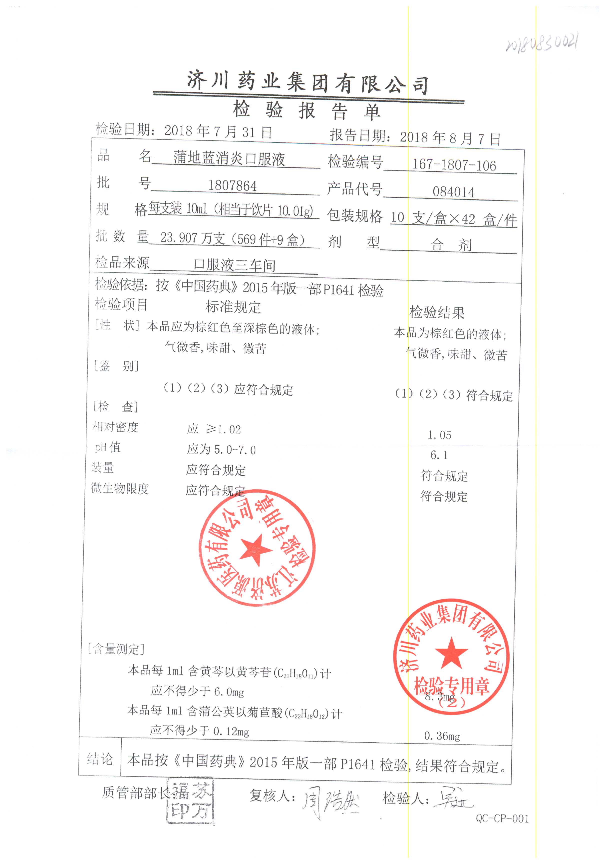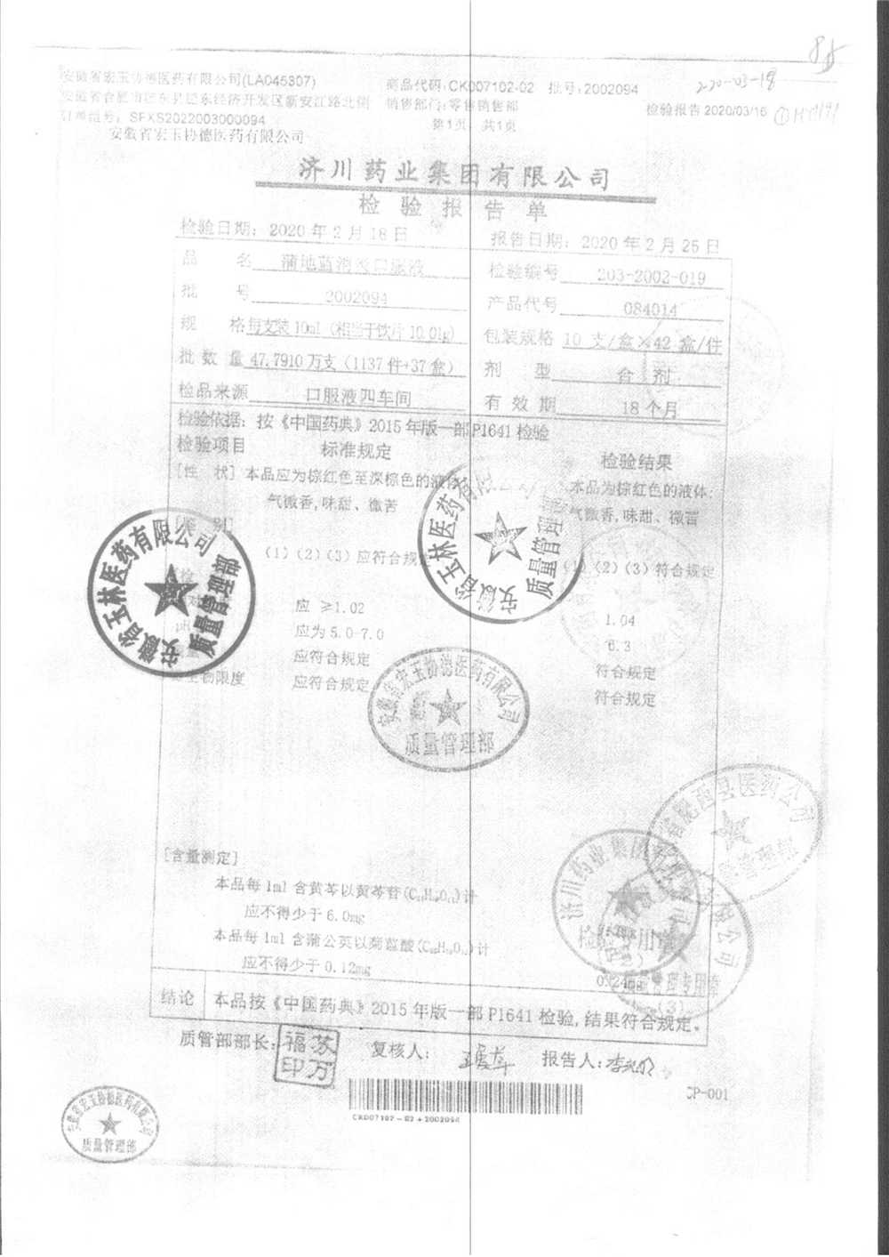 | 蒲地藍消炎口服液 | 10ml*10支 | 2010224 | 查看詳情 |