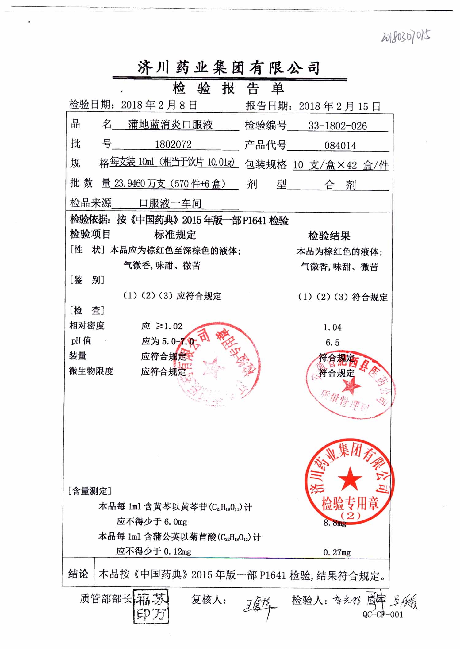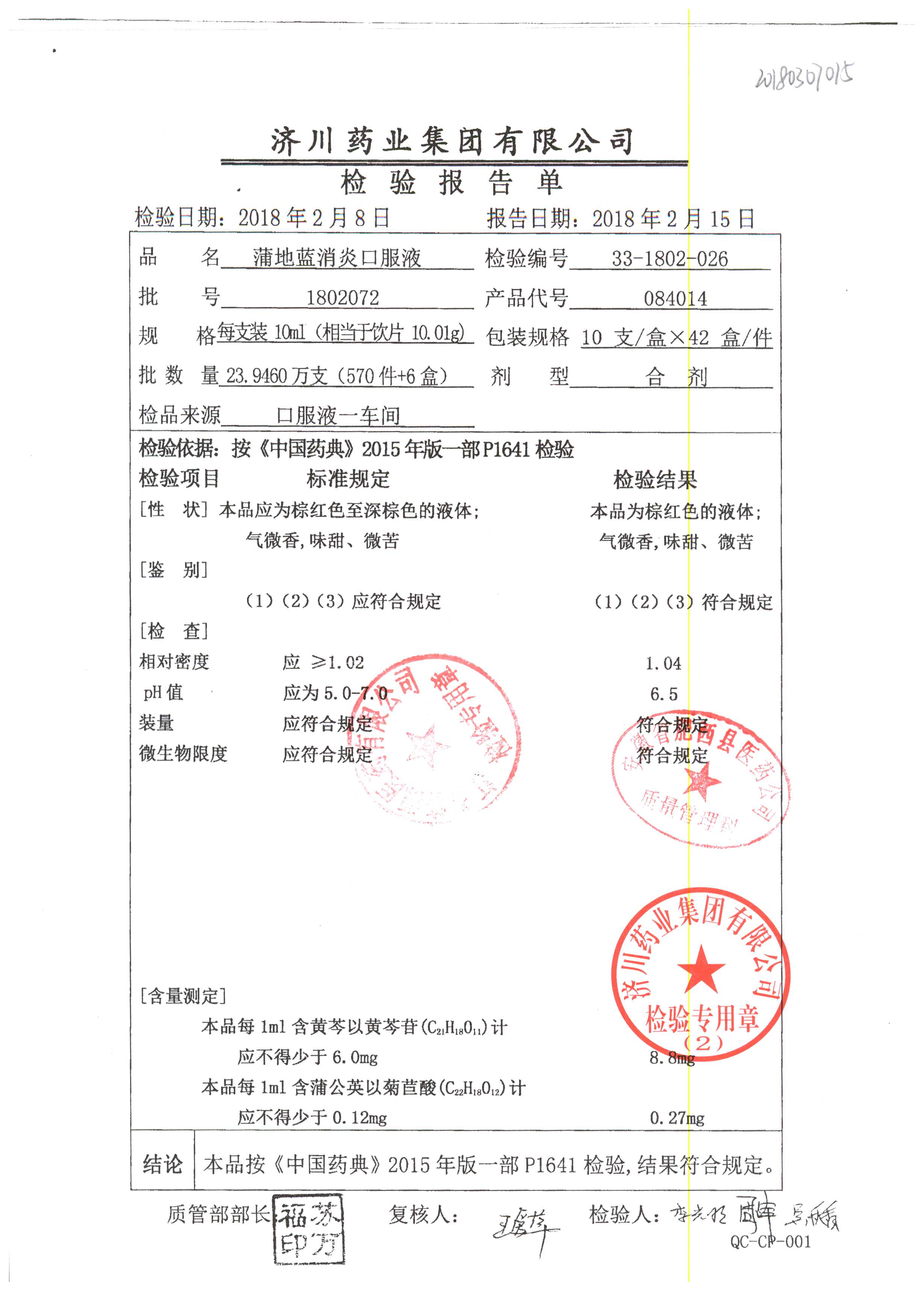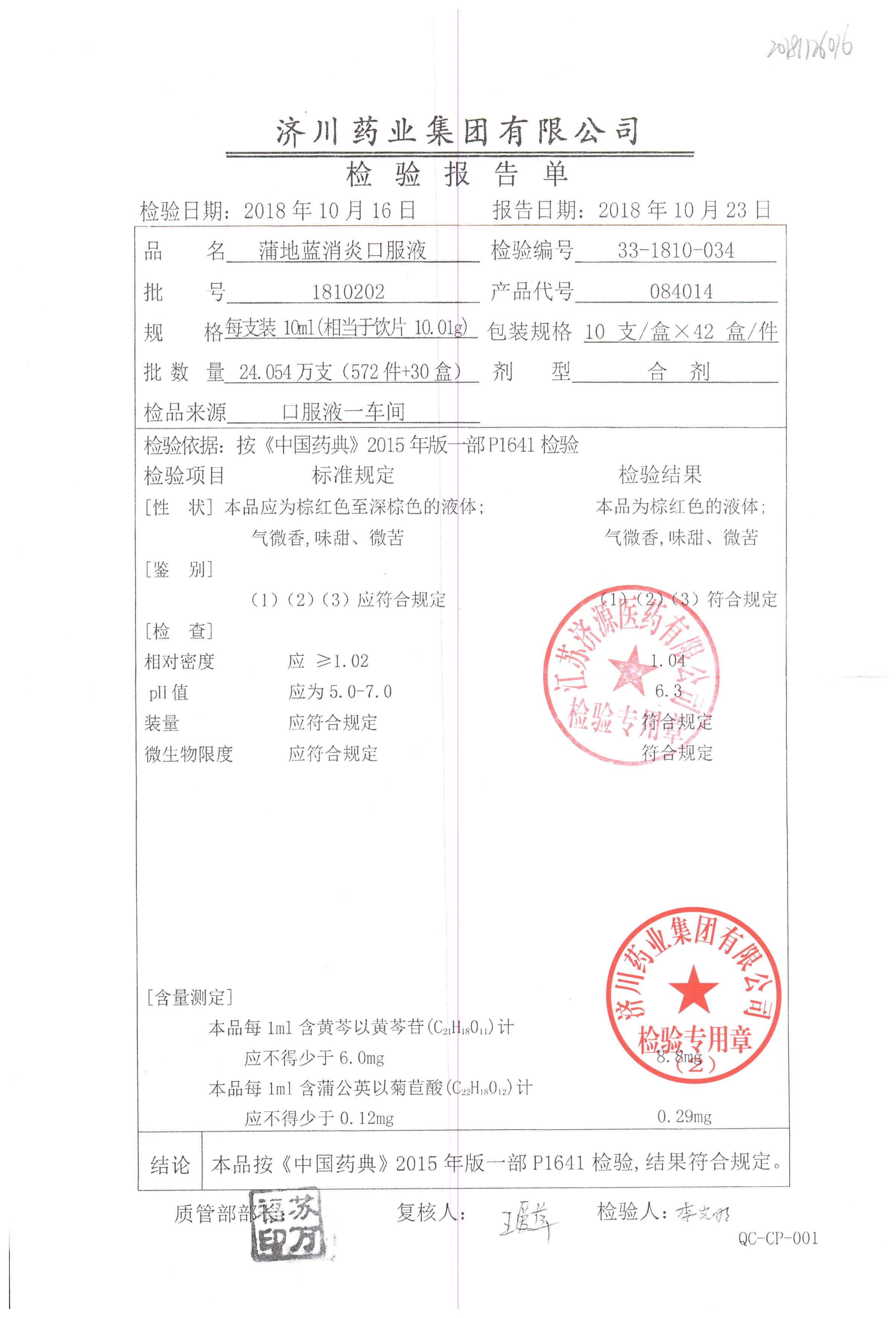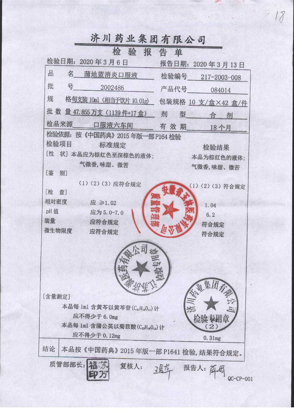 | 蒲地藍消炎口服液 | 10ml*10支 | 2010224 | 查看詳情 |