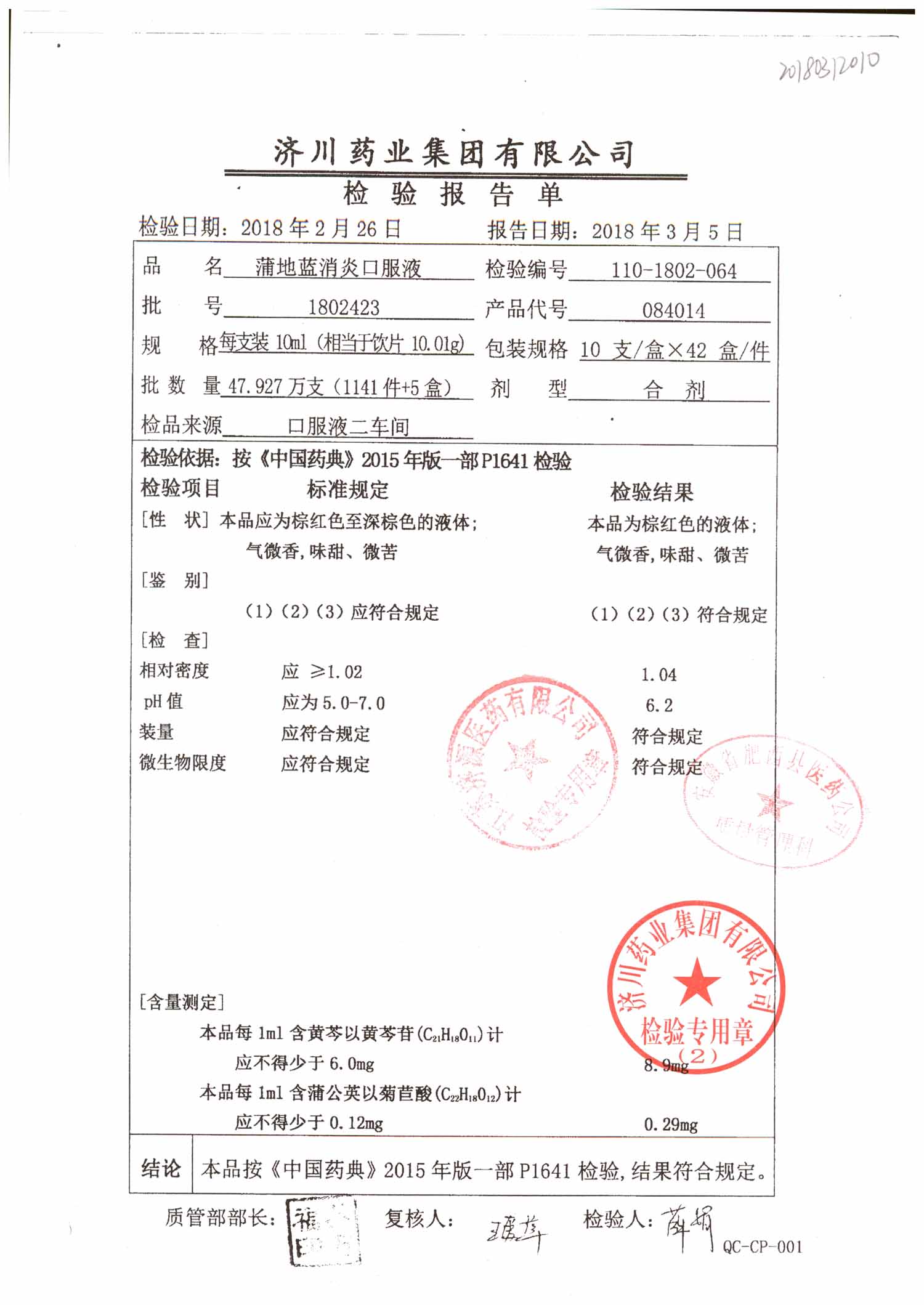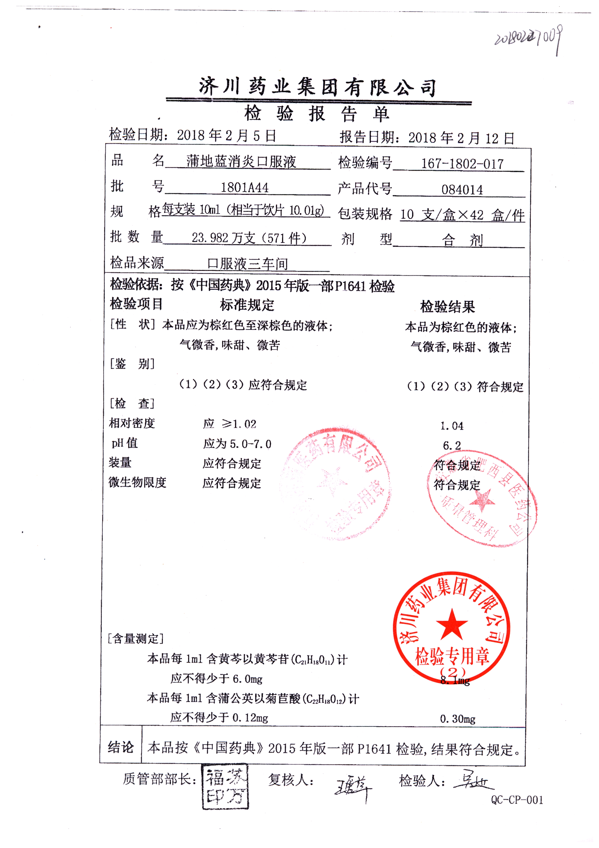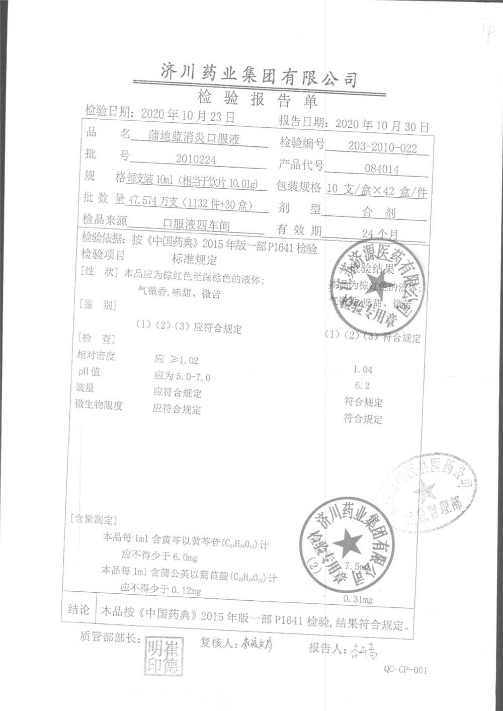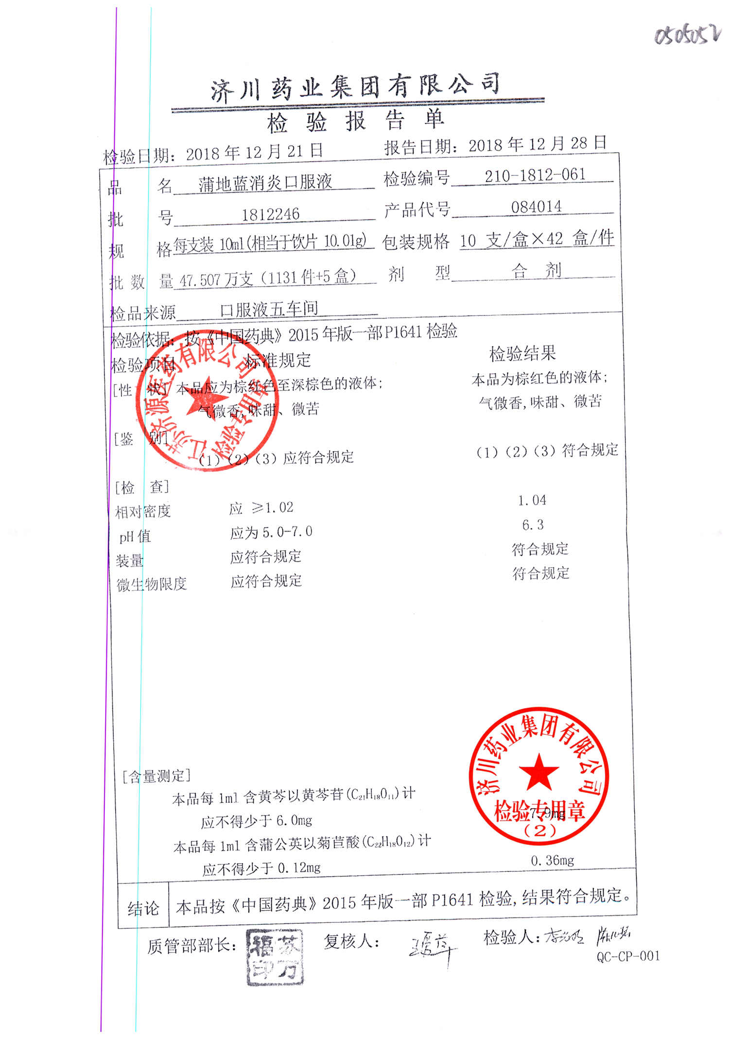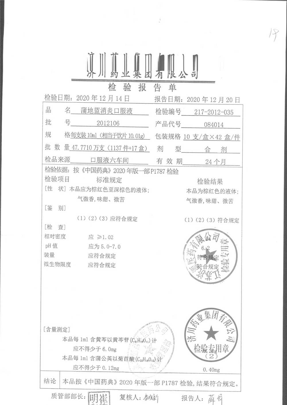 | 蒲地藍消炎口服液 | 10ml*10支 | 2010224 | 查看詳情 |