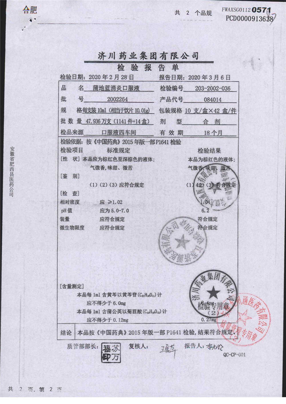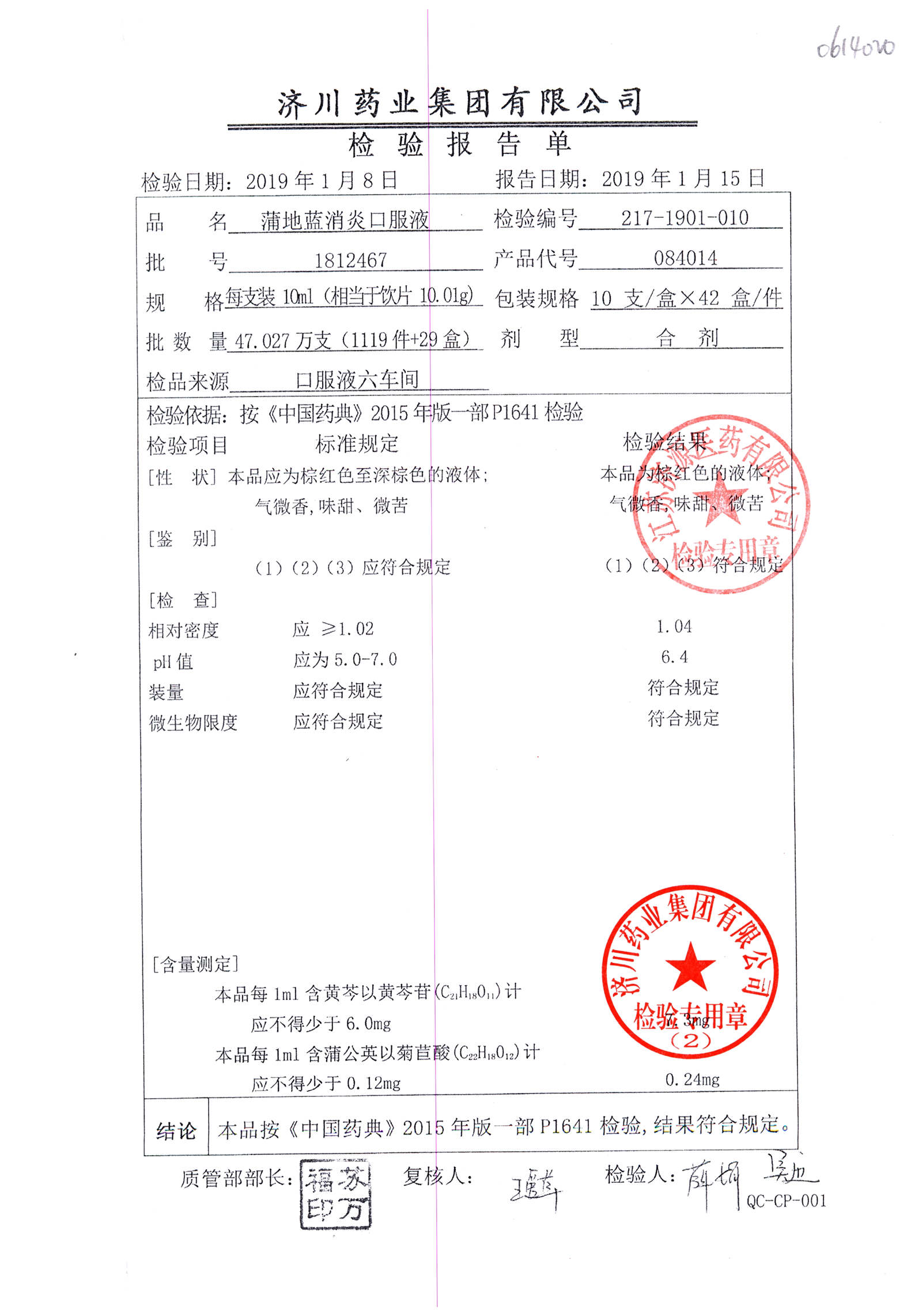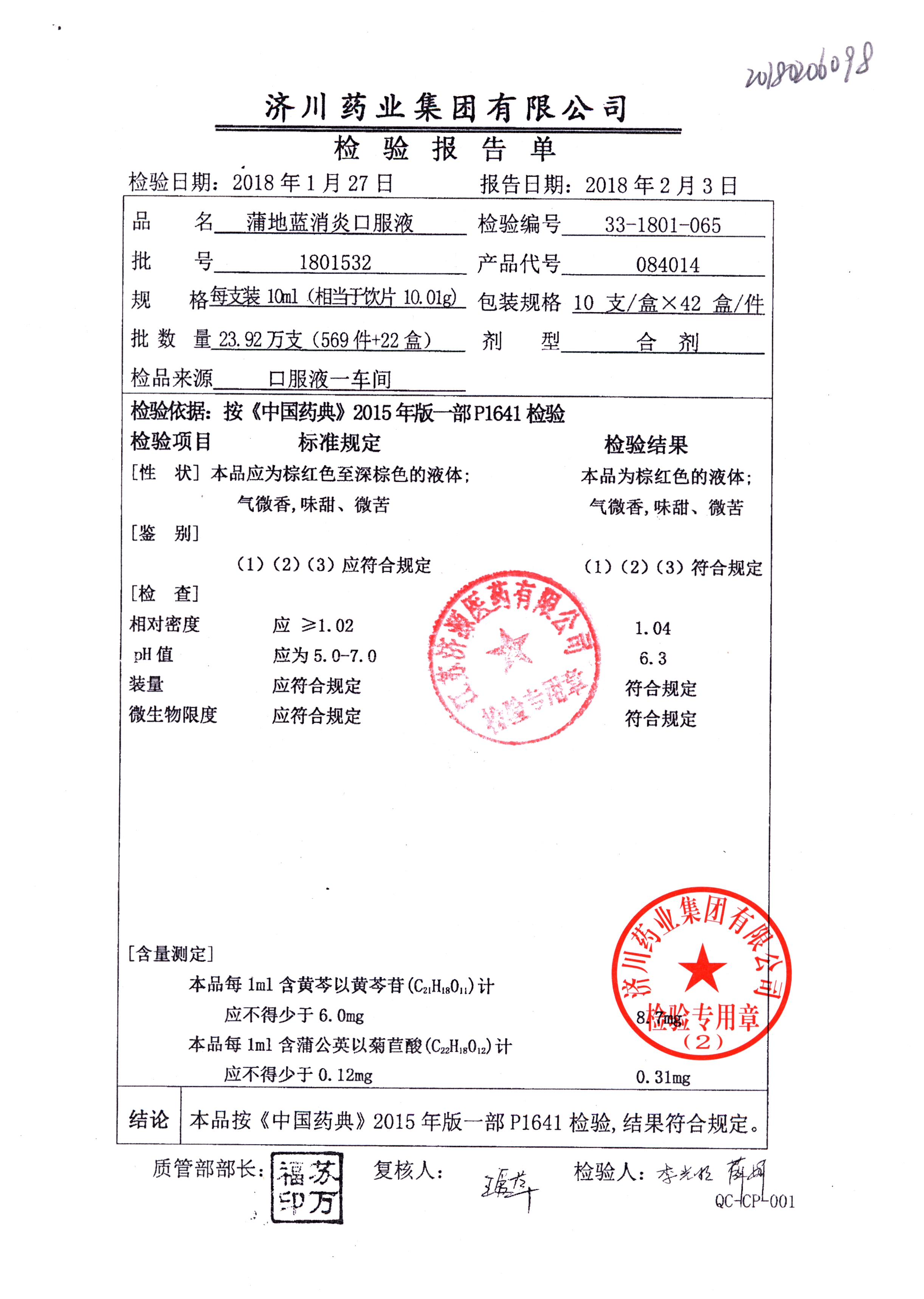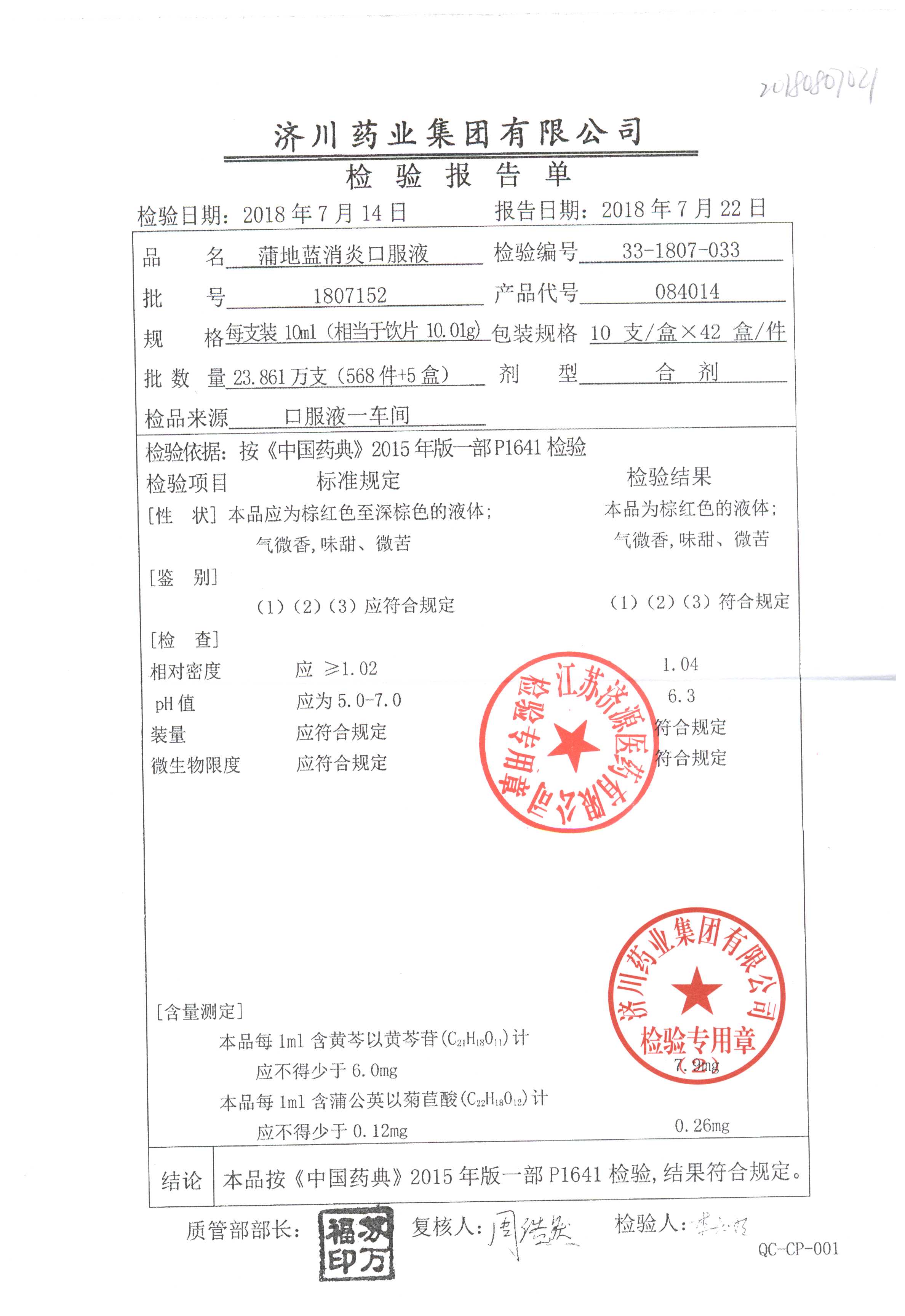 | 蒲地藍消炎口服液 | 10ml*10支 | 2010224 | 查看詳情 |