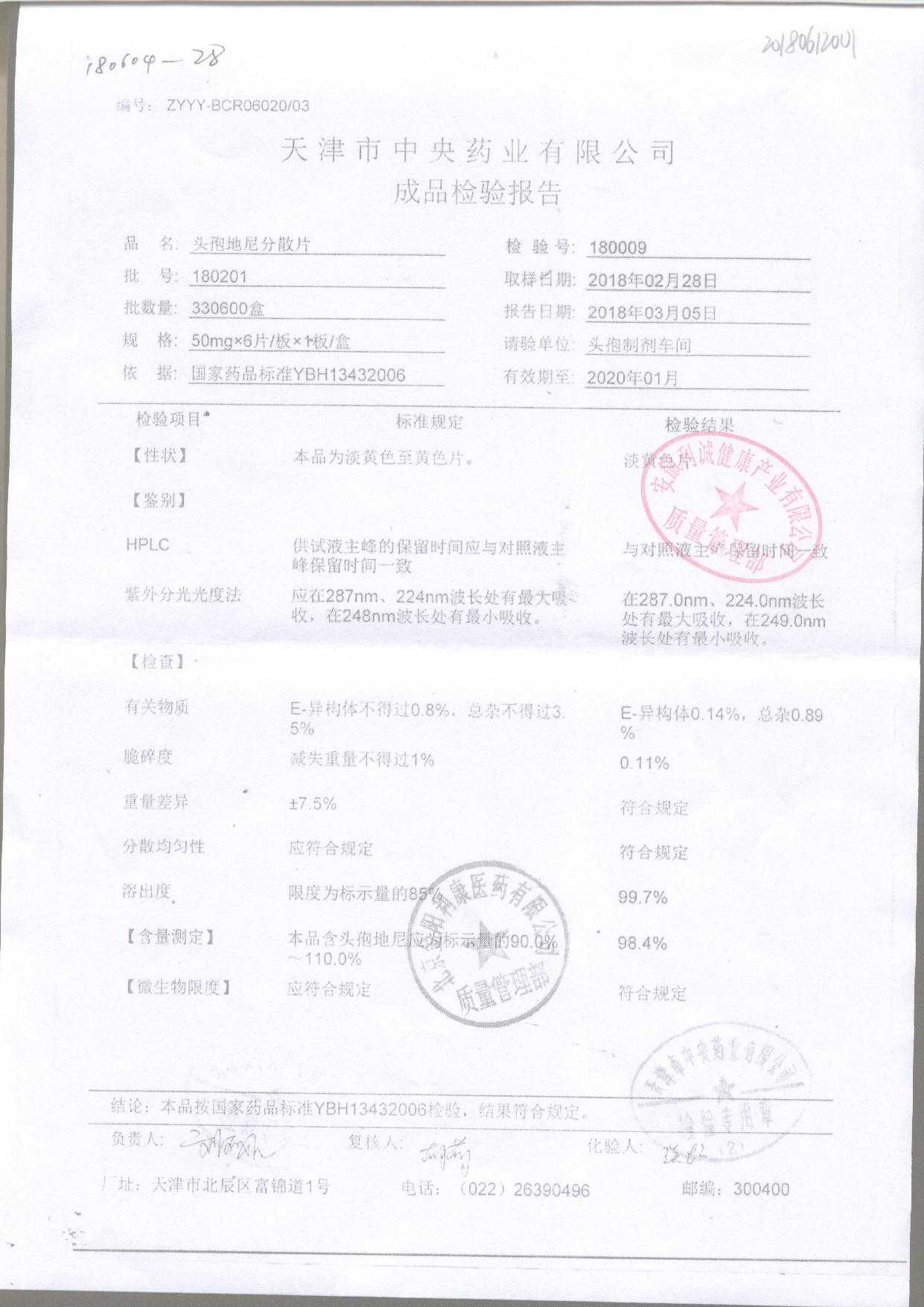 | 頭孢地尼分散片 | 50mg*6s | 180201 | 查看詳情 |