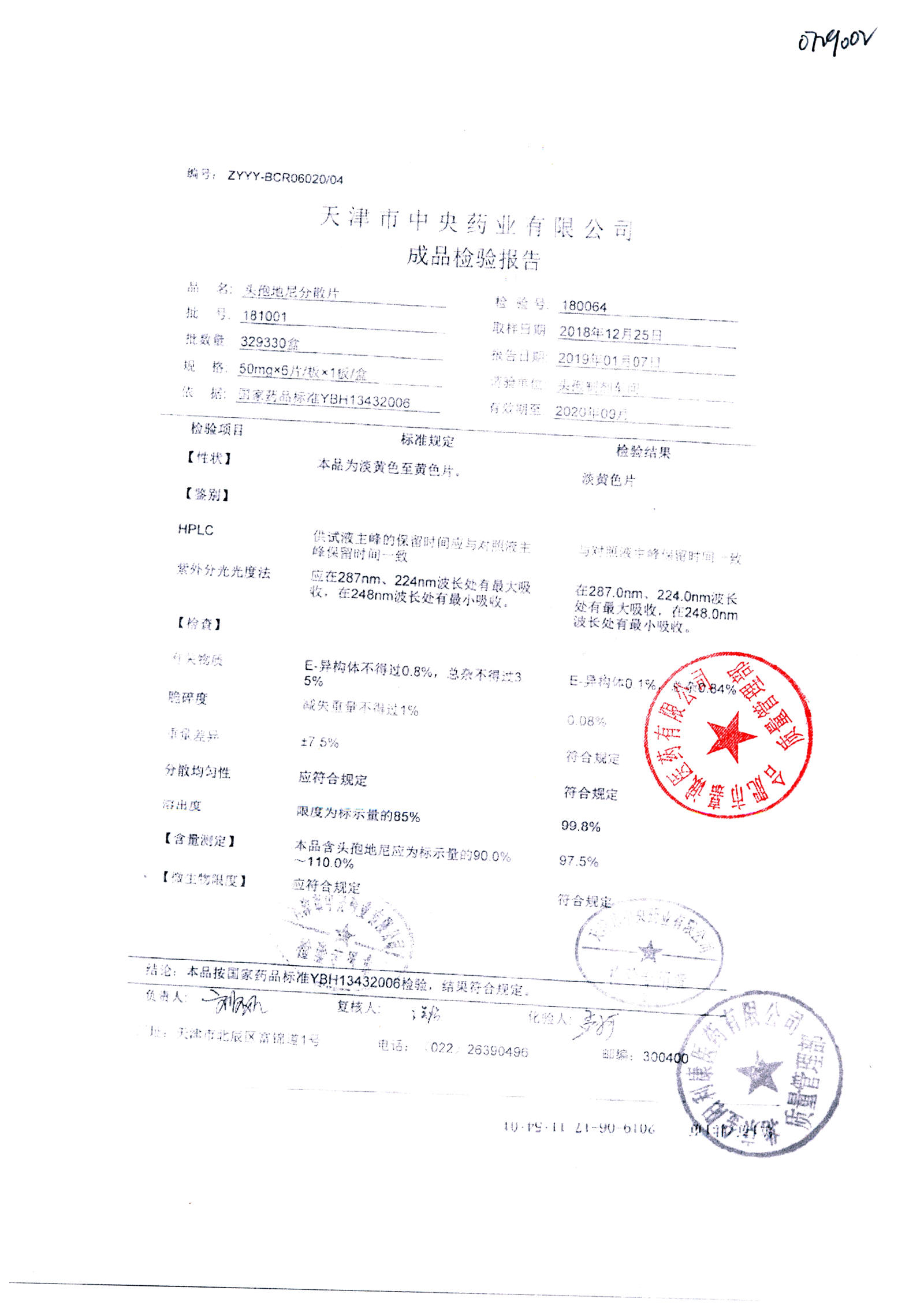 | 頭孢地尼分散片 | 50mg*6s | 221201 | 查看詳情 |