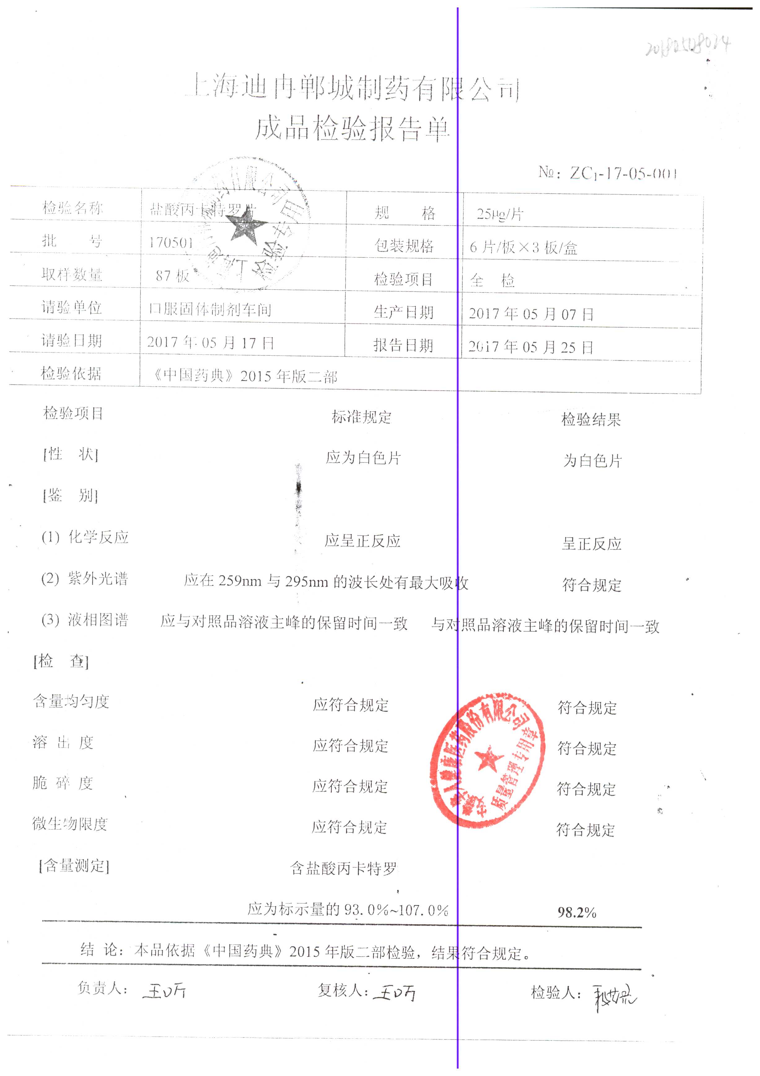 | 鹽酸丙卡特羅片 | 25ug*18s | 170501 | 查看詳情 |