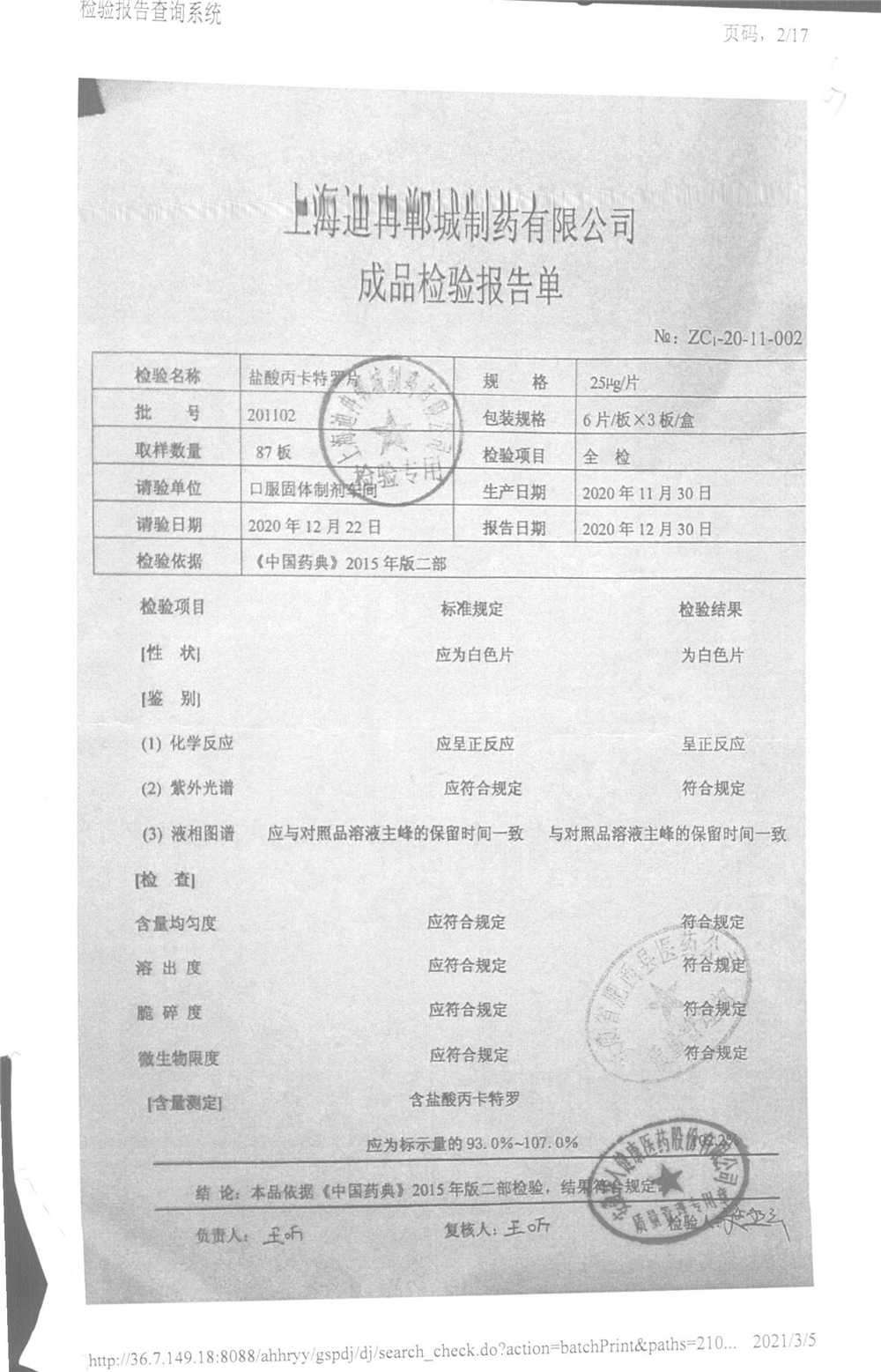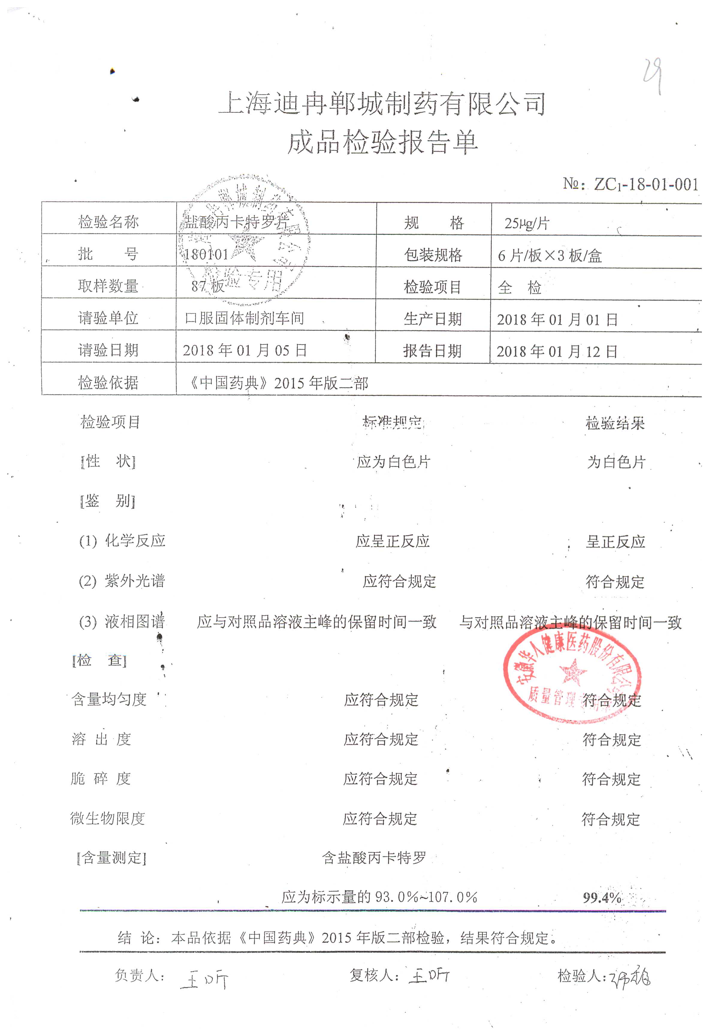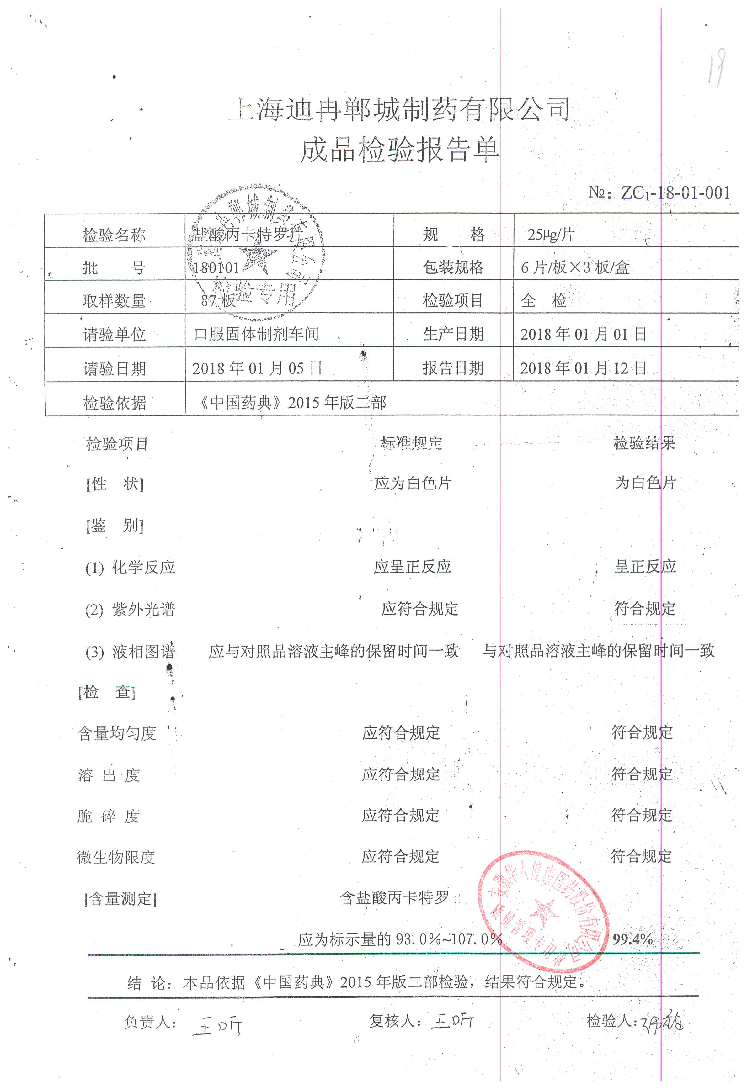 | 鹽酸丙卡特羅片 | 25ug*18s | 180101 | 查看詳情 |
