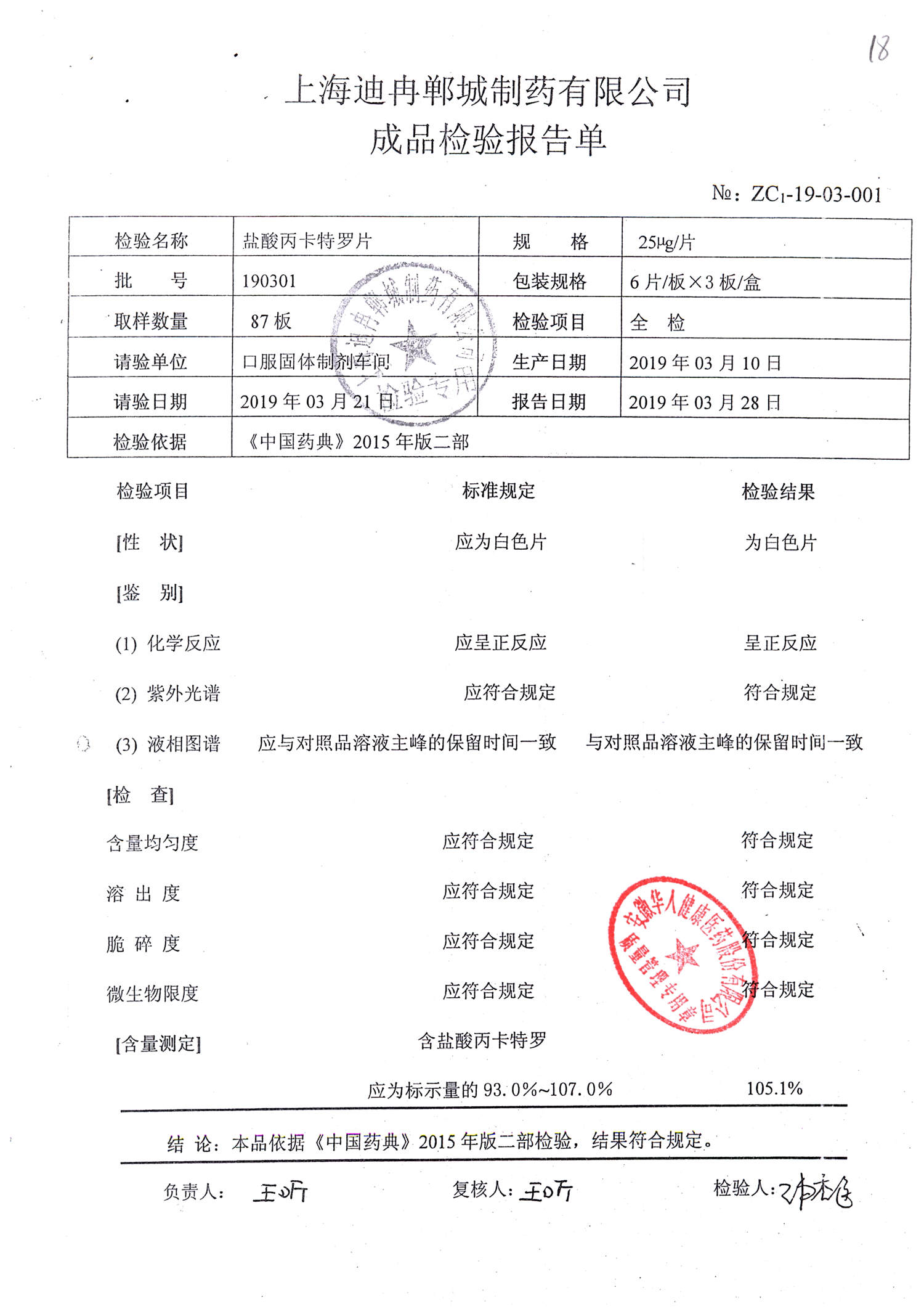 | 鹽酸丙卡特羅片 | 25ug*18s | 190301 | 查看詳情 |